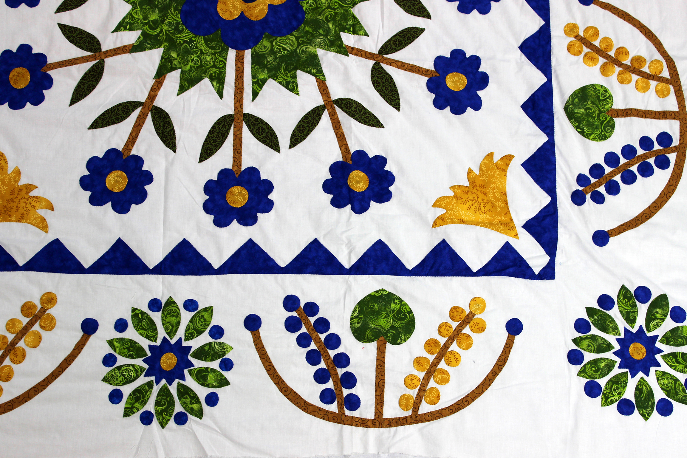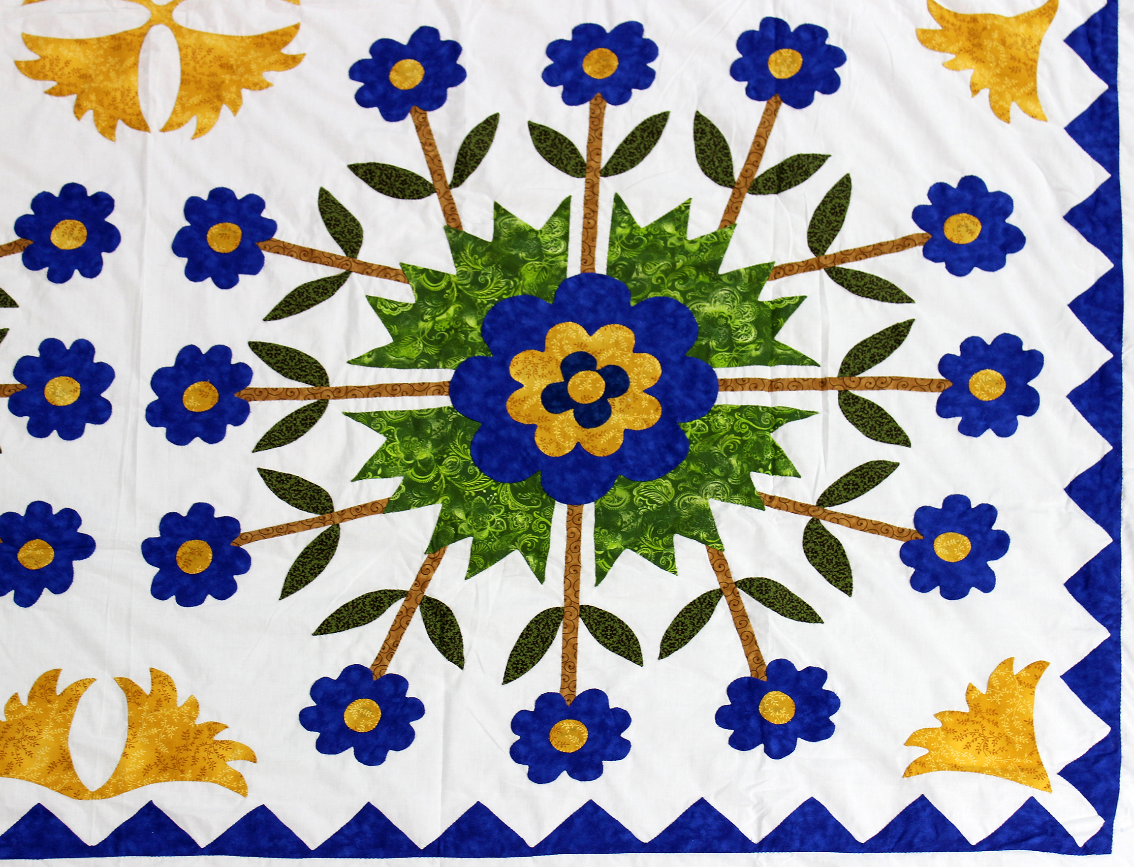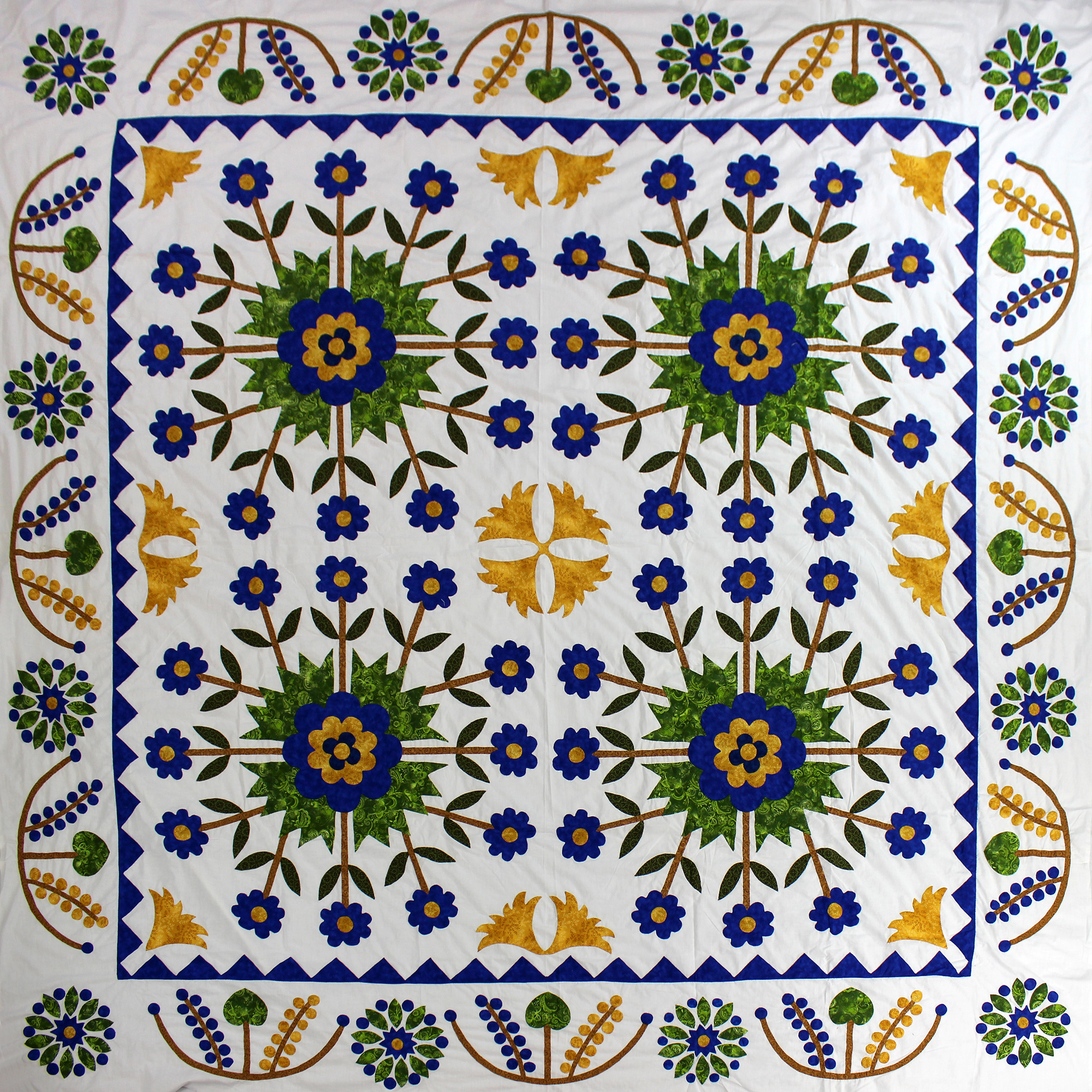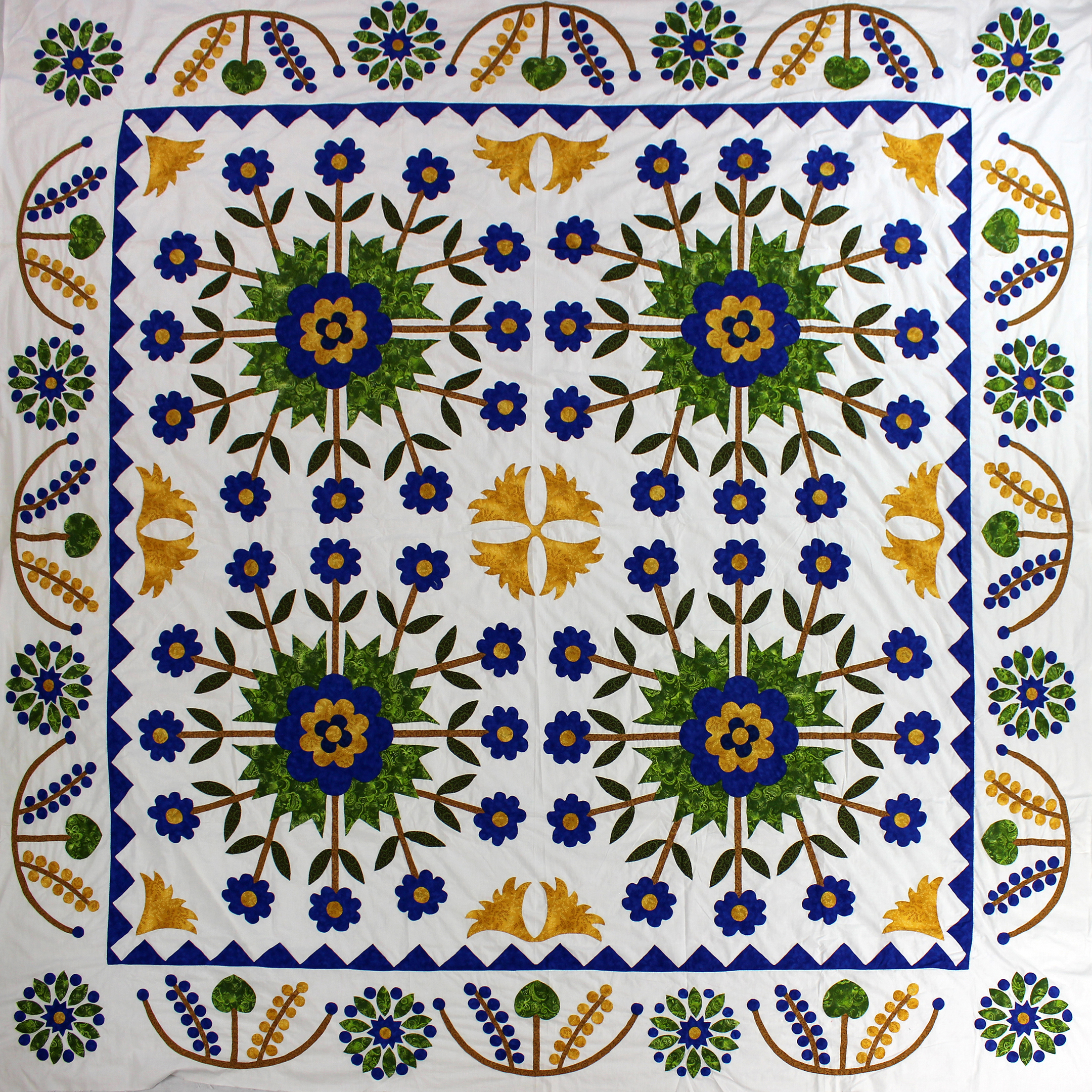 4 Tulip Medallion Hand Applique QUILT TOP incredible borders with small details