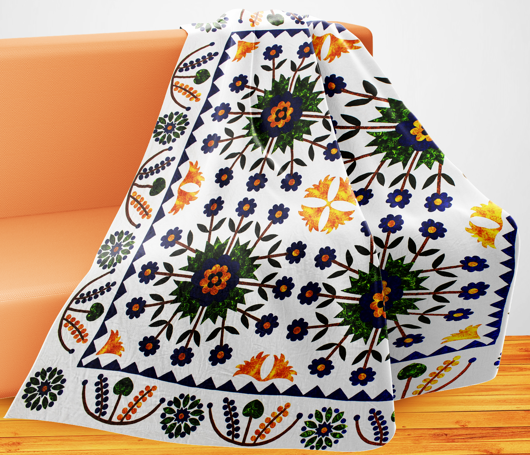 This is the top decorative layer only of a 3 layer finished quilt. This is an unfinished quilt.