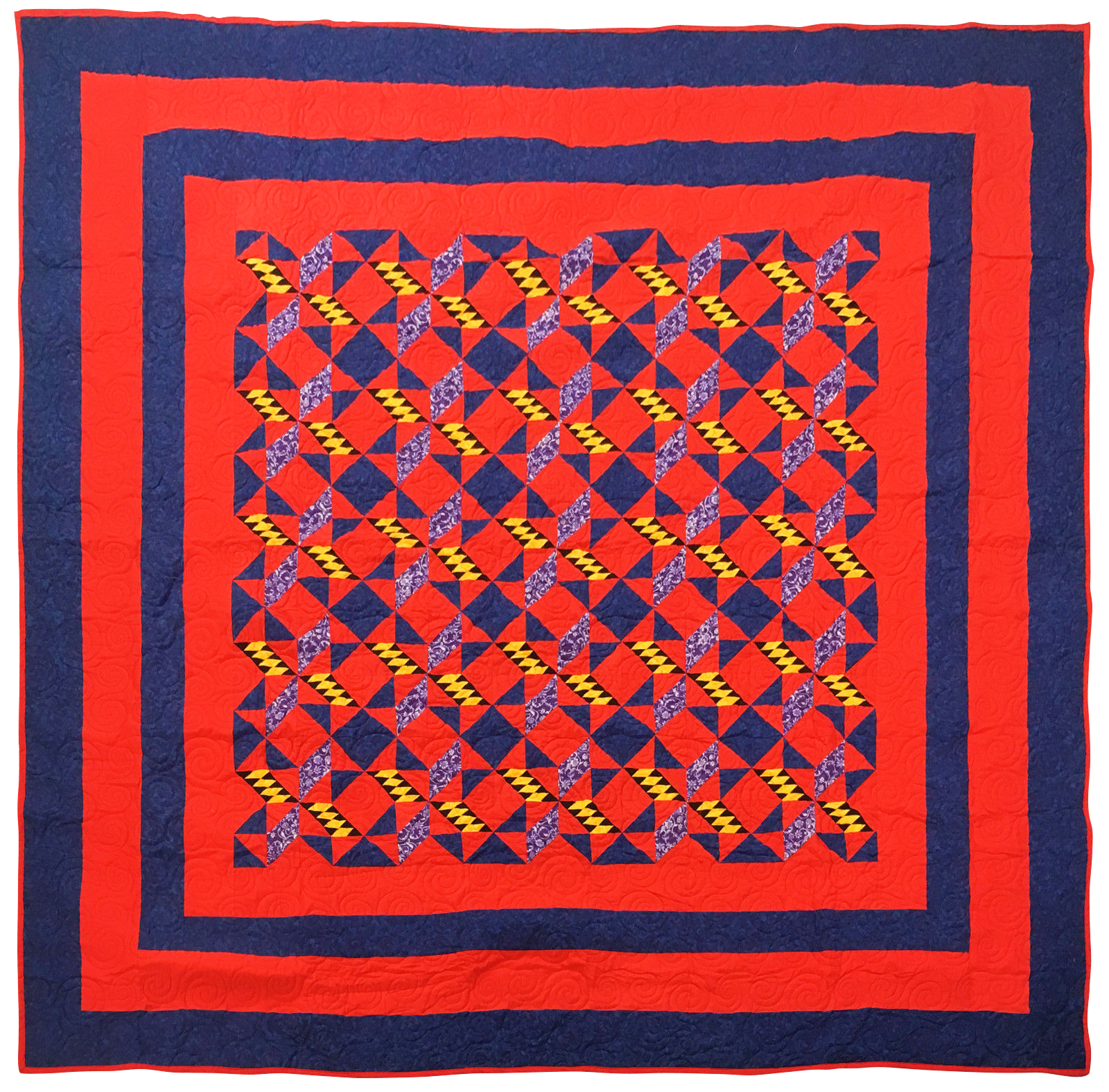 This quilt is large at 94″ x 94″ and is a finished quilt ready to be enjoyed by your family. It is made with 100% cotton fabrics, and is quilted with gold thread. It is exceptional in most every detail. It will be cherished for generations to come.