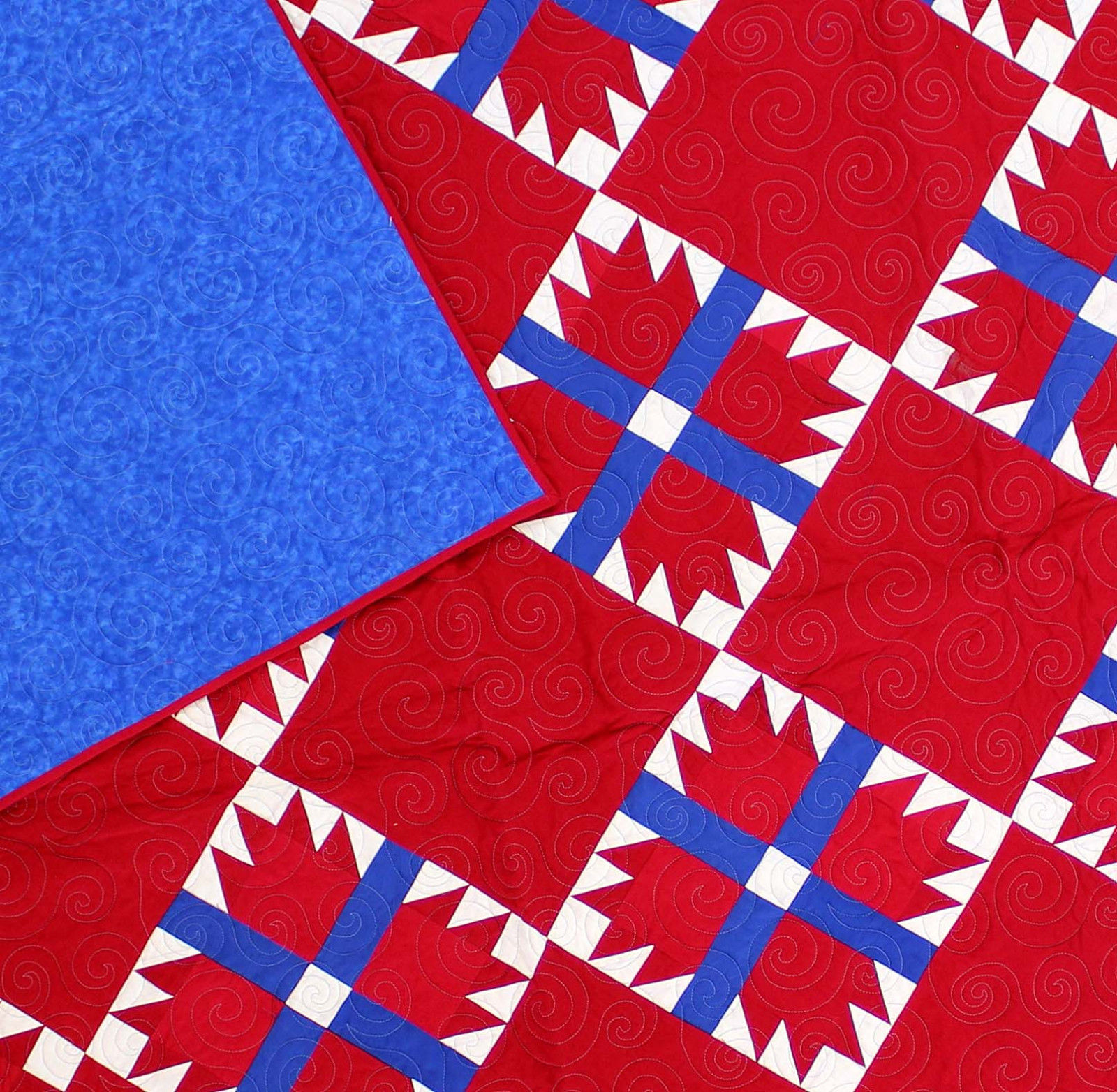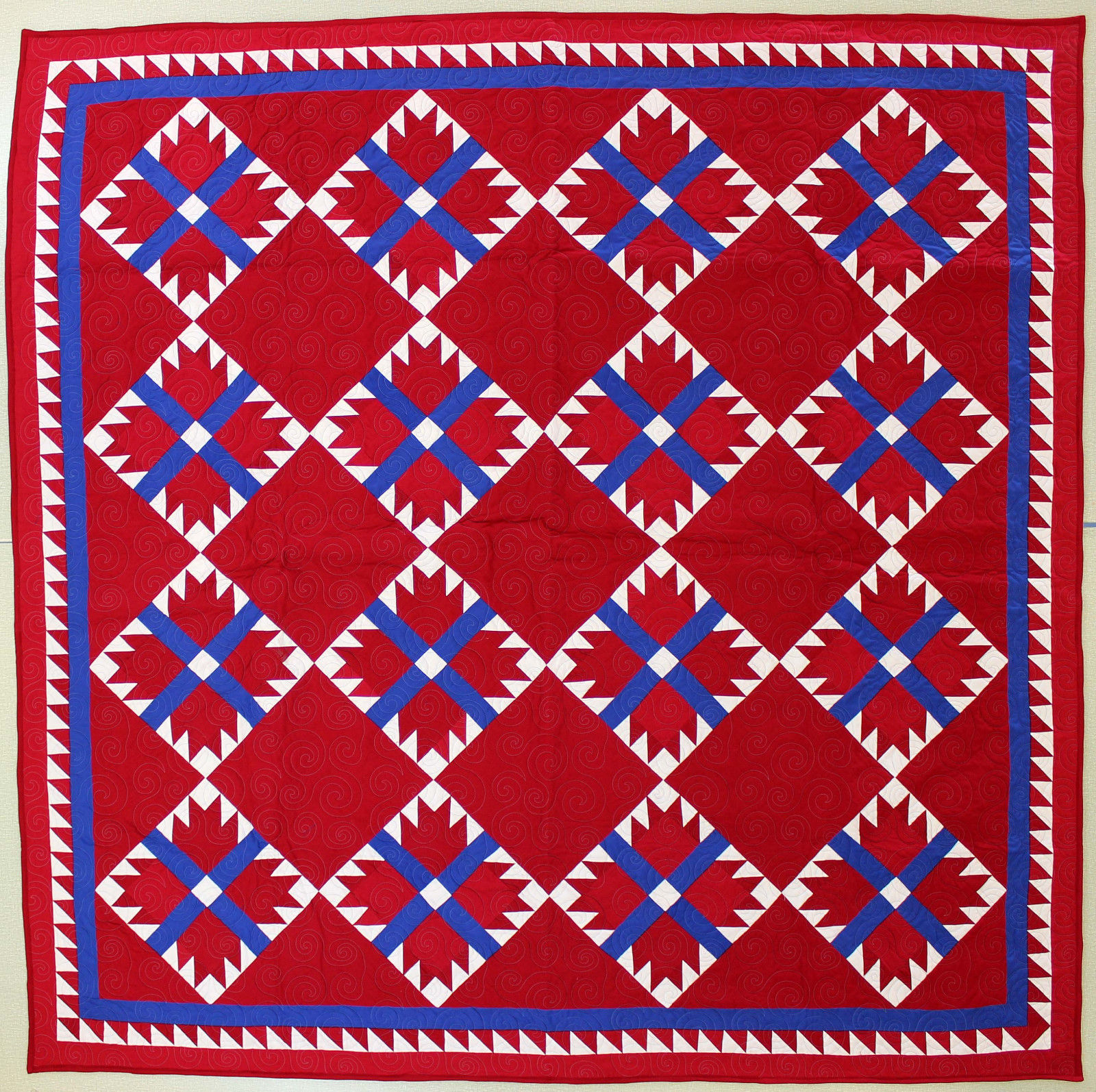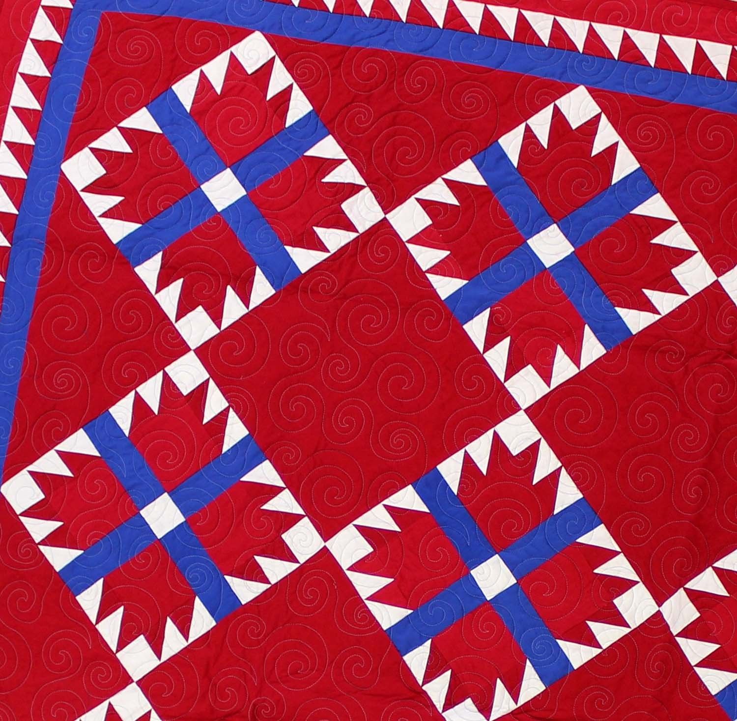 Patriotic Bear Paw quilt with beautiful Swirl quilting motifs