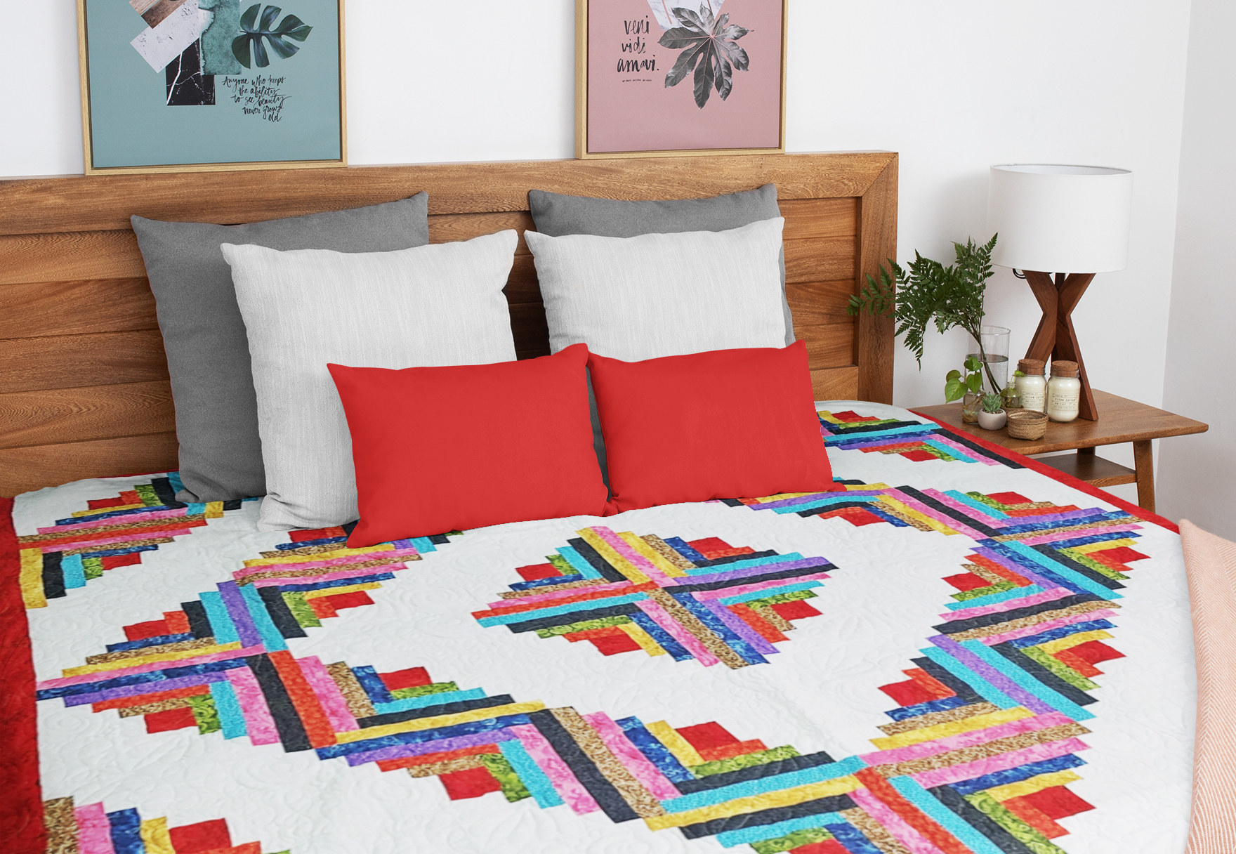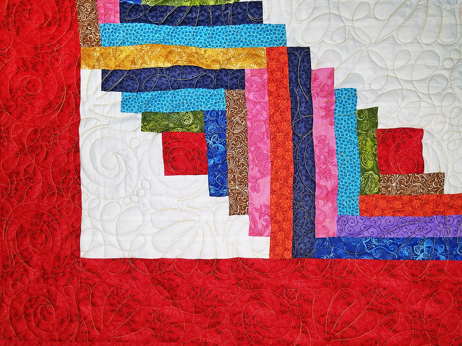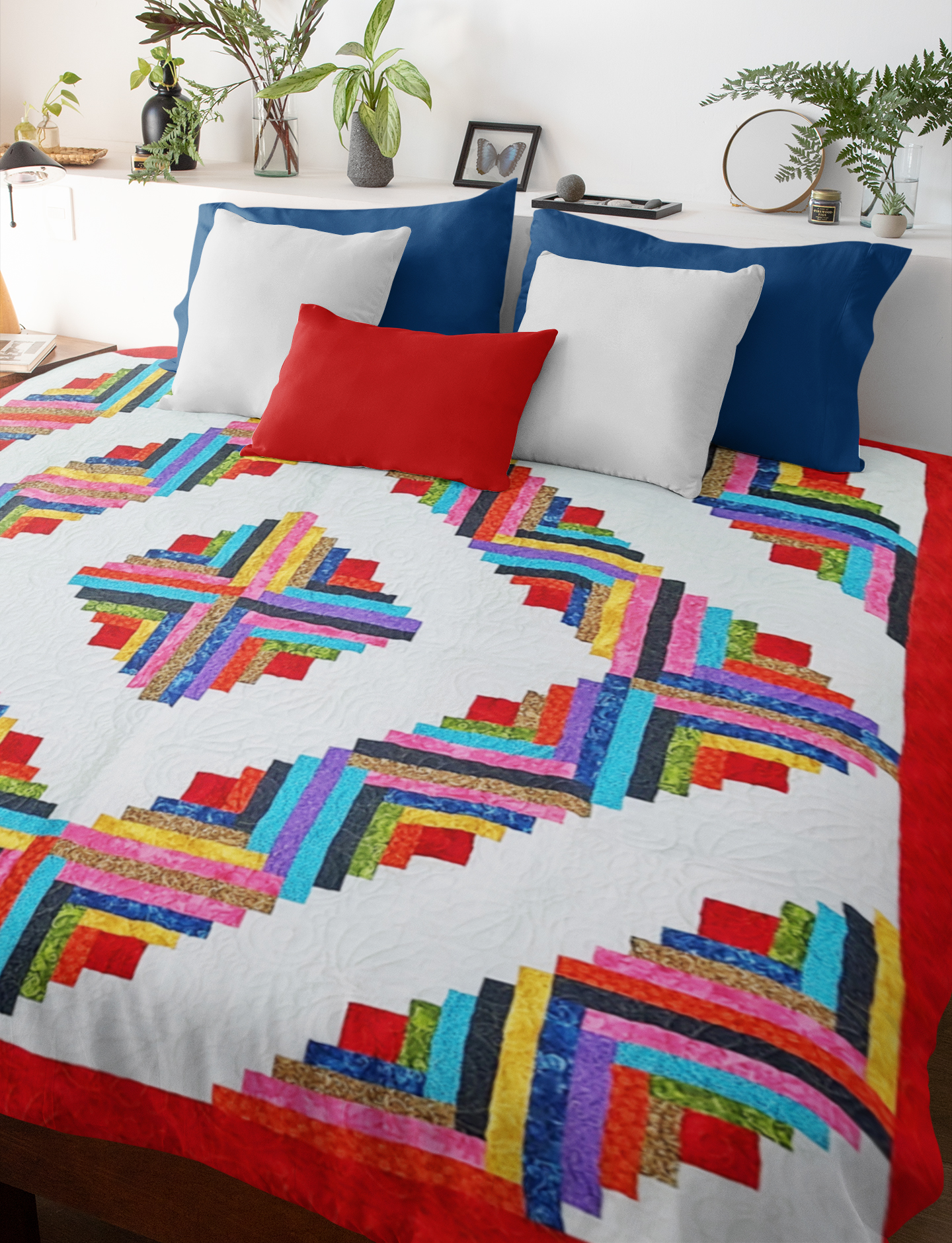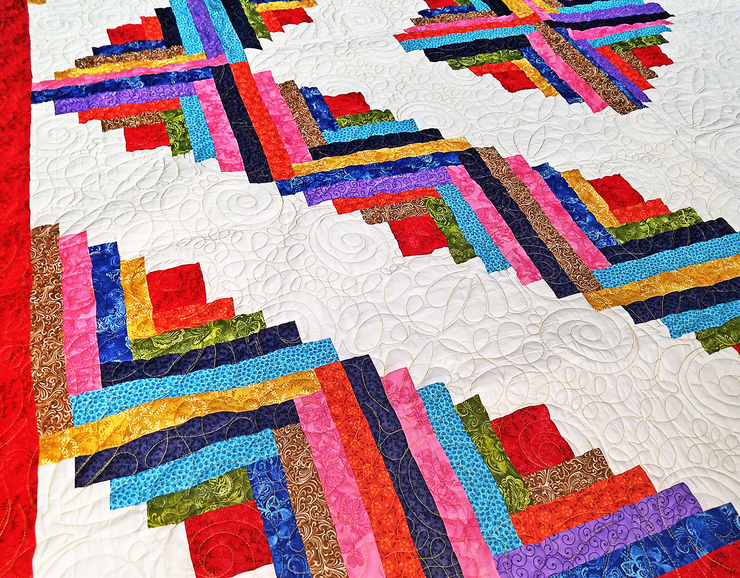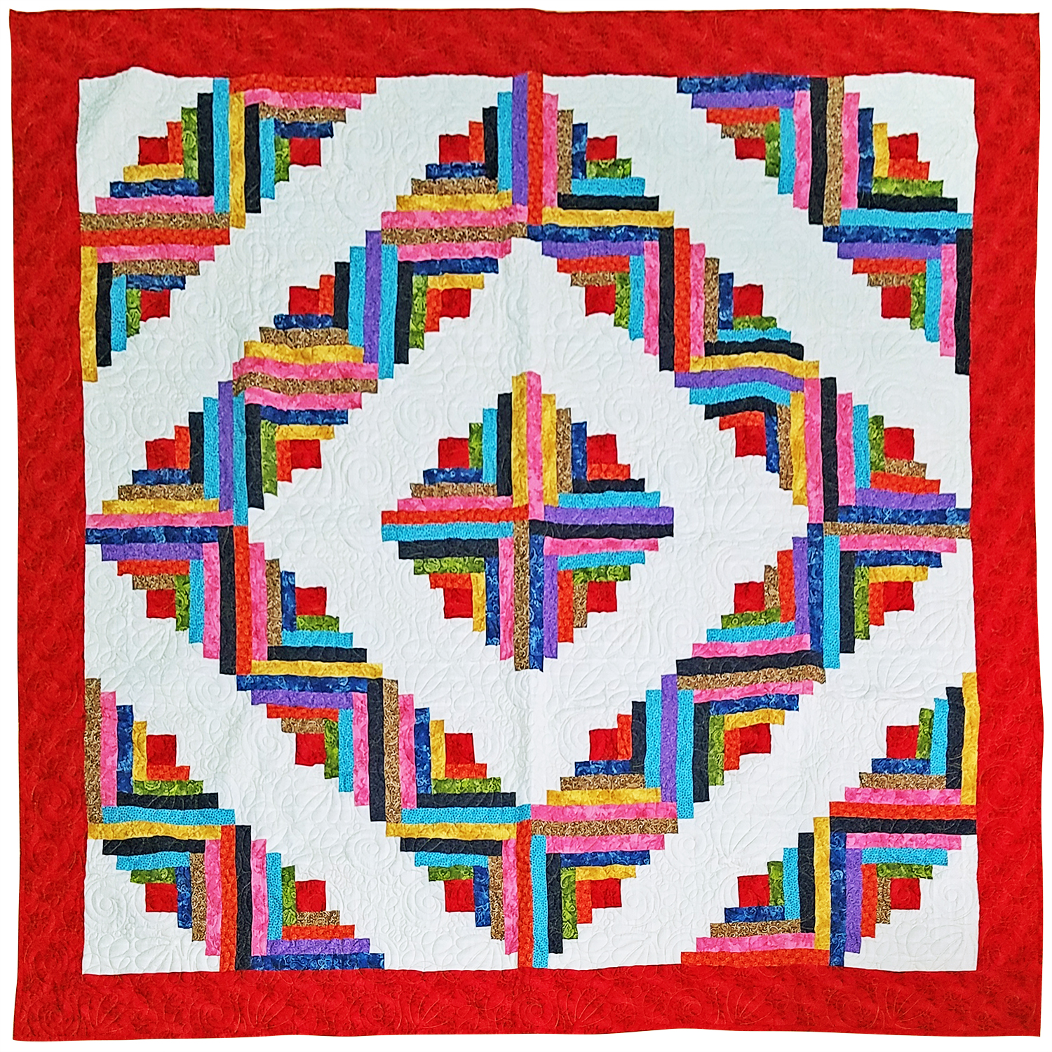 Barn Raising Log Cabin – queen size FINISHED QUILT – Multi Color