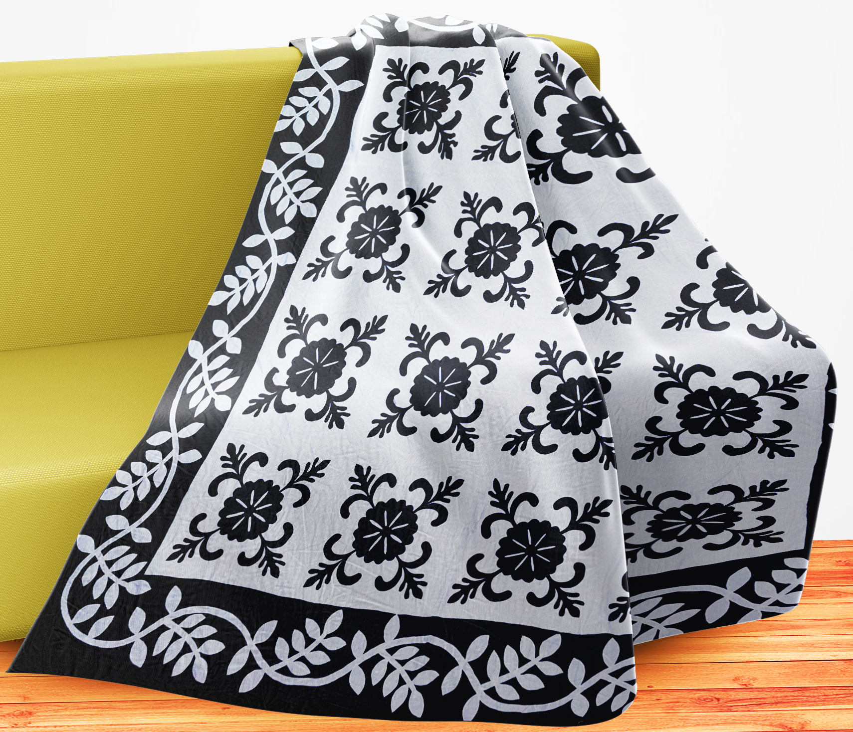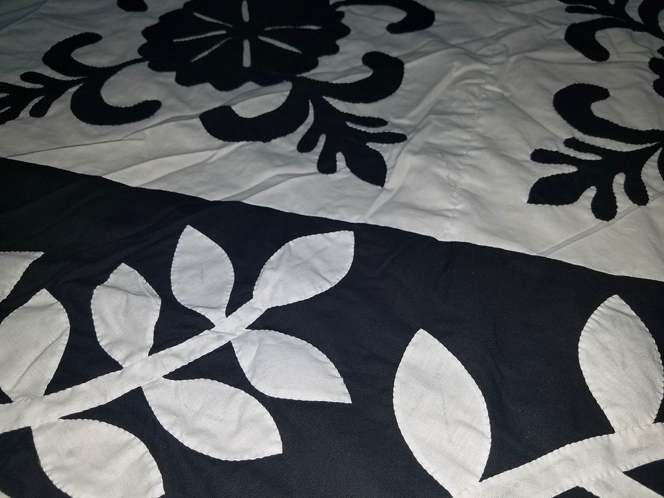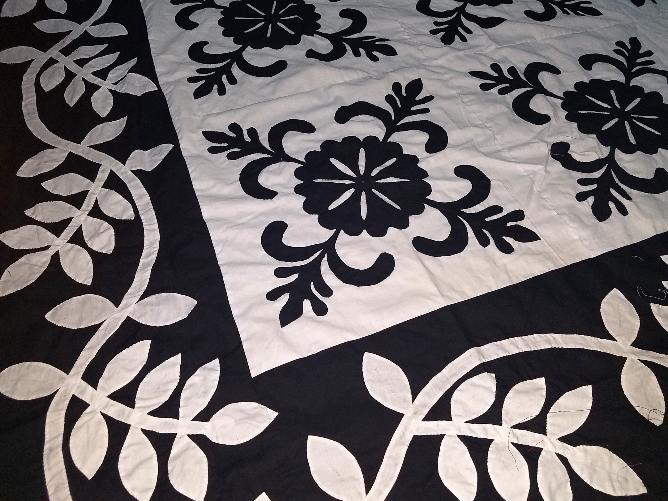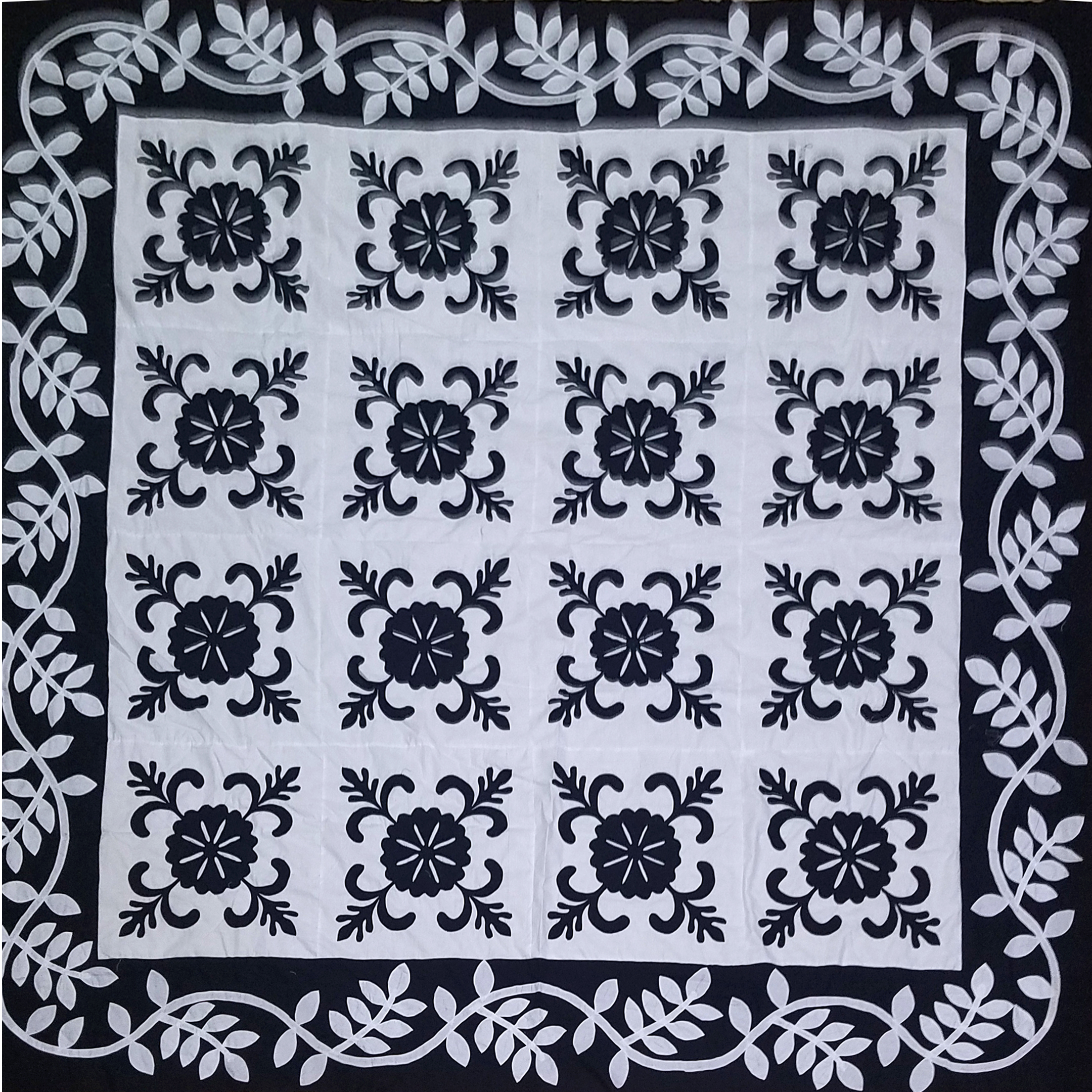 Black & White Hand Applique Sand Dollar QUILT TOP Incredible border