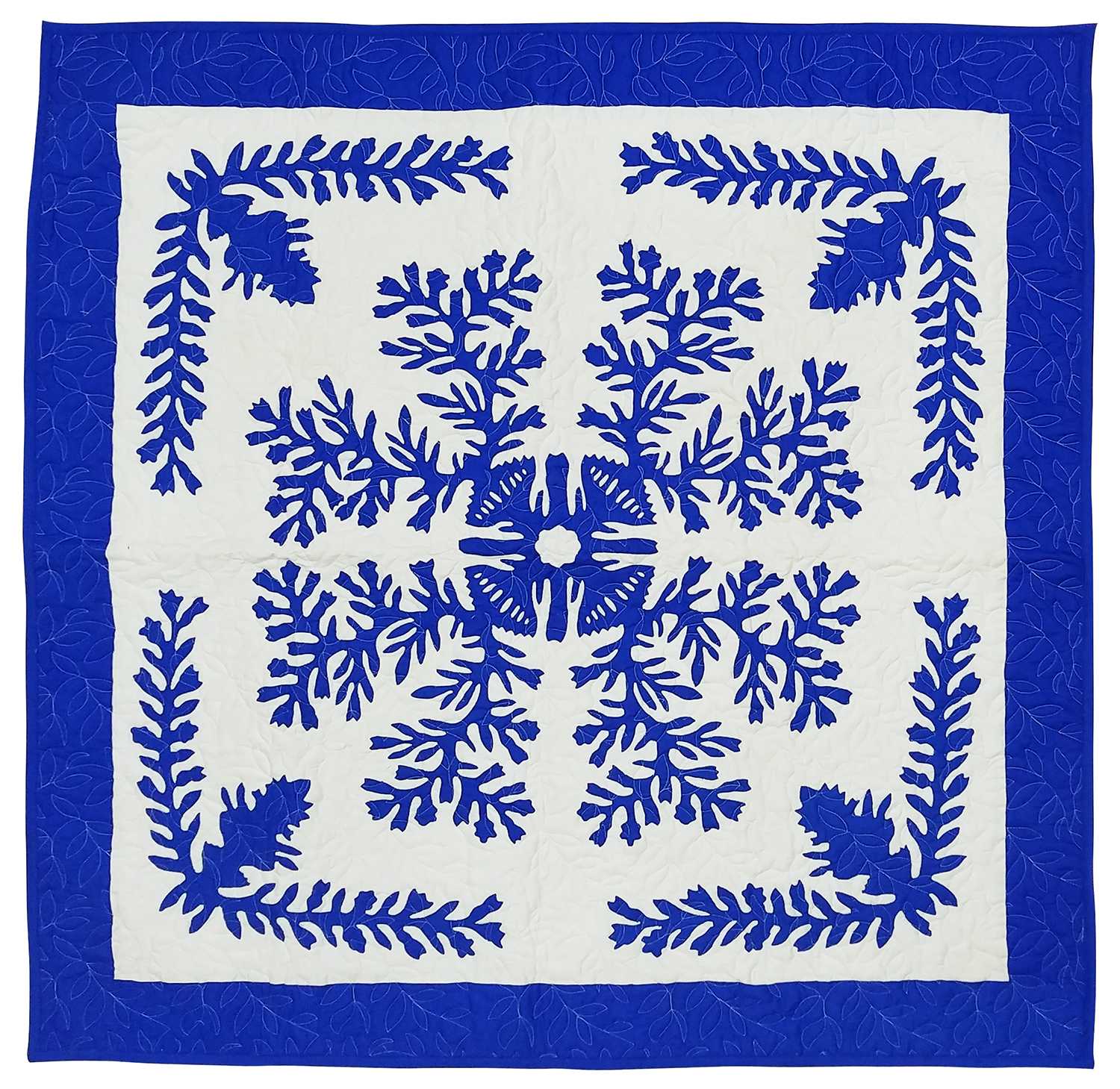Blue & White Hawaiian design finished wall quilt – Hand applique w/ rod pocket
