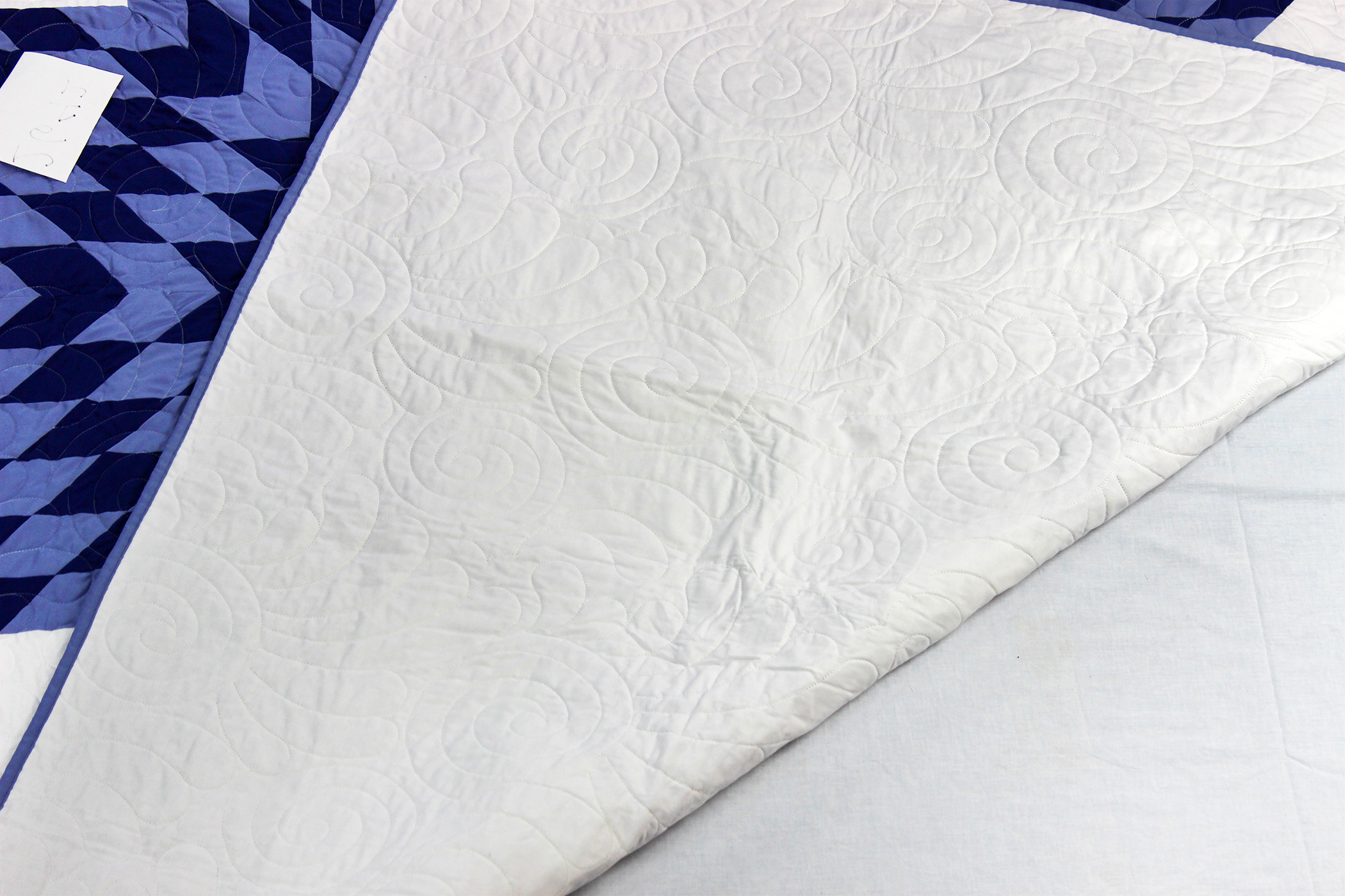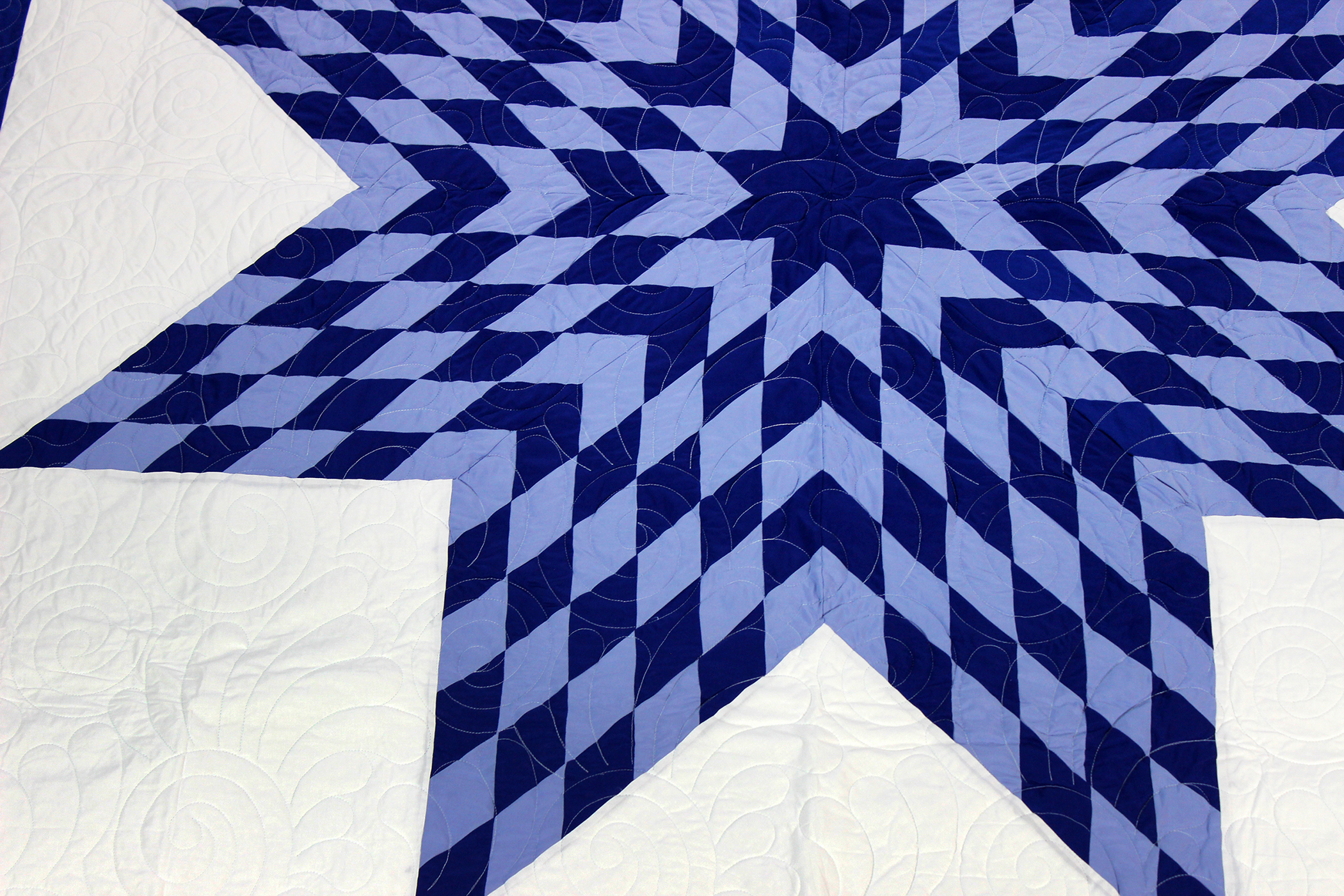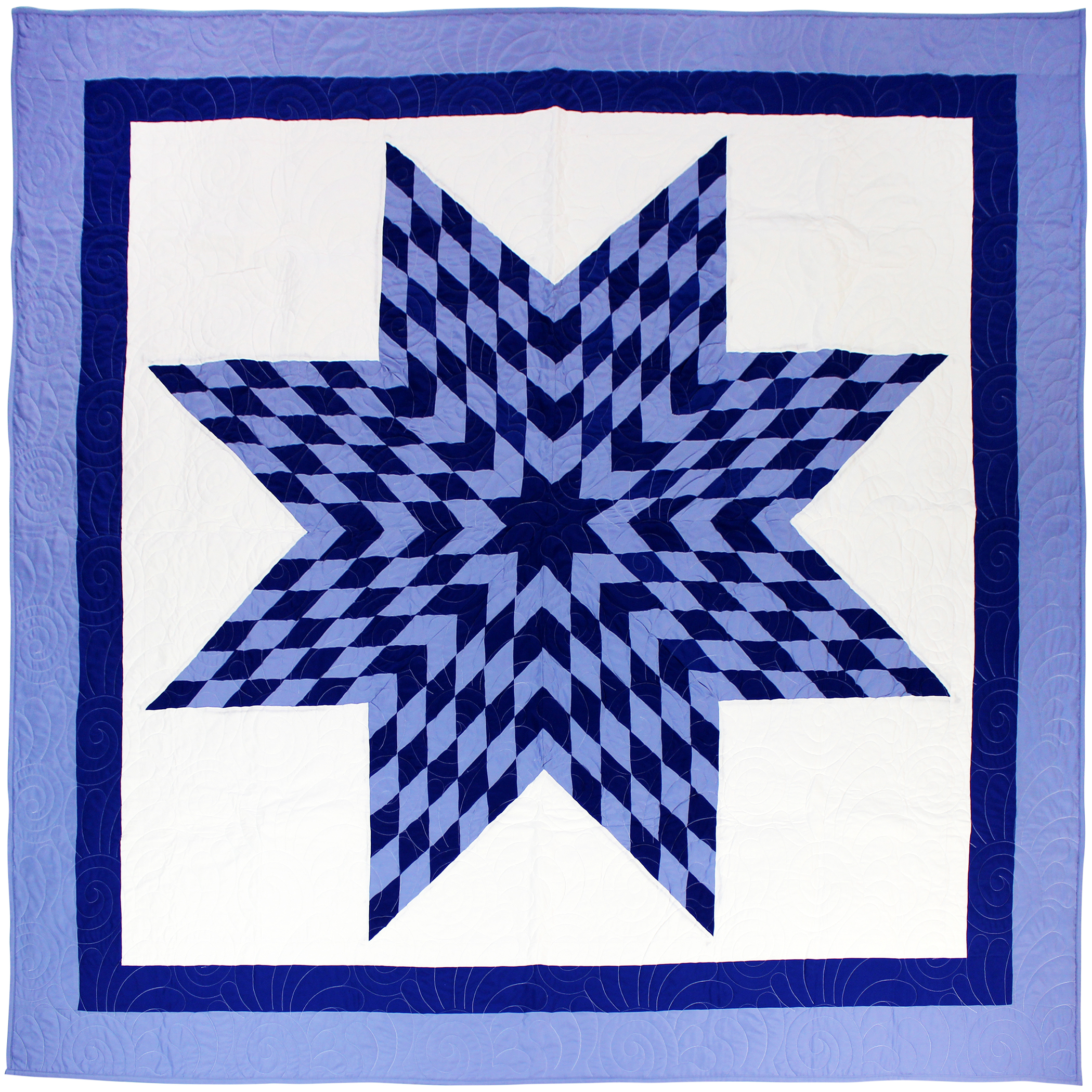 Blue & White Lone Star Patchwork FINISHED QUILT – Queen Size – Feather Quilting