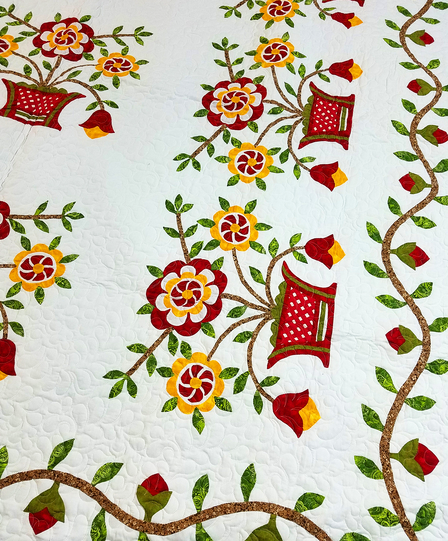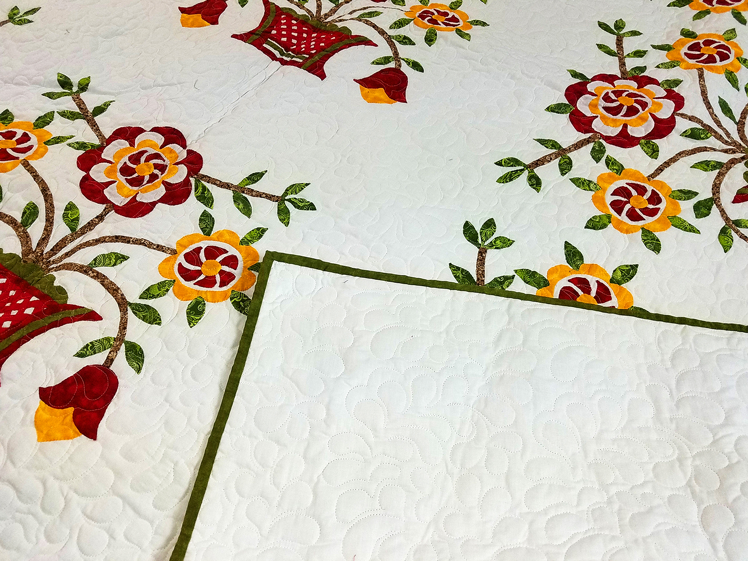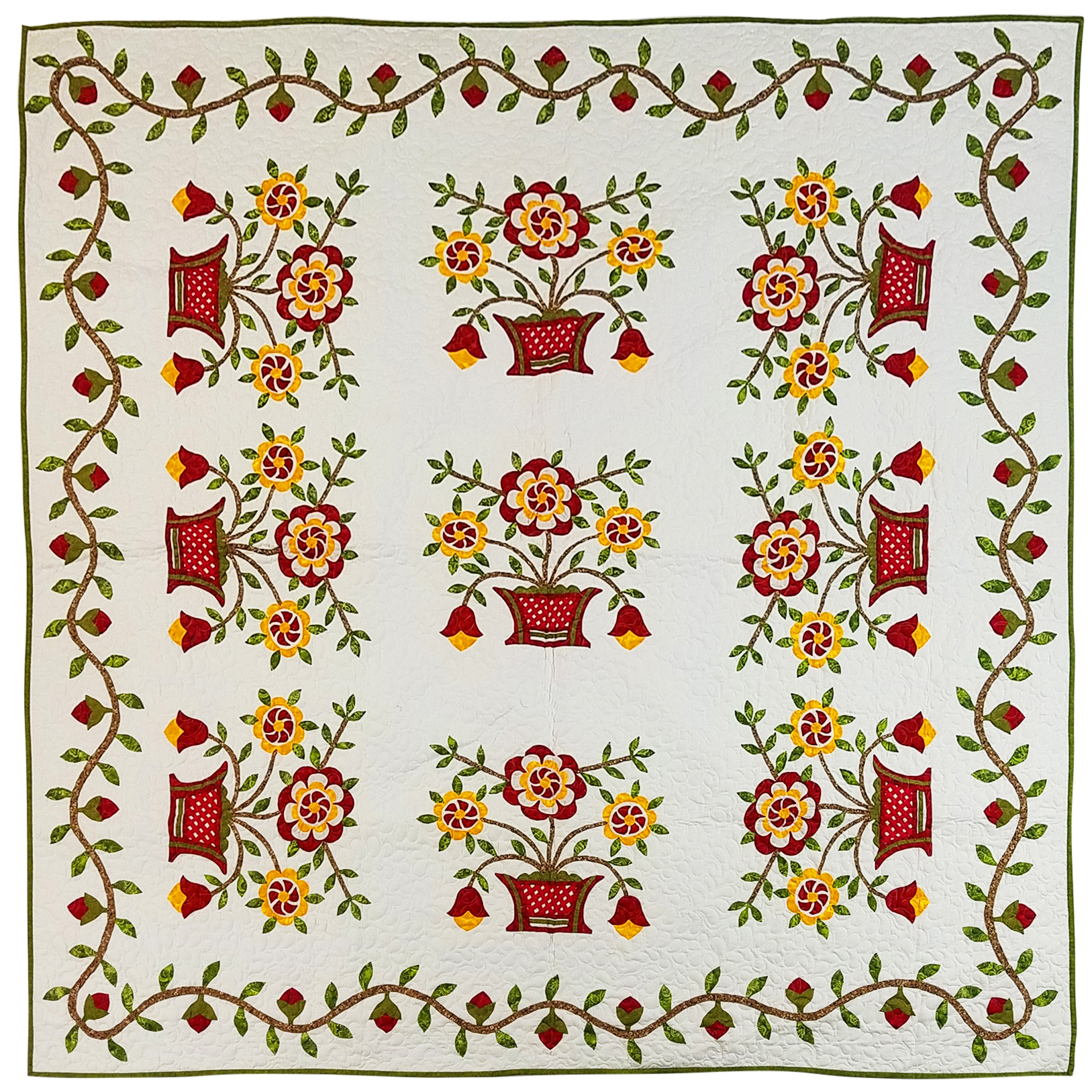 Bold needle turn Hand Applique Woven Basket Finished Quilt