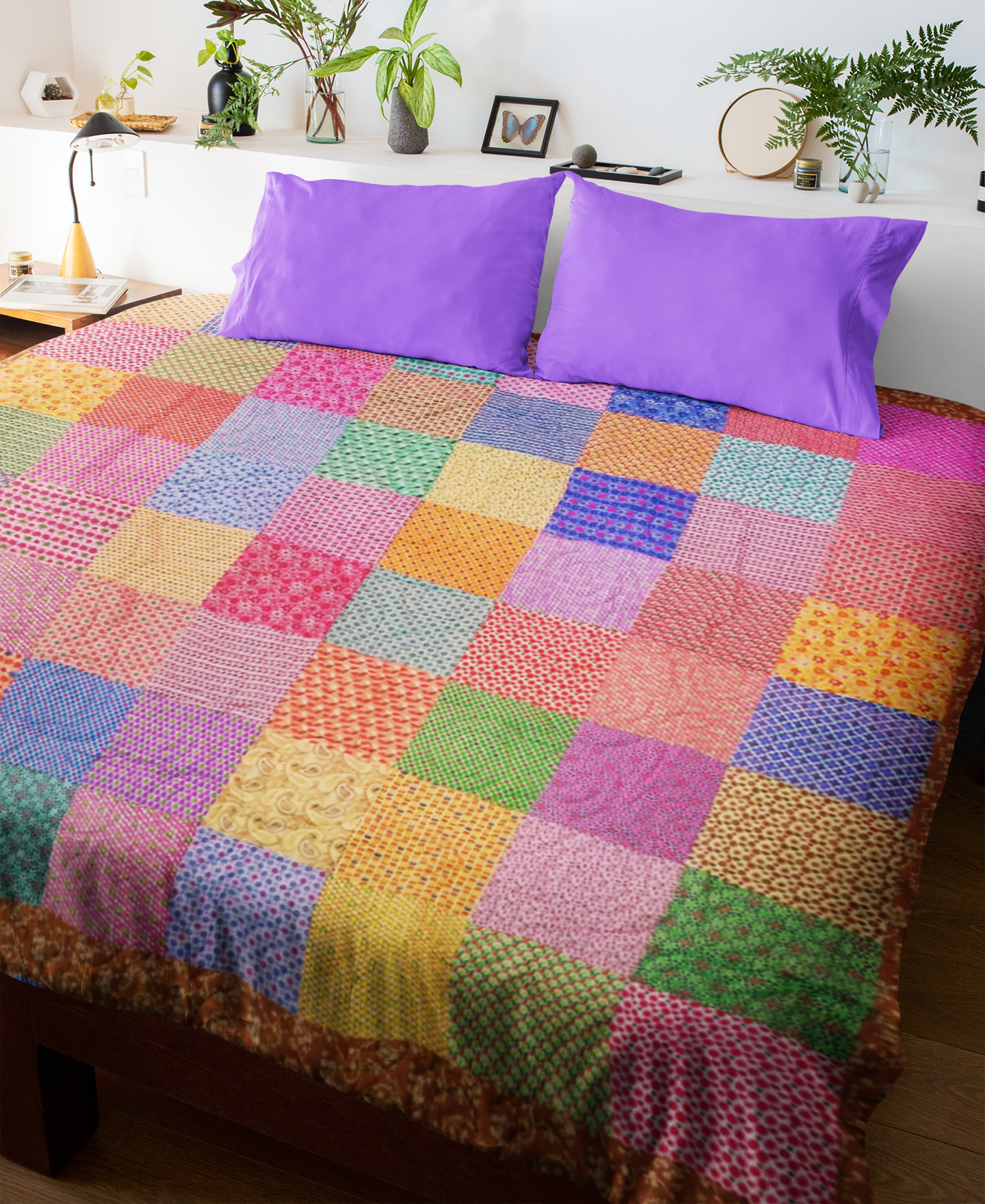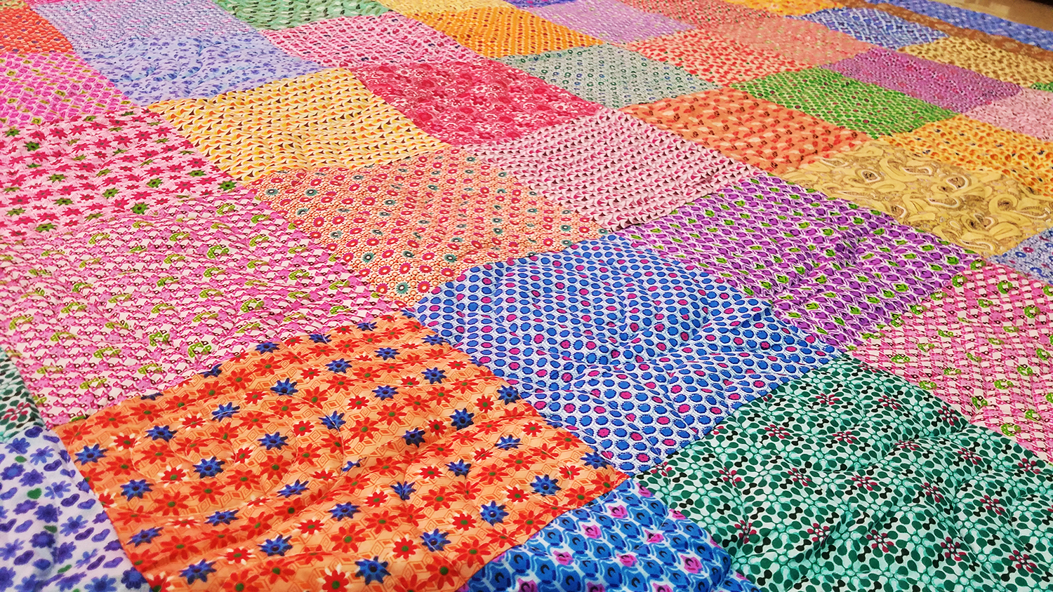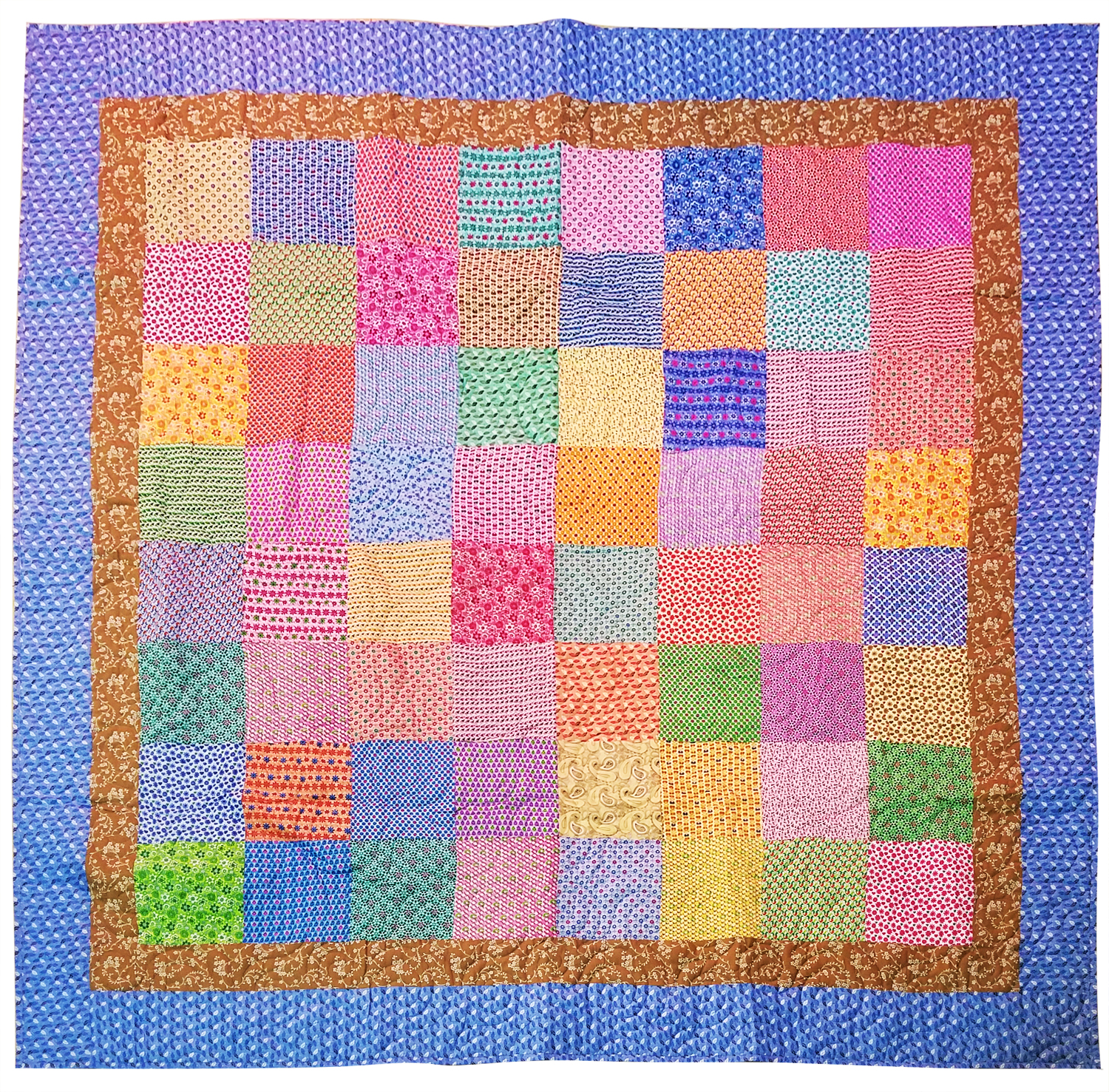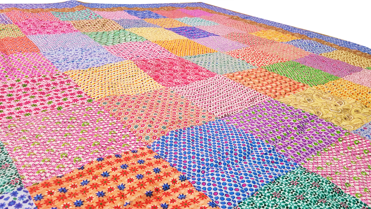 Country Patchwork Multi – Color FINISHED QUILT queen size scrap quilt