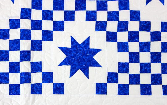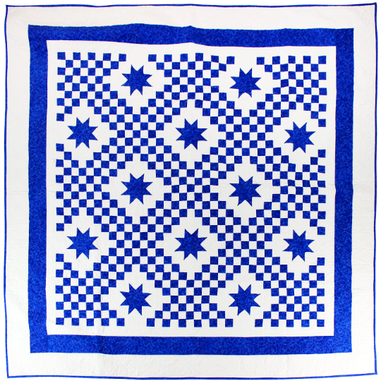 Double Irish Chain with Ohio Stars FINISHED QUILT – Blue & White Queen size