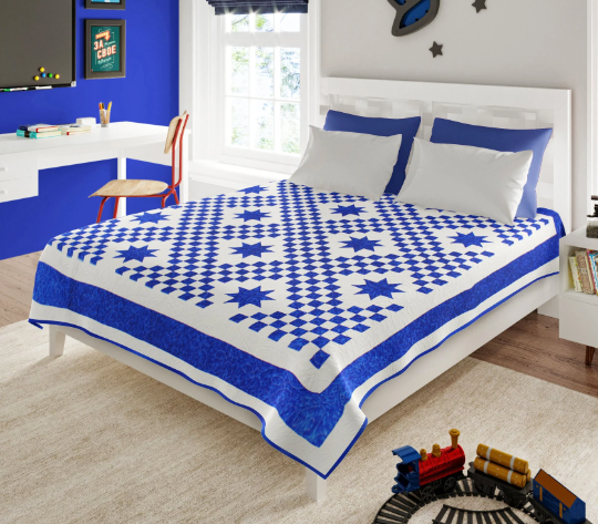 This is a beautiful and large 90″ x 90″ quilt. It is bold and graphic and is an updated version of this traditional and sought after quilt pattern. Made in 100% cotton fabrics, and is exceptional in every detail. It will be cherished for generations to come.