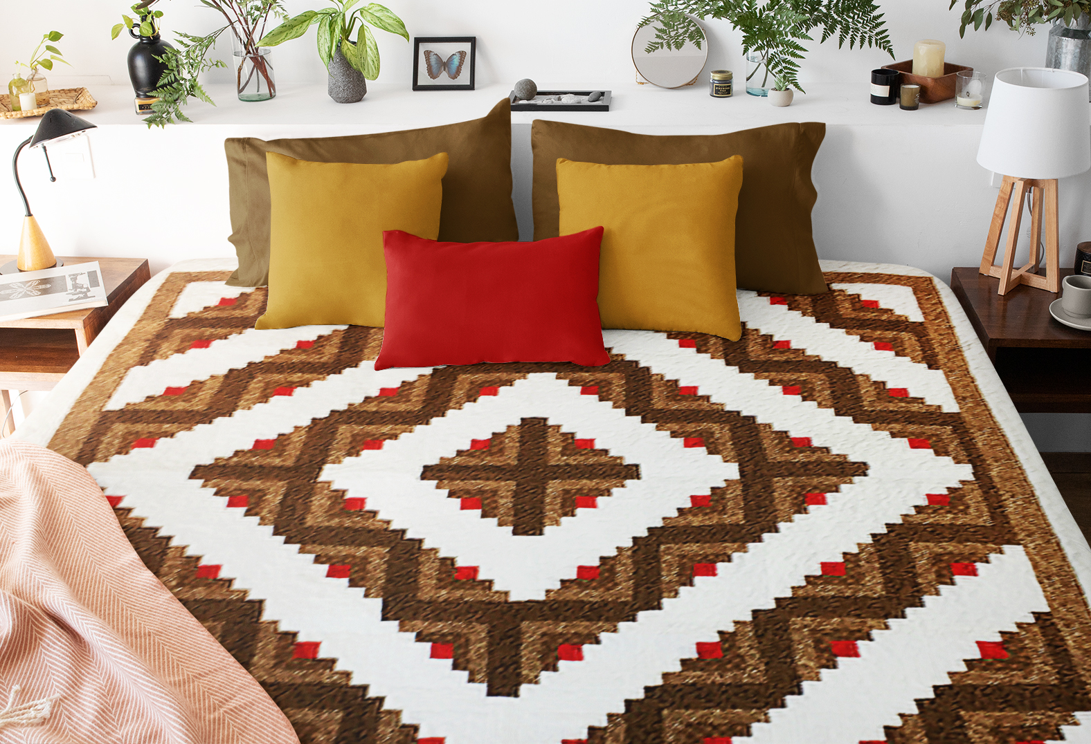 Earth Tone Log Cabin Barn Raising FINISHED Quilt – Masculine Look