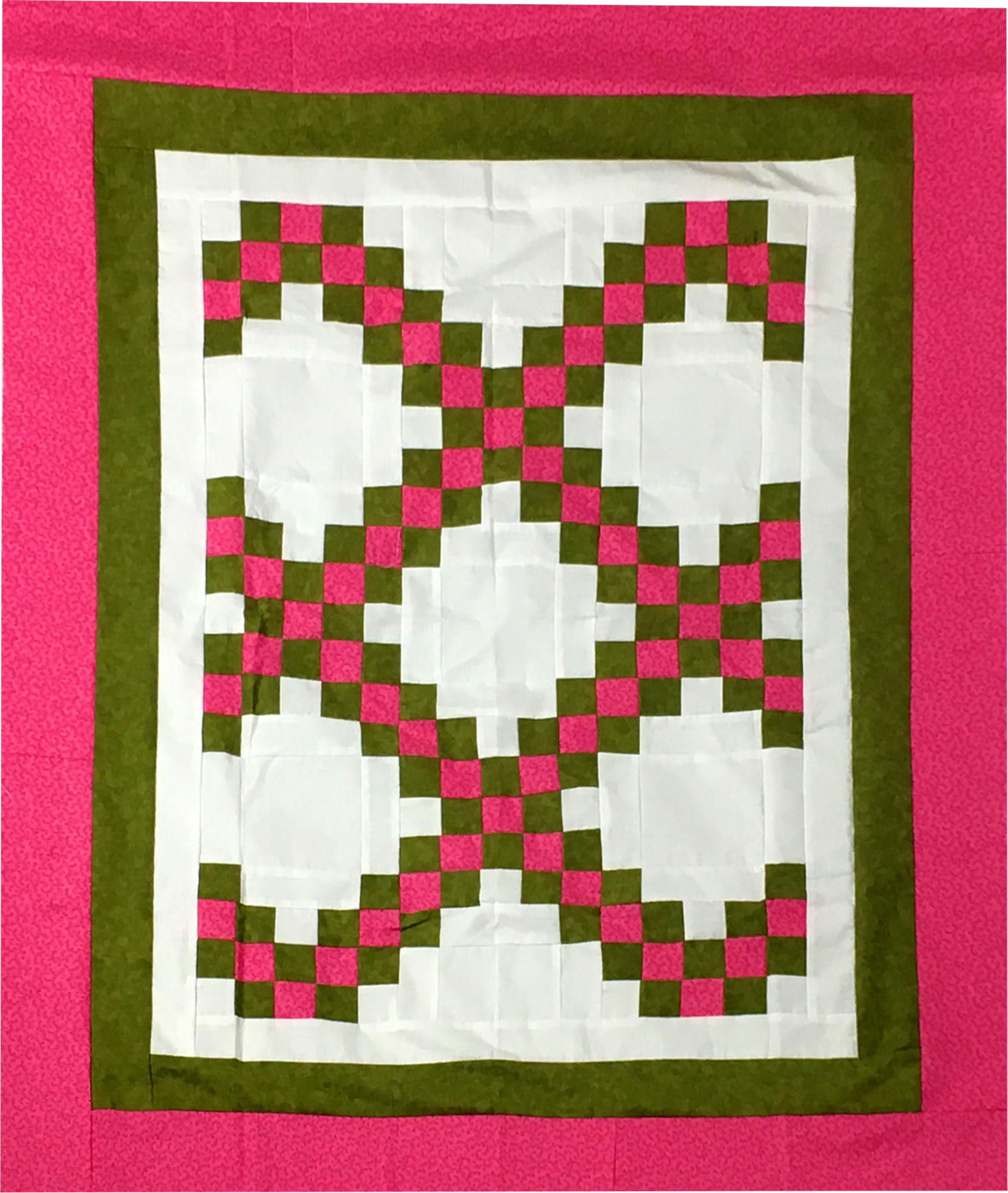 Green & Pink Irish Chain patchwork QUILT TOP lap or baby size