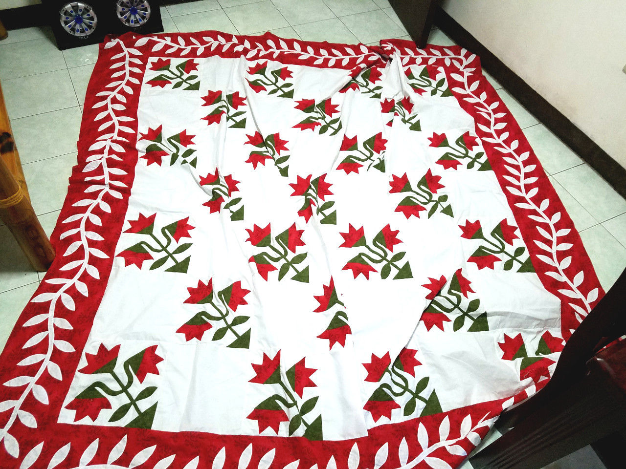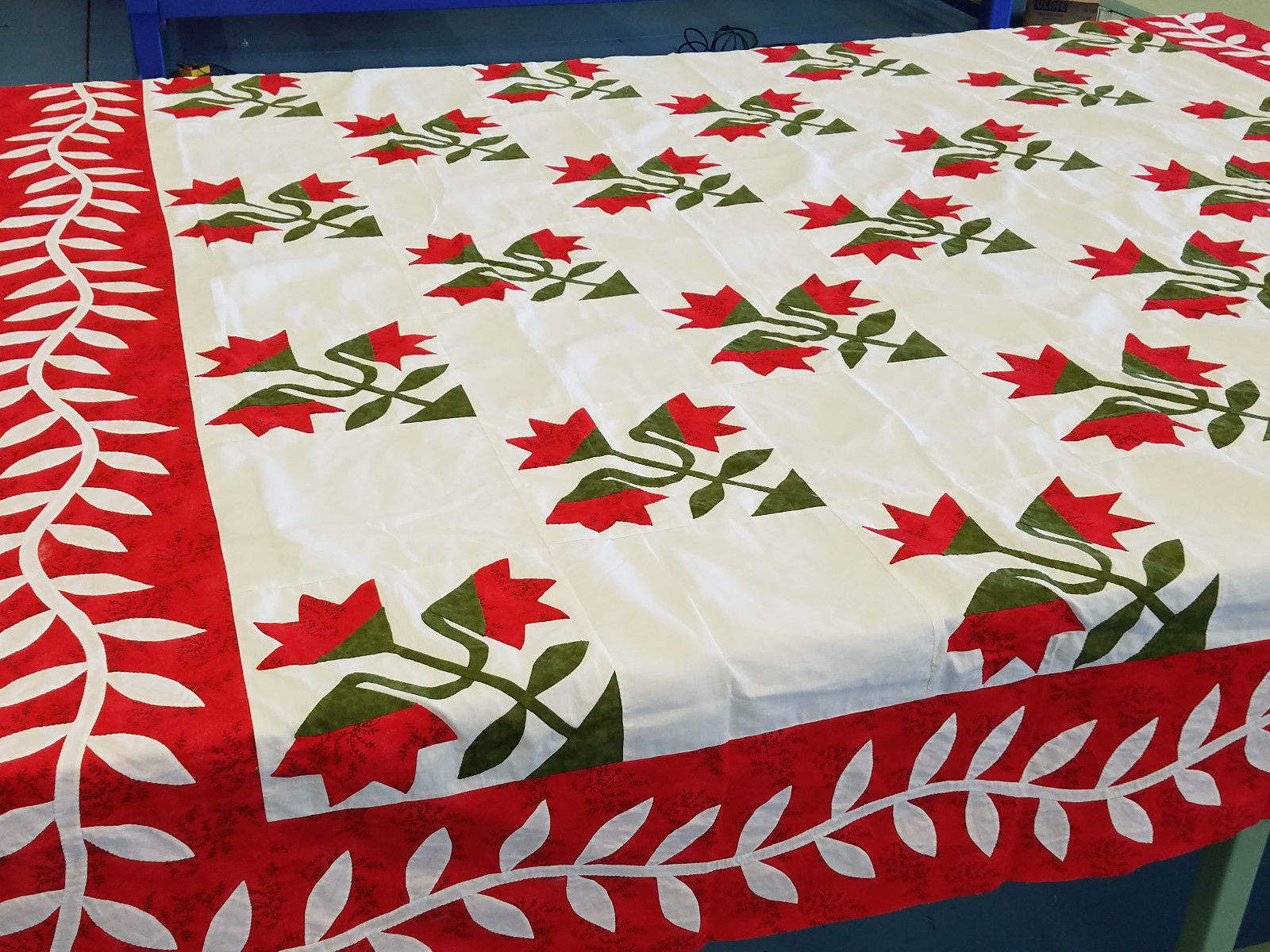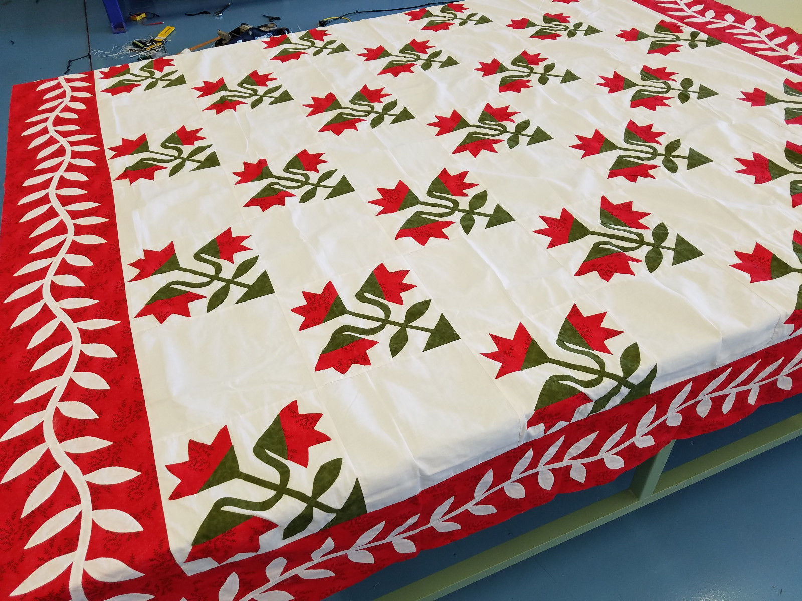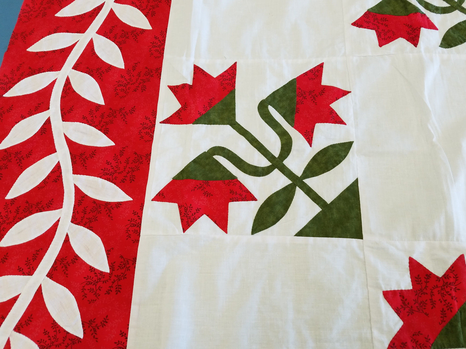 Hand Applique Carolina Lily – QUILT TOP – Queen, Elegant Must See Design