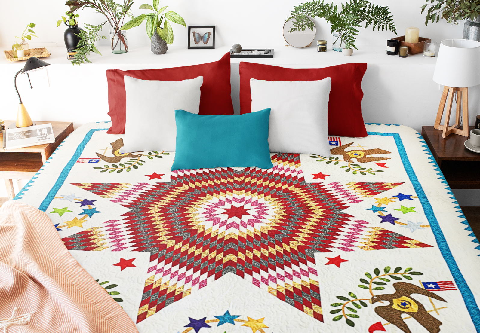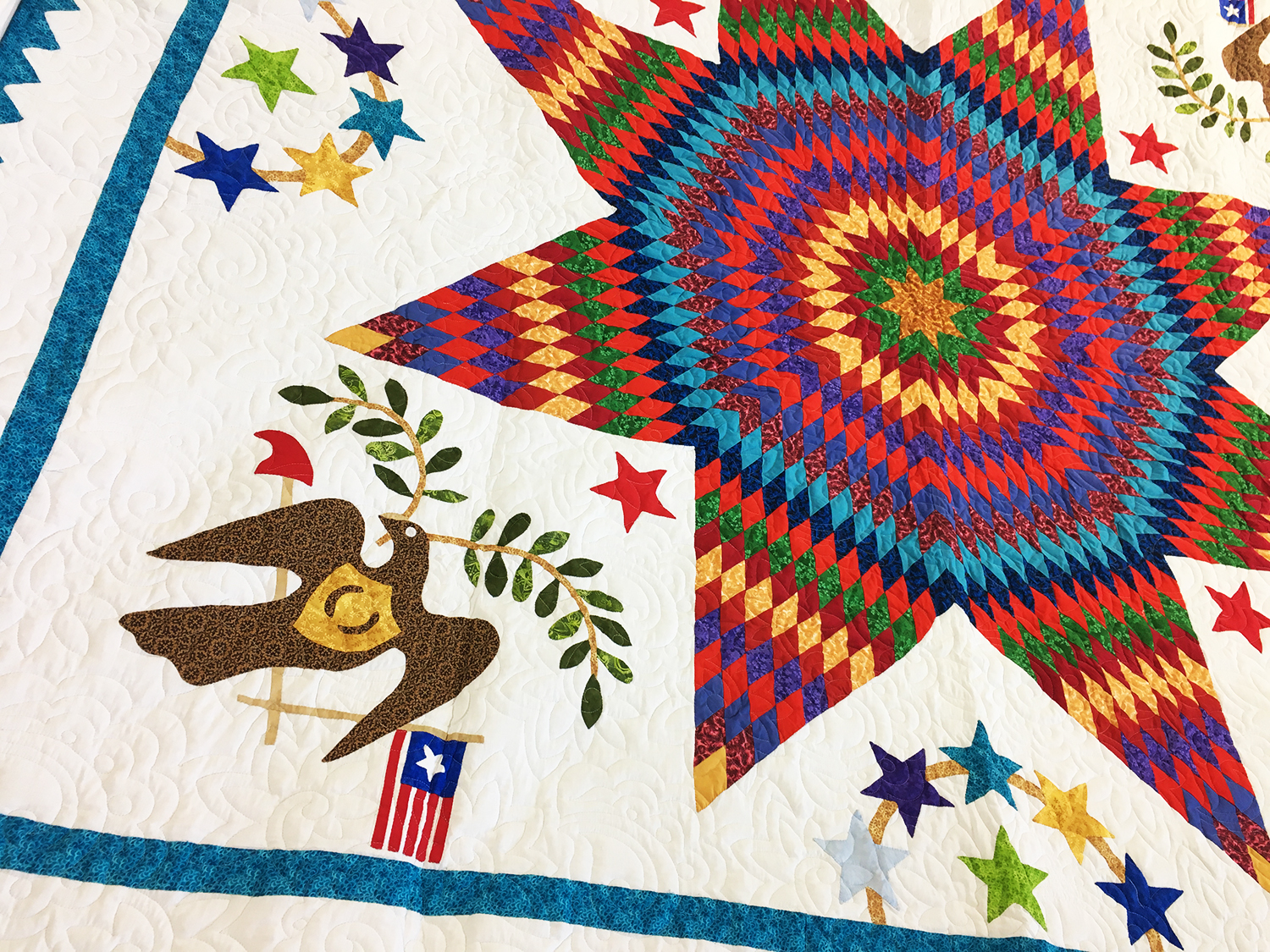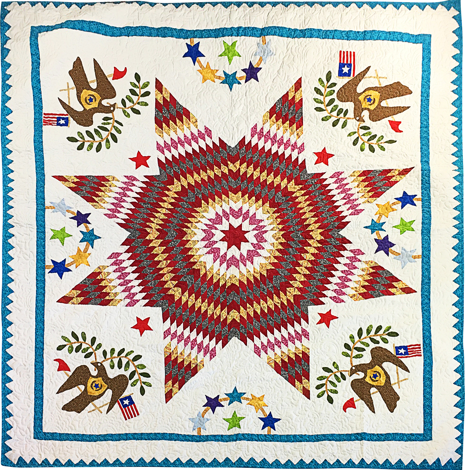 Hand Applique Lone Star with Patriotic accents FINISHED QUILT