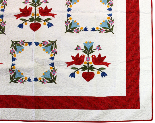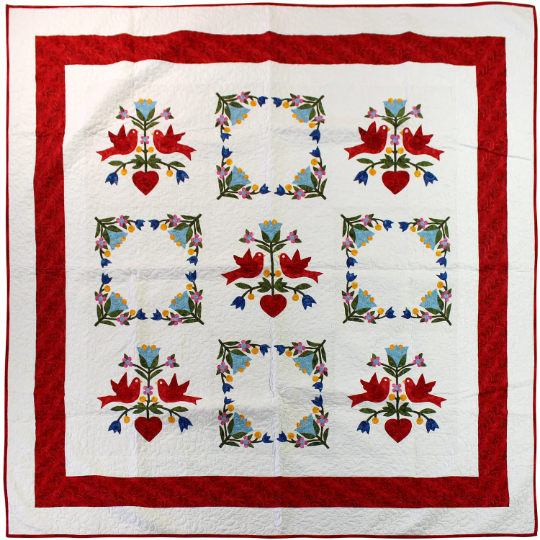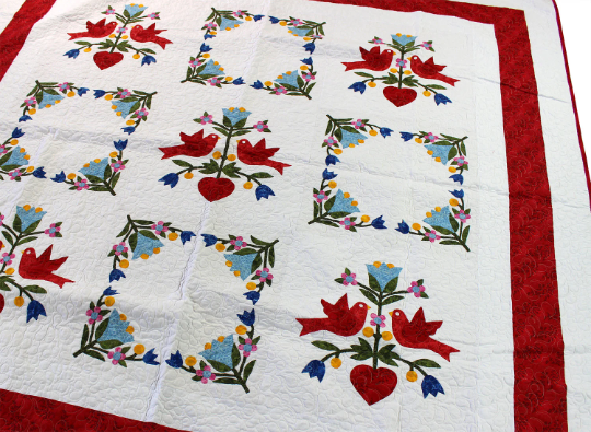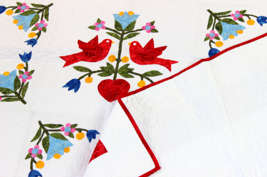 Hand Applique Love Birds in the Garden FINISHED QUILT Very Nice !