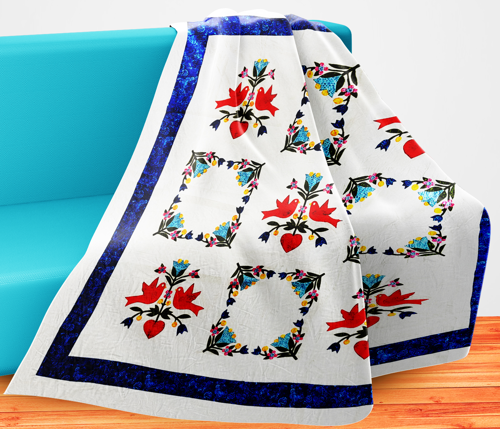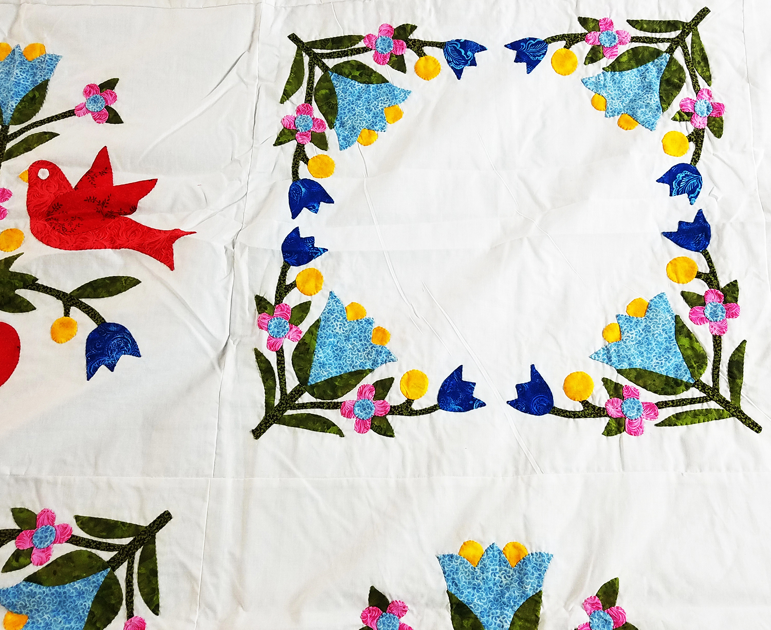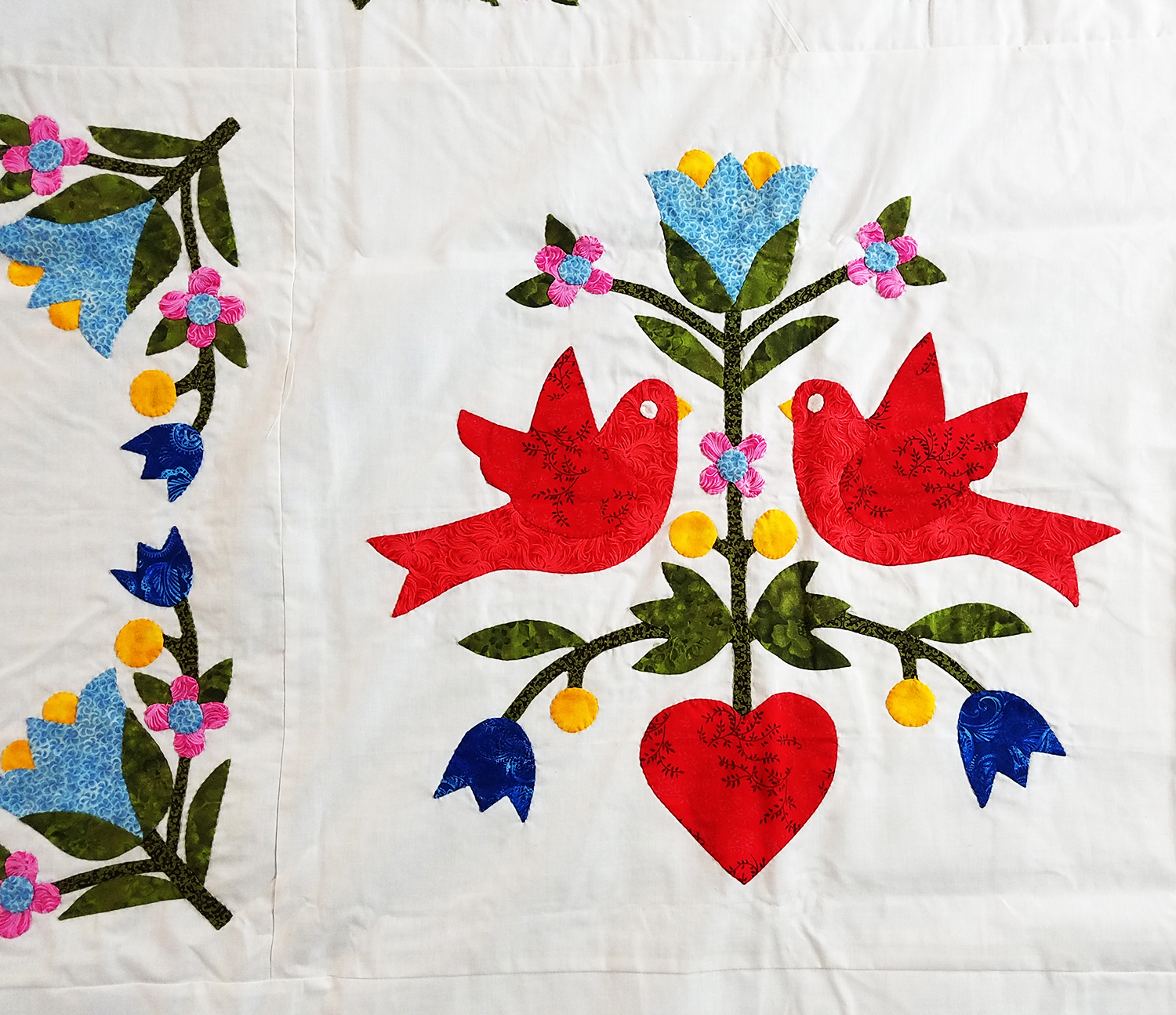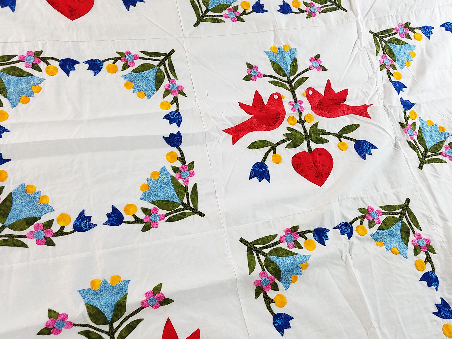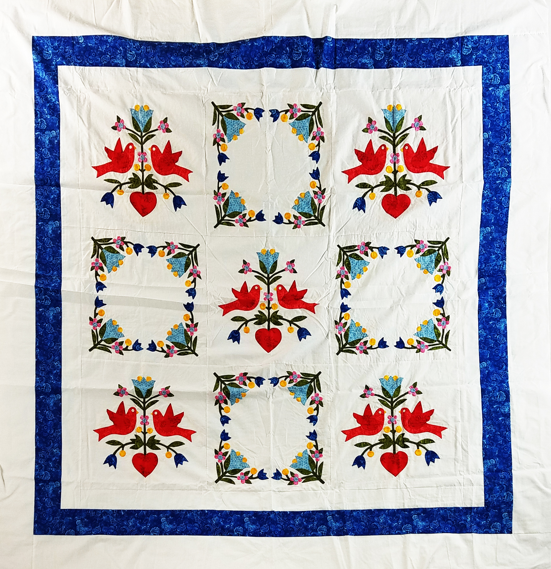 Hand Applique Love Birds in the Garden – QUILT TOP queen size