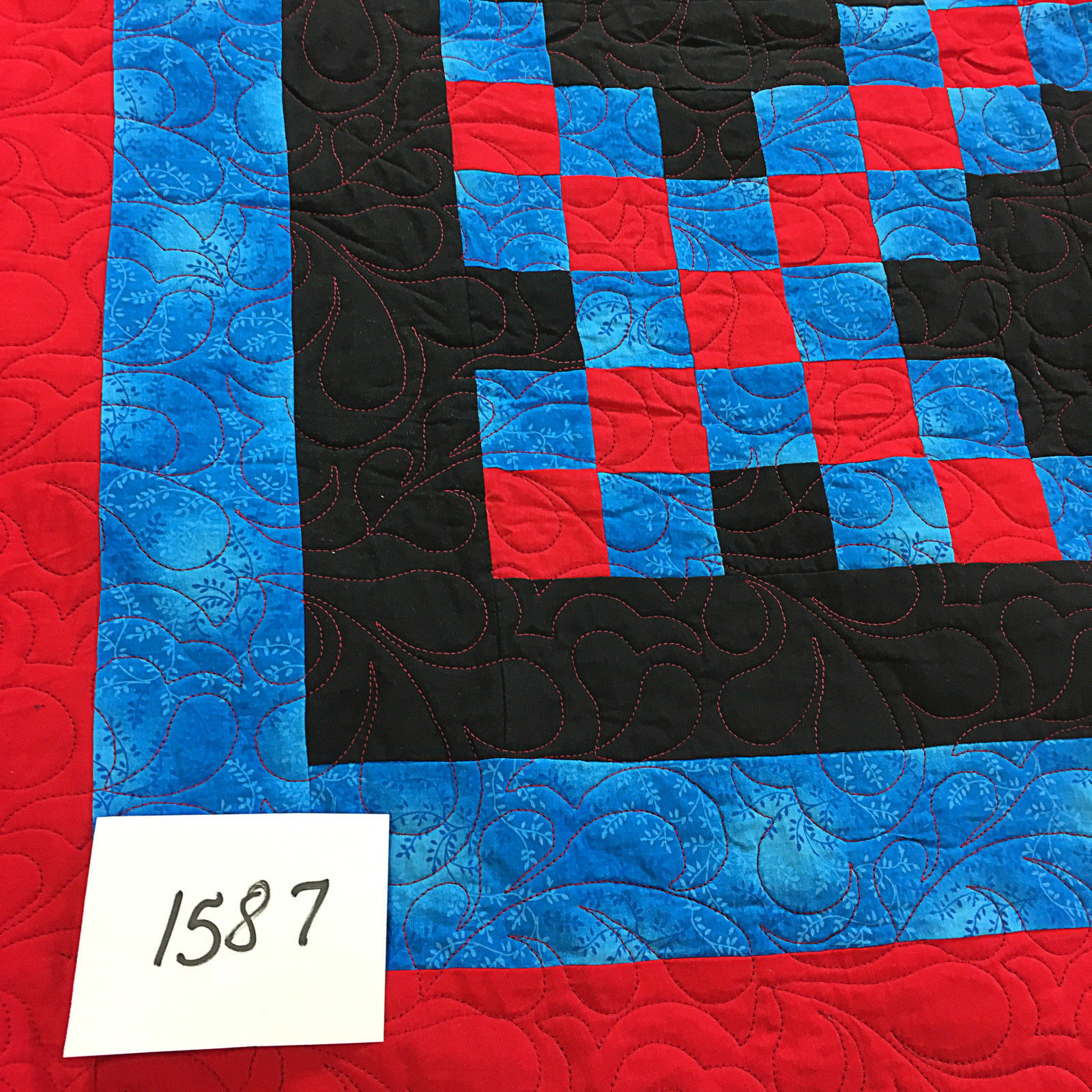 This is a large 90″ x 90″ and is a finished quilt ready to be enjoyed by your family. It is made in 100% cotton fabrics, and is exceptional in every detail. It will be cherished for generations to come.