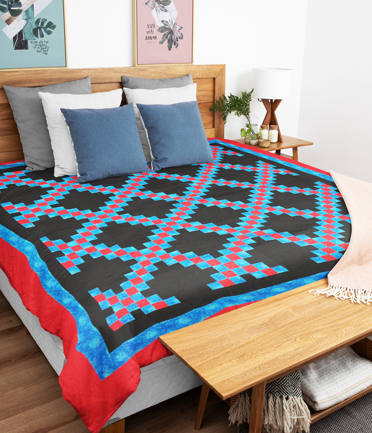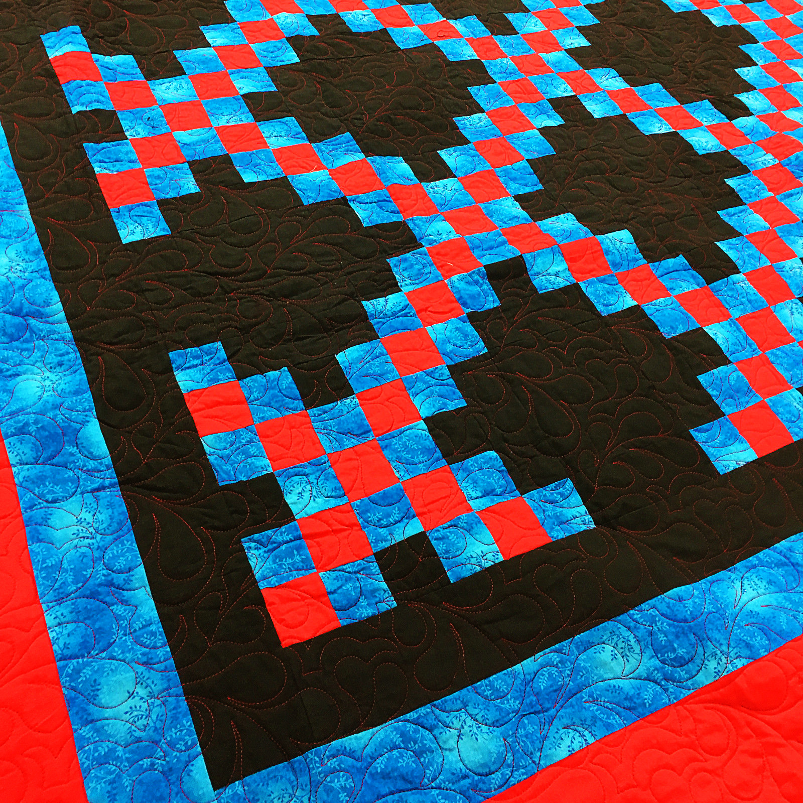 Masculine Double Irish Chain patchwork FINISHED QUILT – Feather Quilting