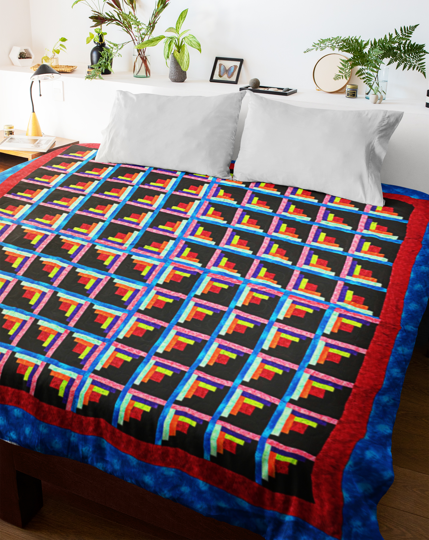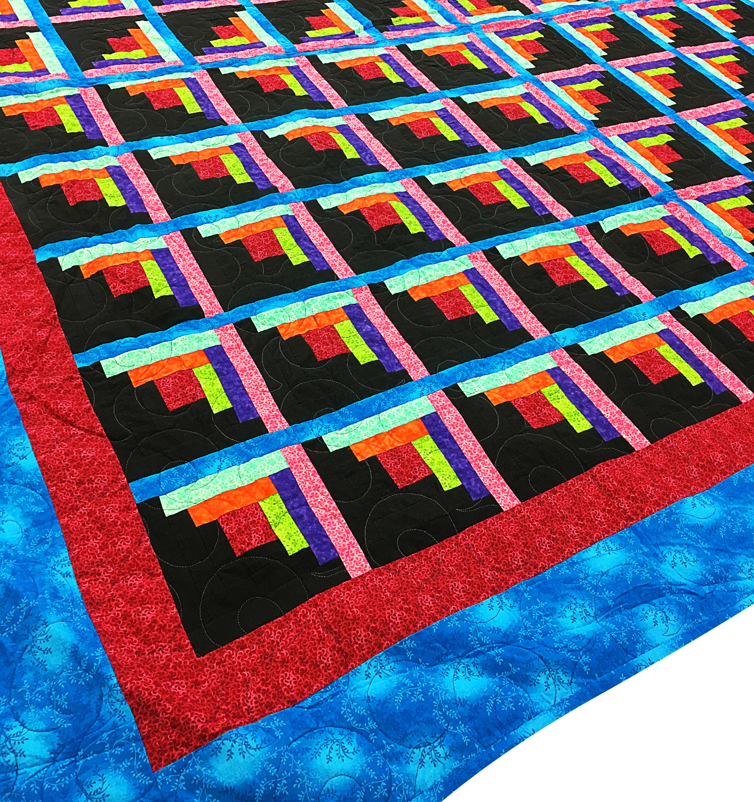 Multi Color Patchwork Sparkling Diamond Log Cabin FINISHED QUILT – Elegant