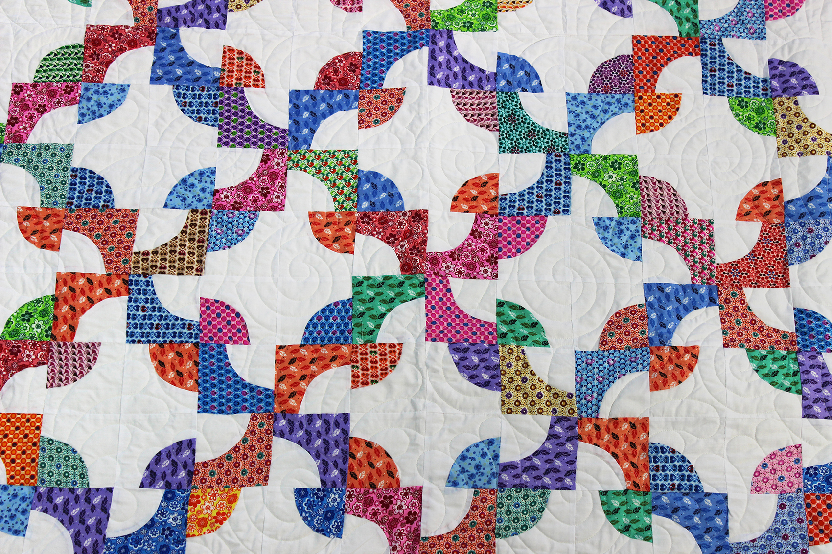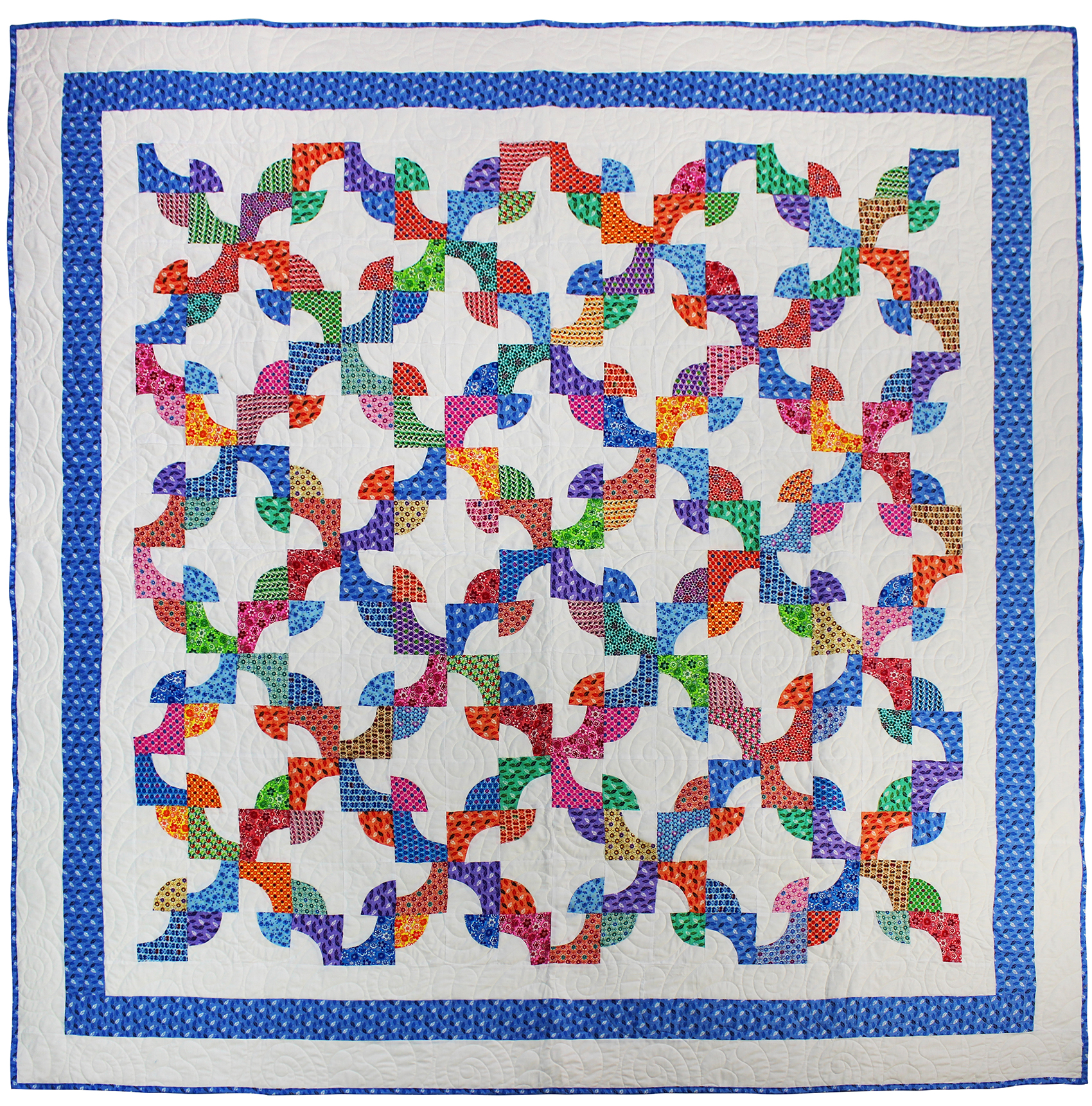Multi-color Scrap Drunkards Path Patchwork FINISHED – Queen Sized