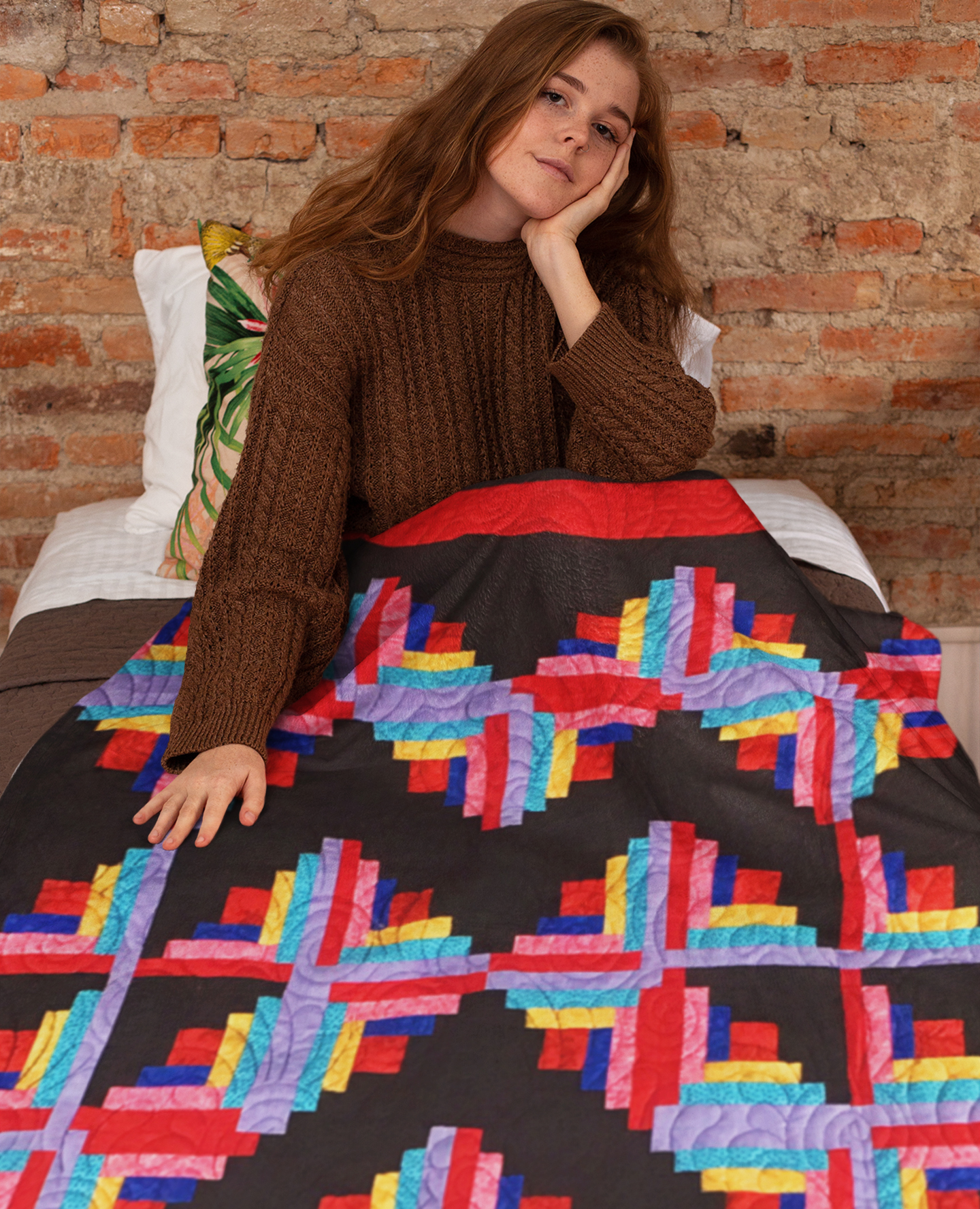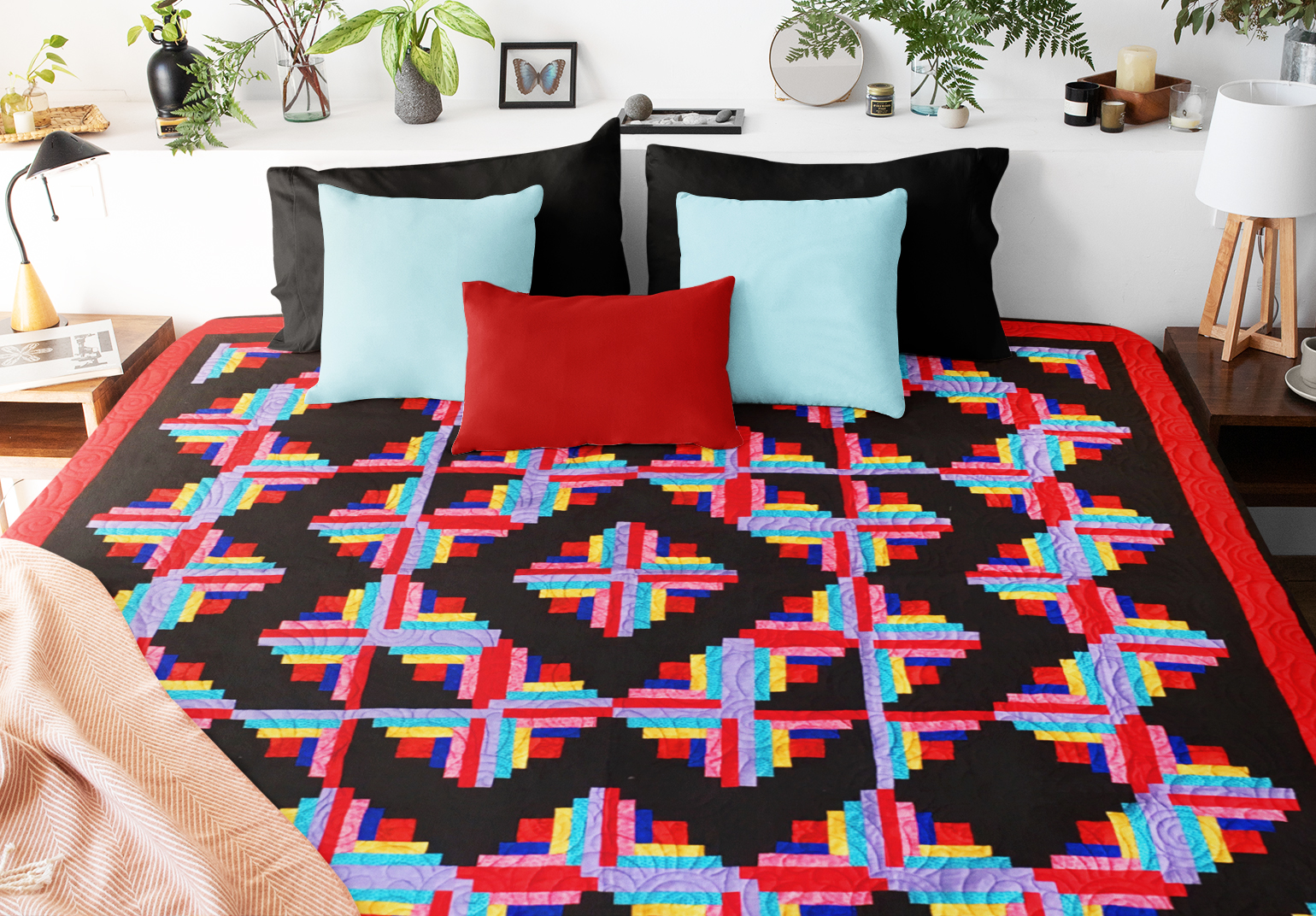 Patchwork Abstract style Scrap Quilt Log Cabin FINISHED QUILT