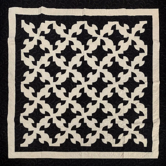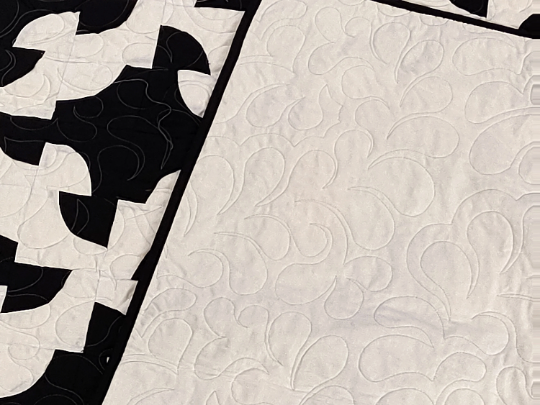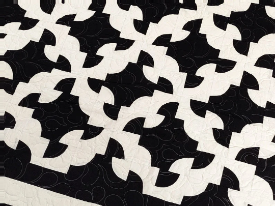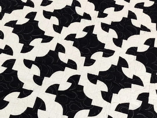 Patchwork Black & White Drunkards Path FINISHED QUILT – Bold colors Queen Size