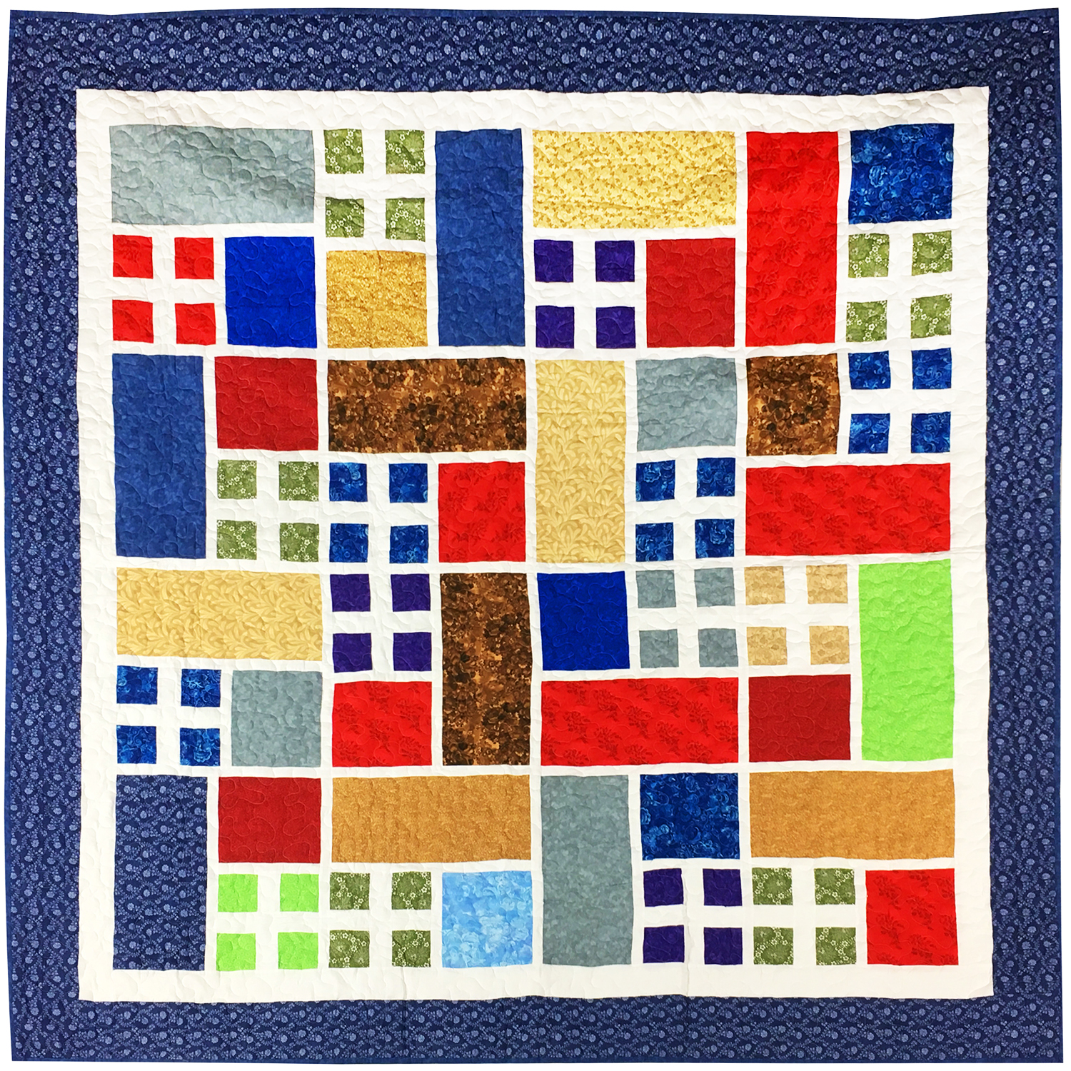 This quilt is a large 90″ x 90″ quilt. It is made with 100% cotton fabrics, and is exceptional in every detail. It will be cherished for generations to come.