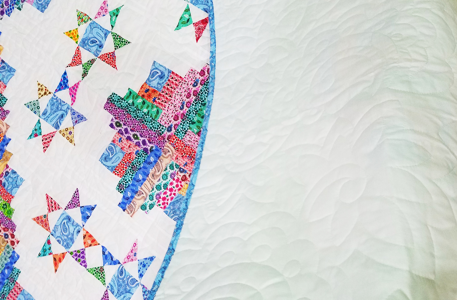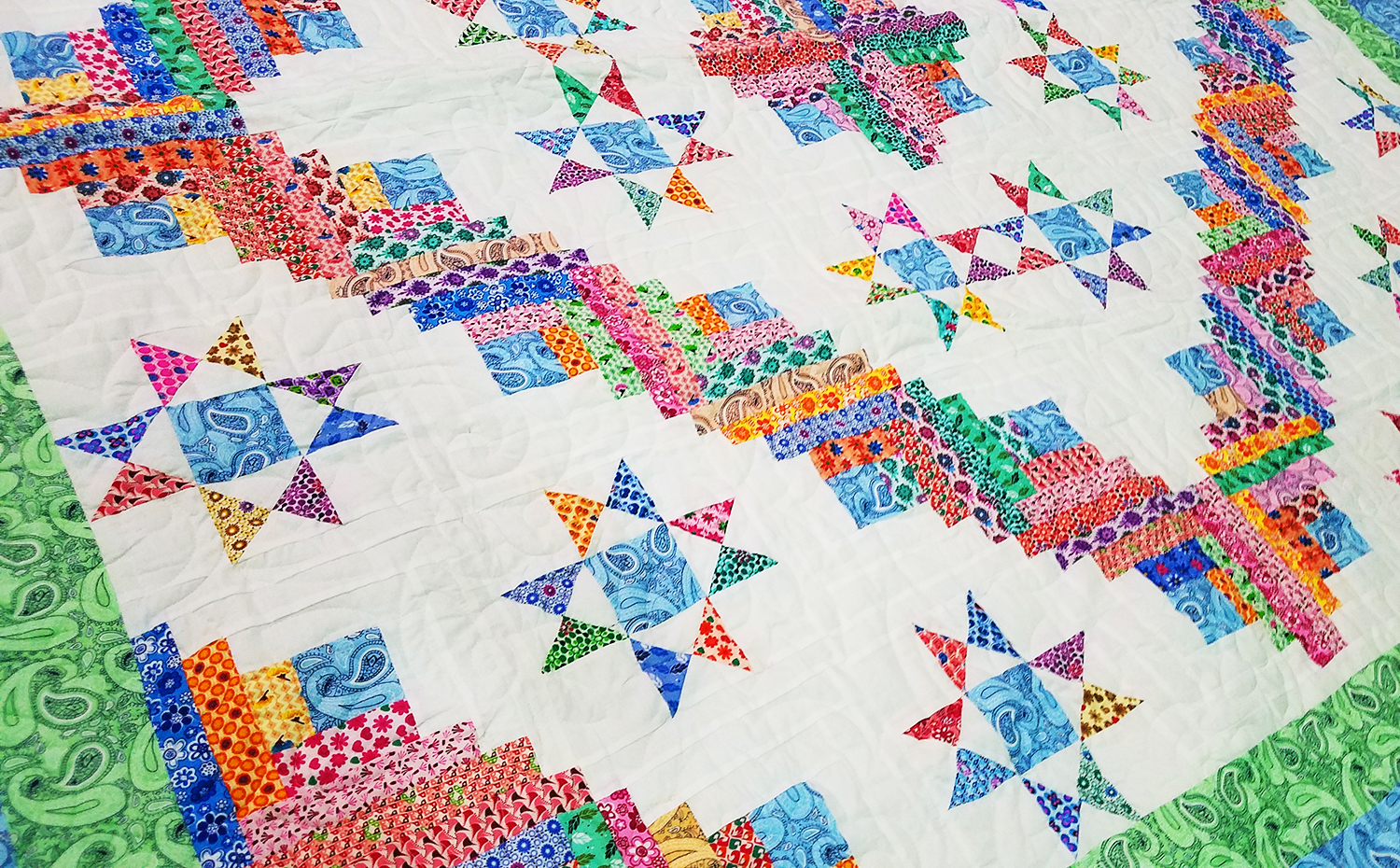 Patchwork Log Cabin Star with Ohio Stars FINISHED QUILT Scrap quilt Queen Size
