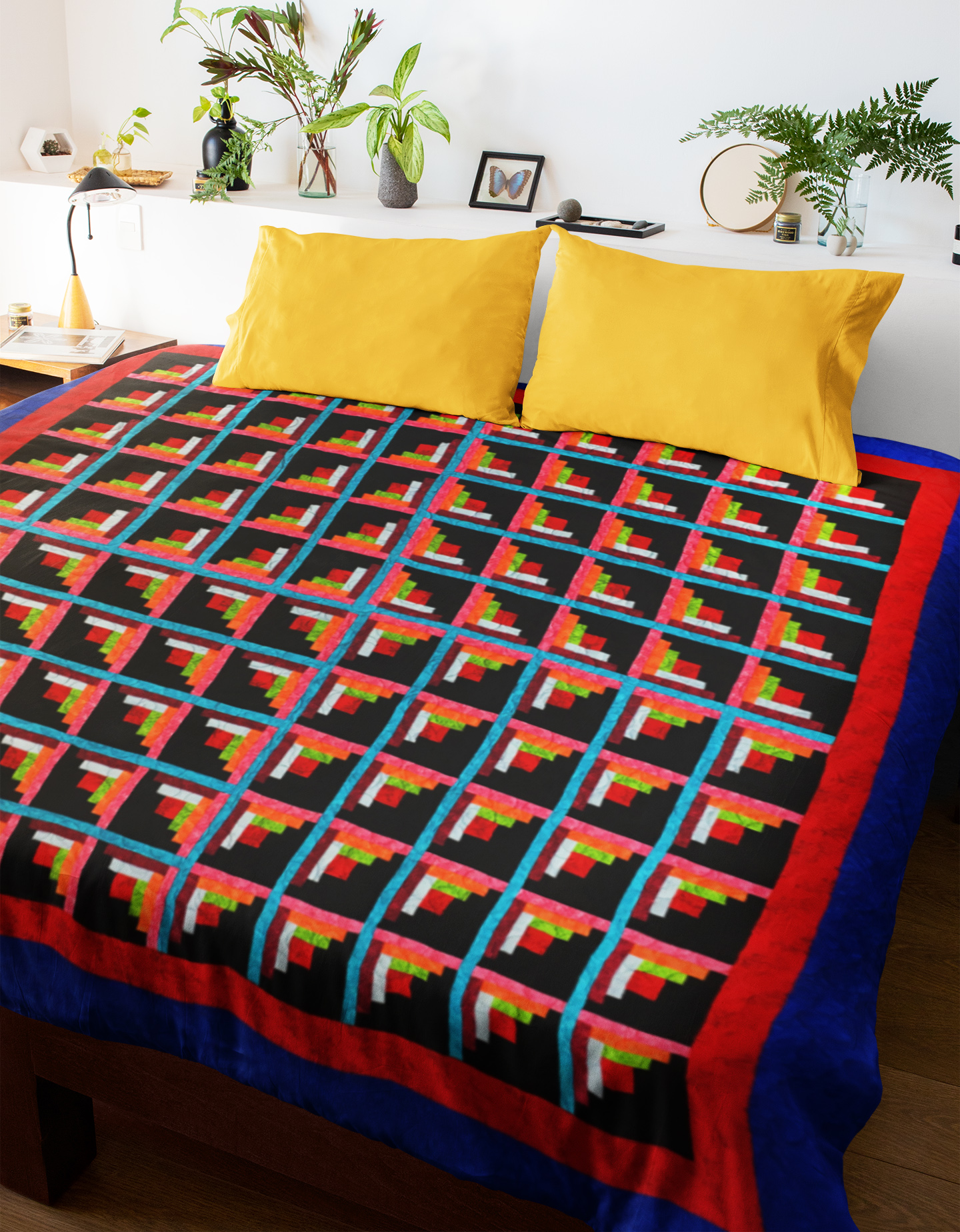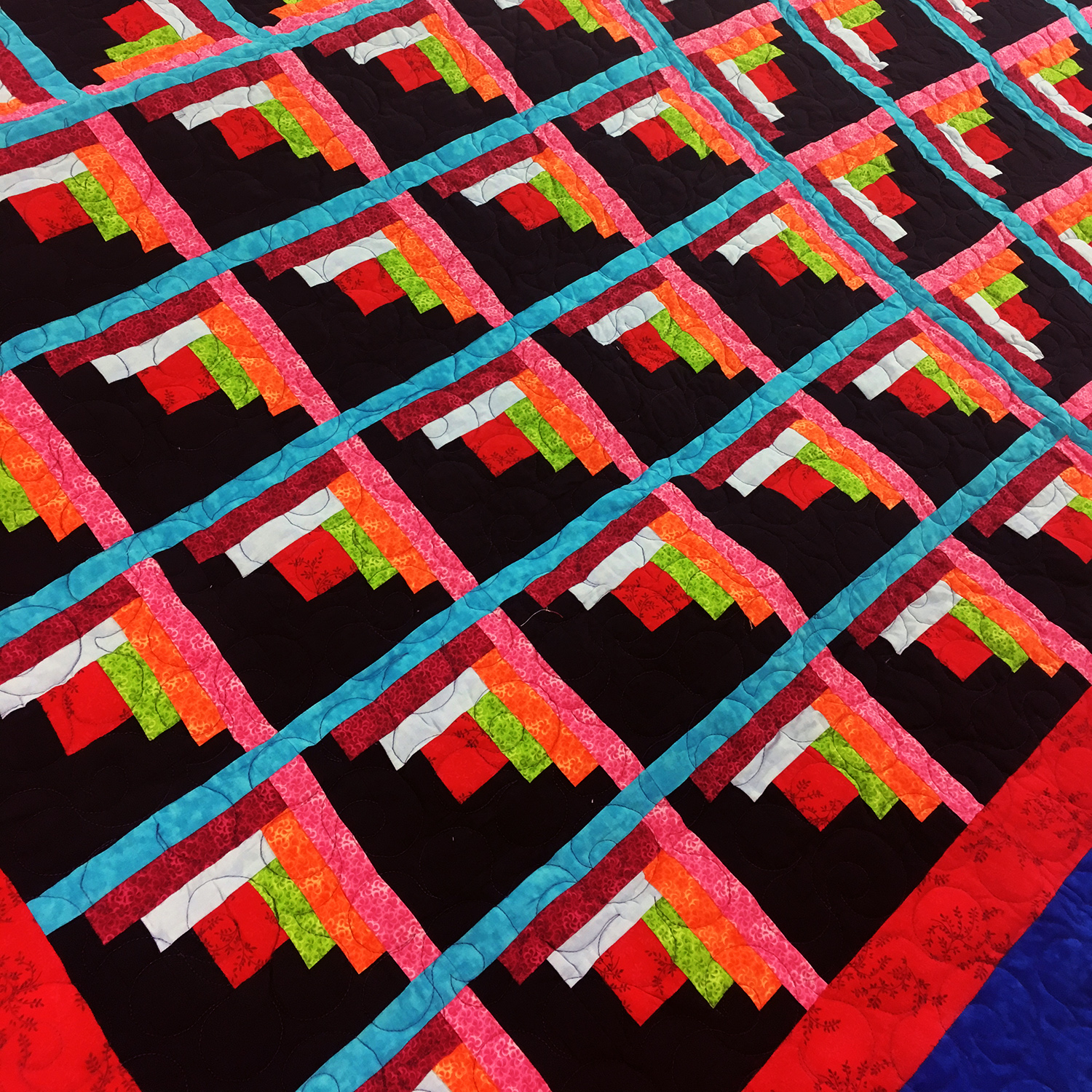 Patchwork Sparkling Diamond Log Cabin FINISHED QUILT