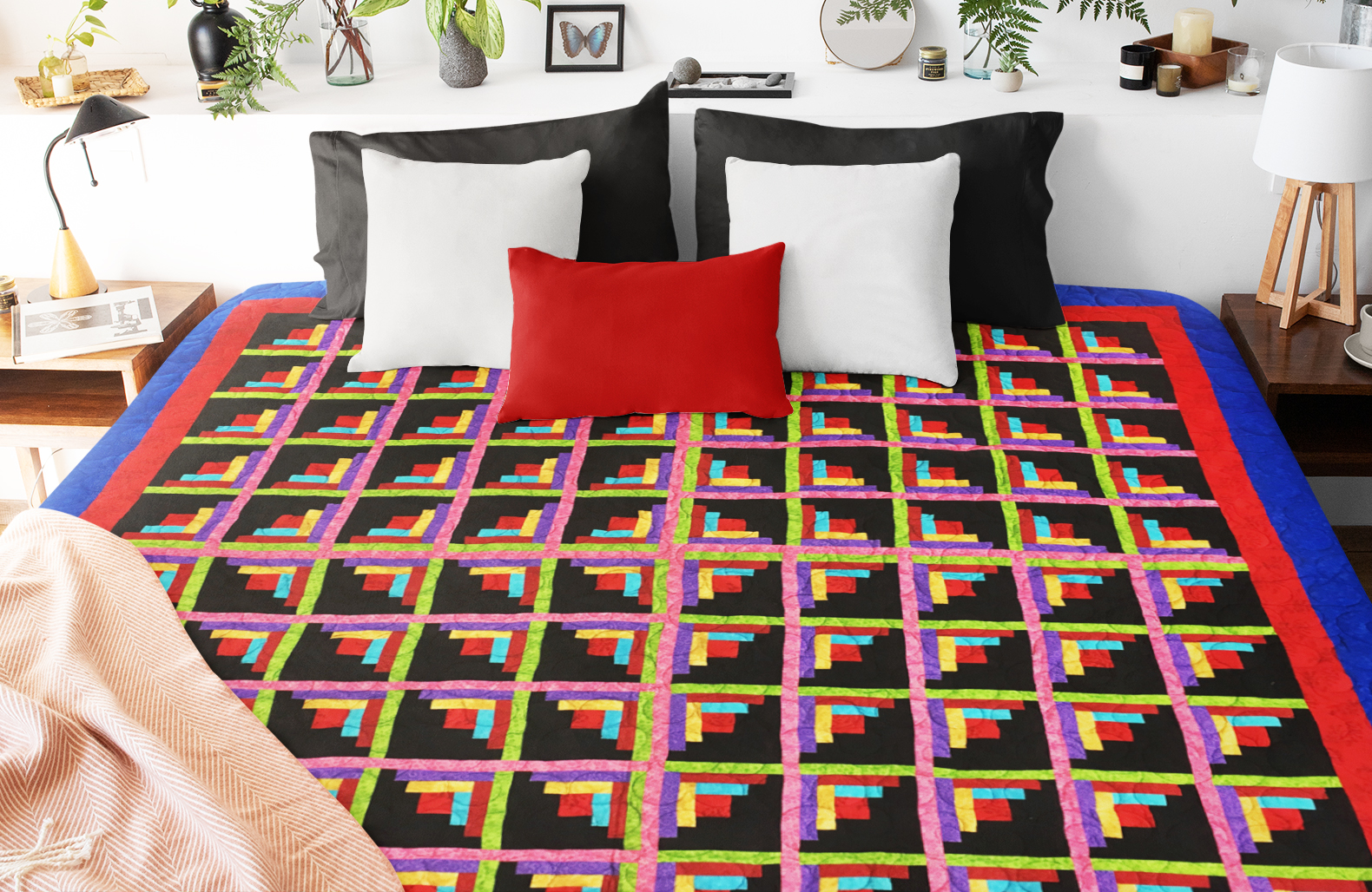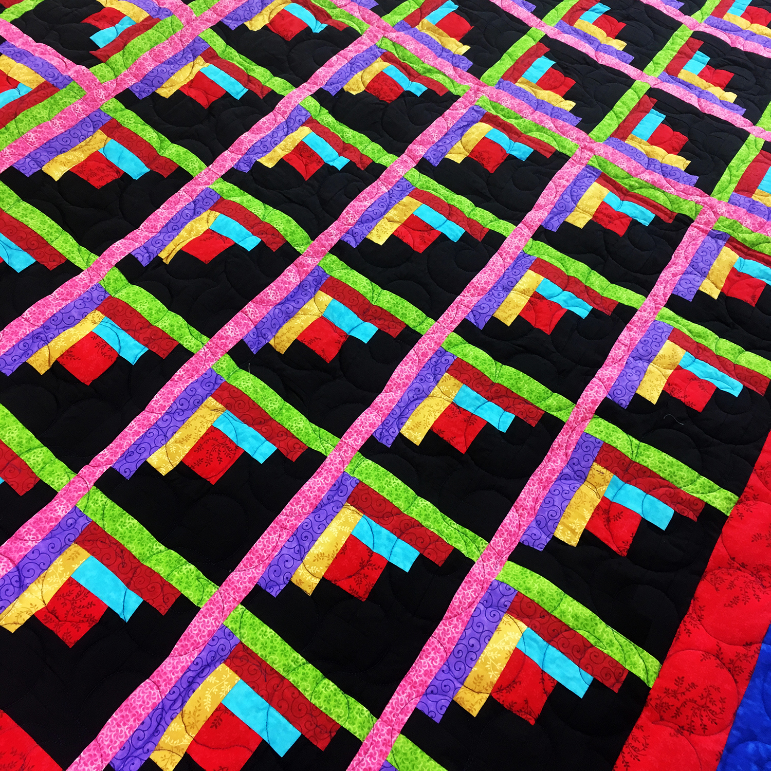 Patchwork Sparkling Diamond Log Cabin FINISHED QUILT