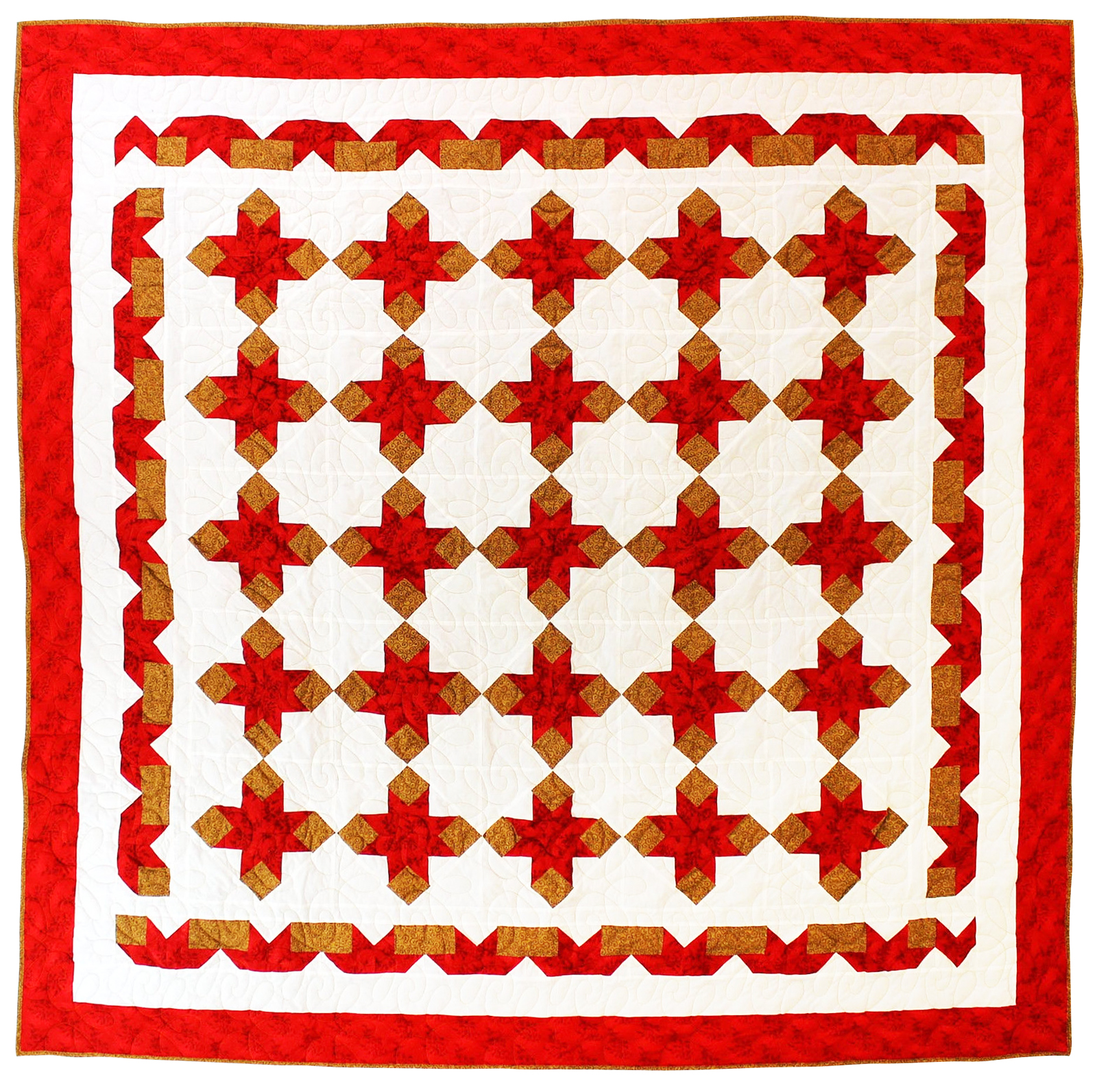 This quilt is large at 96″ x 96″ and is a finished quilt ready to be enjoyed by your family. It is made in 100% cotton fabrics, and is exceptional in most every detail. It will be cherished for generations to come.
