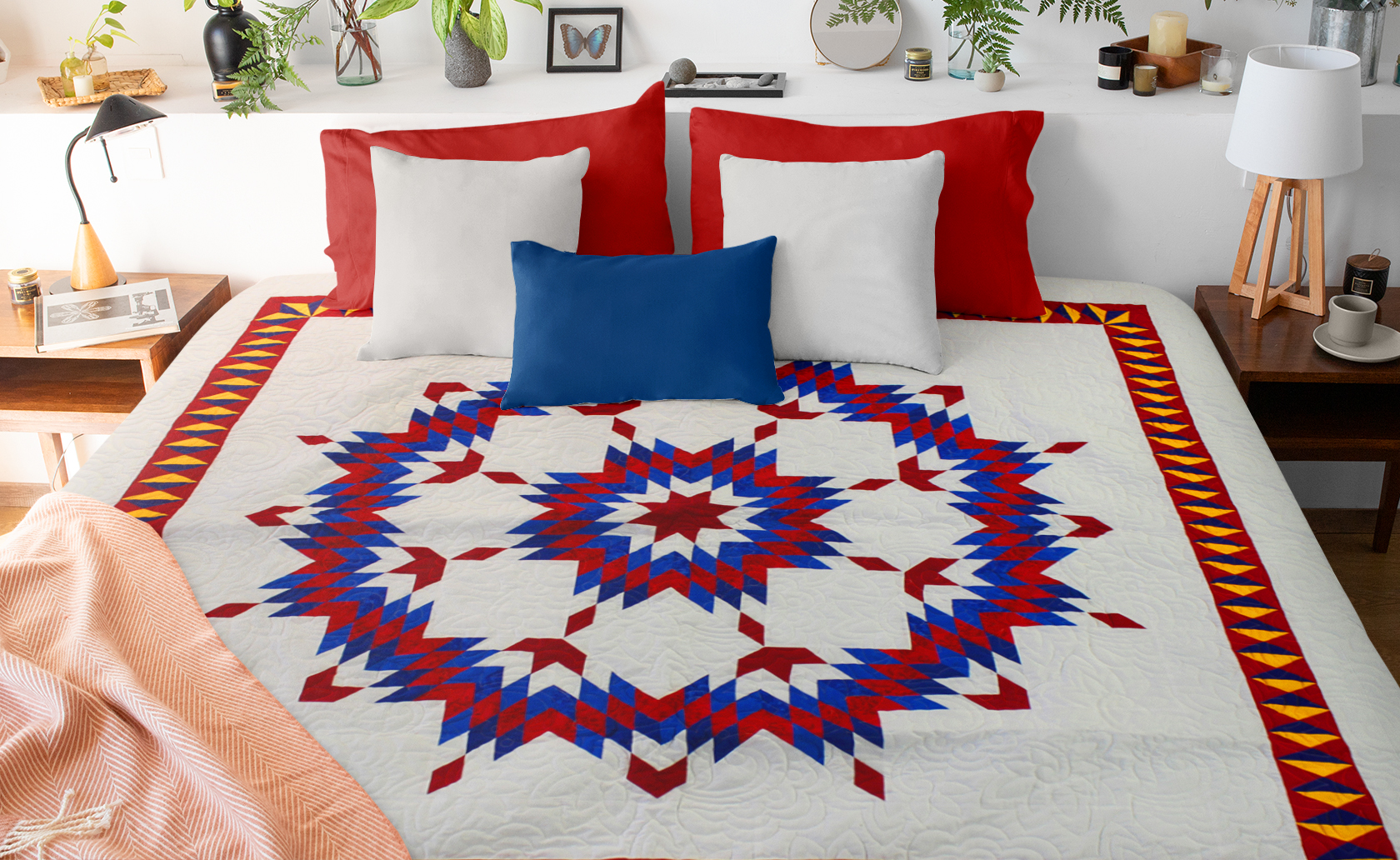Patriotic Broken Star FINISHED QUILT * Intricate Quilting – Queen Size