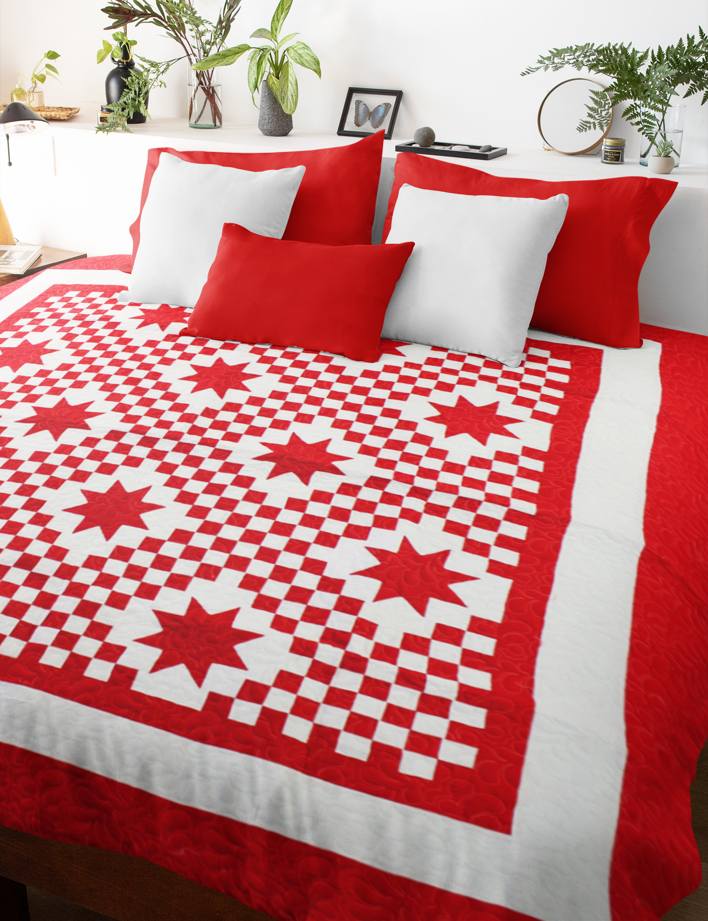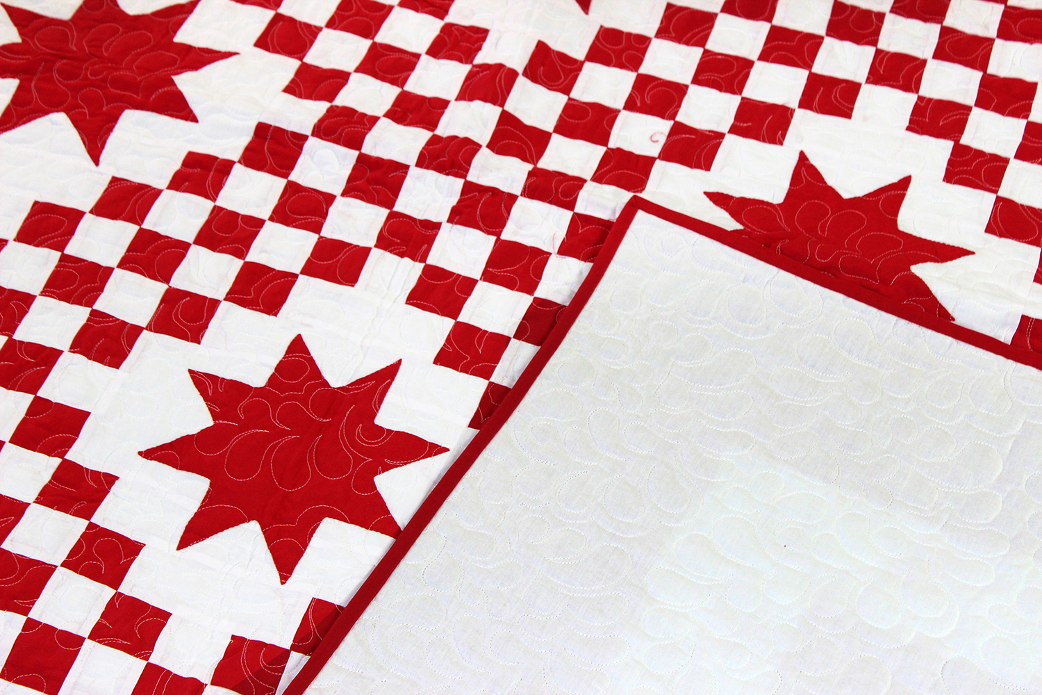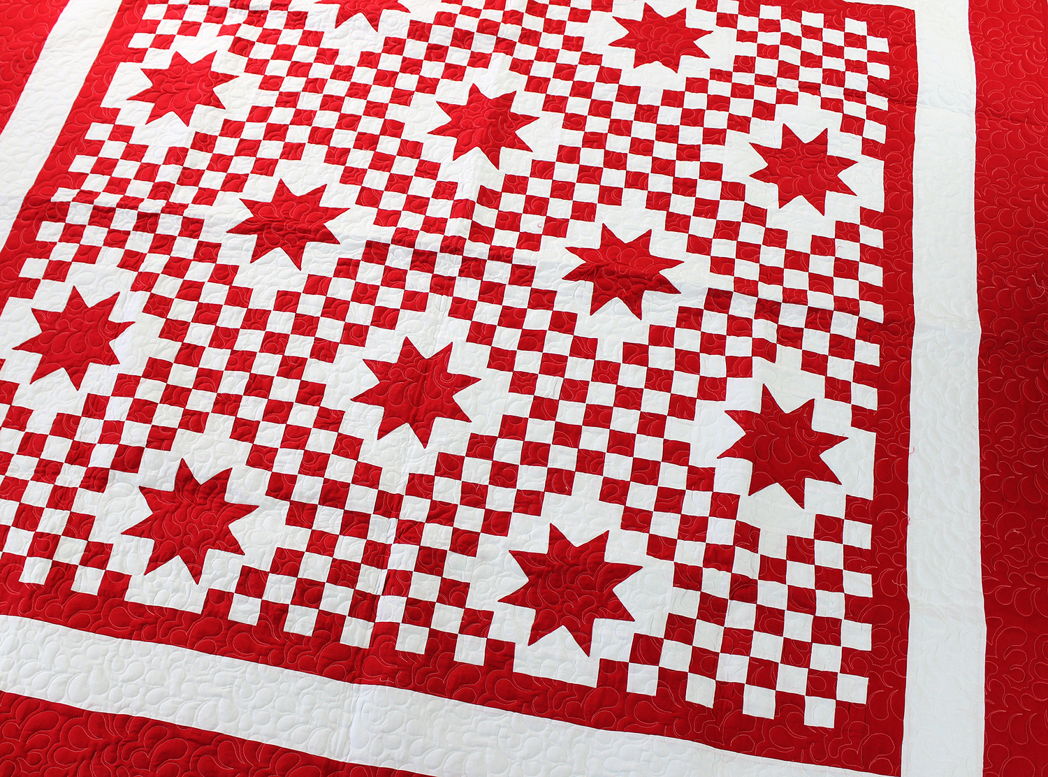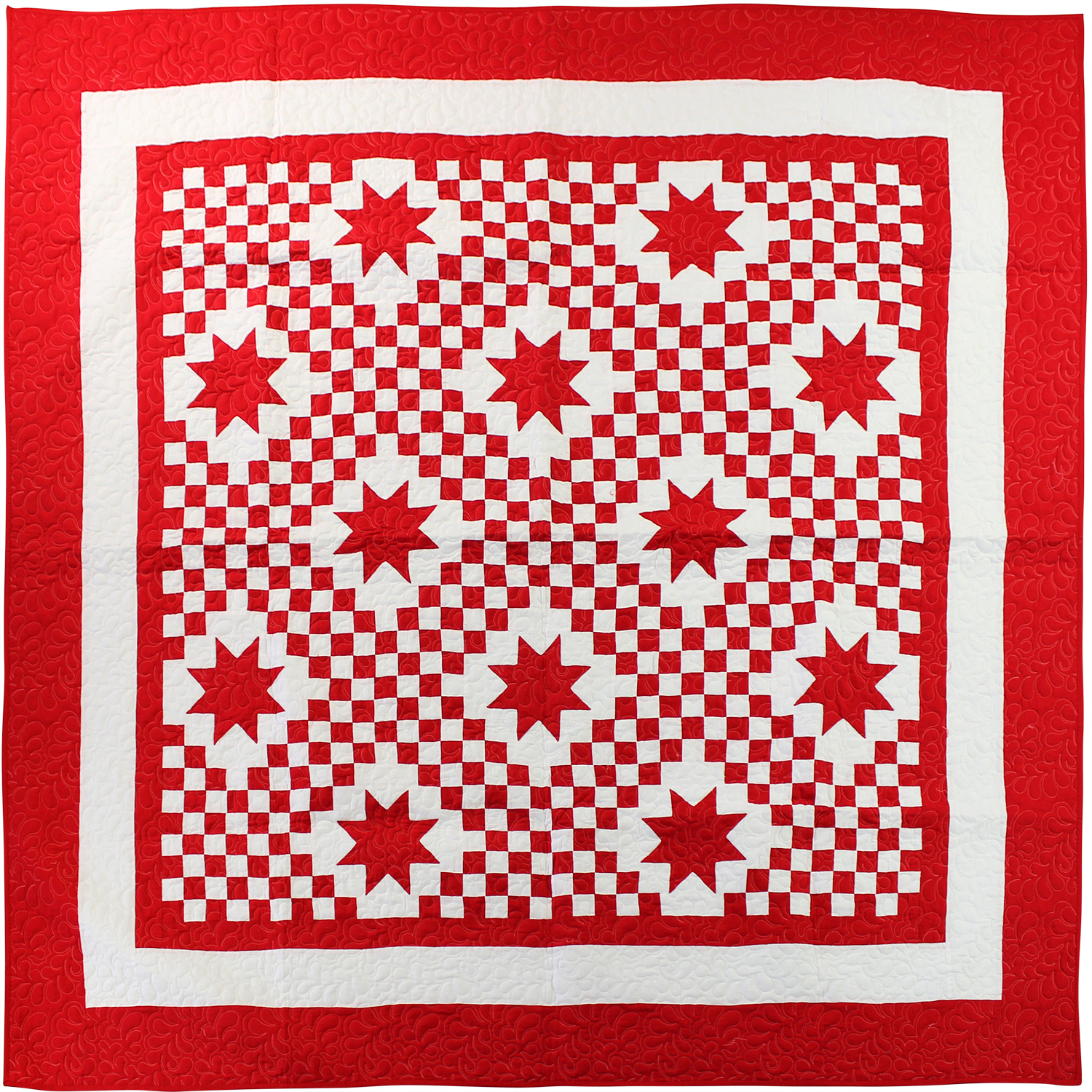Red and White Triple Irish Chain with Stars – FINISHED QUILT