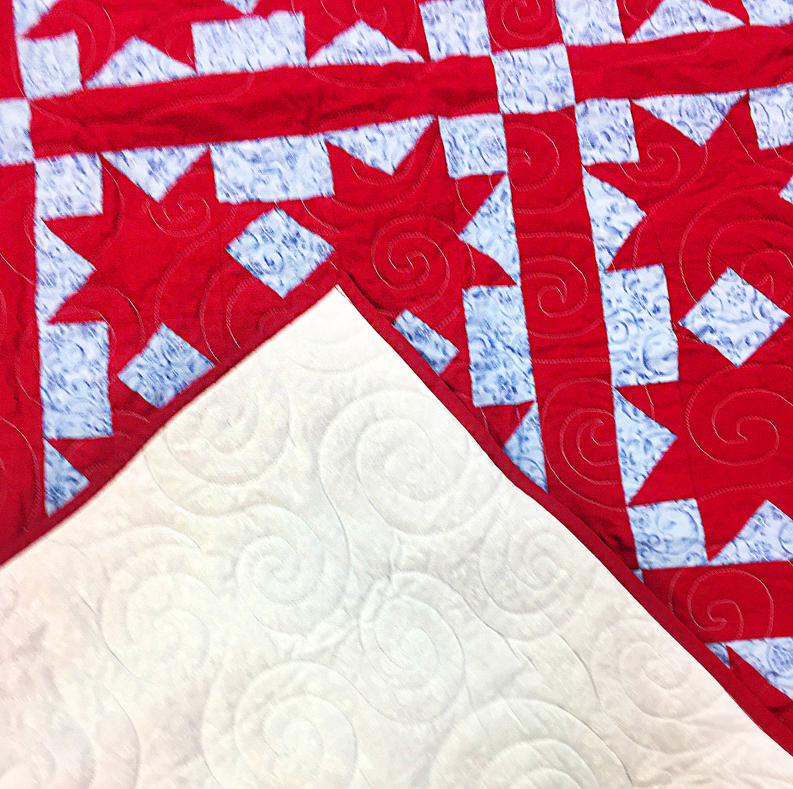 We can create a Custom made quilt for your family’s enjoyment in a few short days from any of the hundreds of quilt tops we offer.