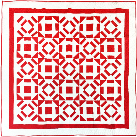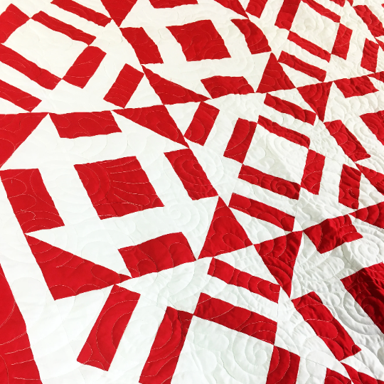 Red & White Abstract Churn Dash. FINISHED QUILT -Nice quilting