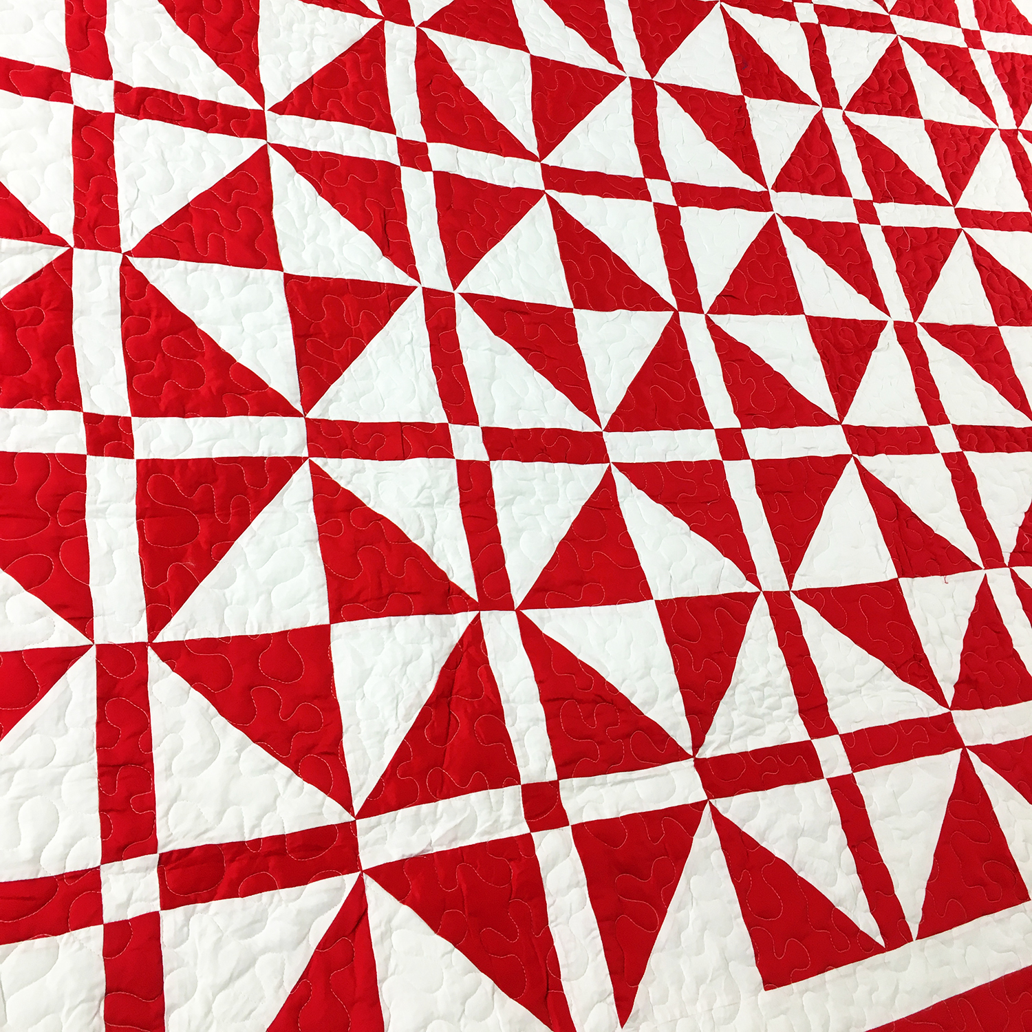 Red & White Churn Dash var. FINISHED QUILT – Intricate quilting