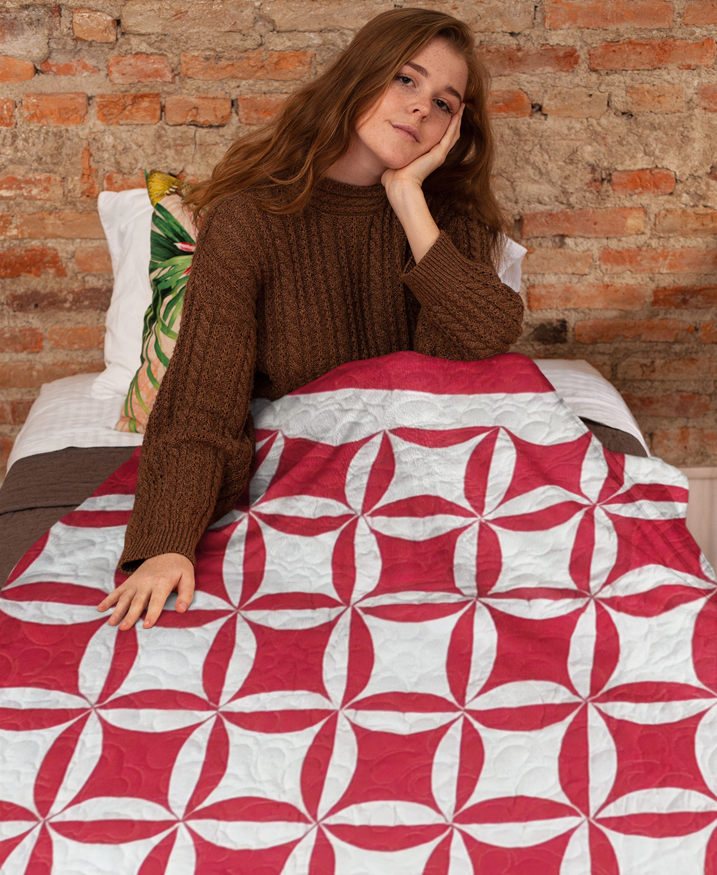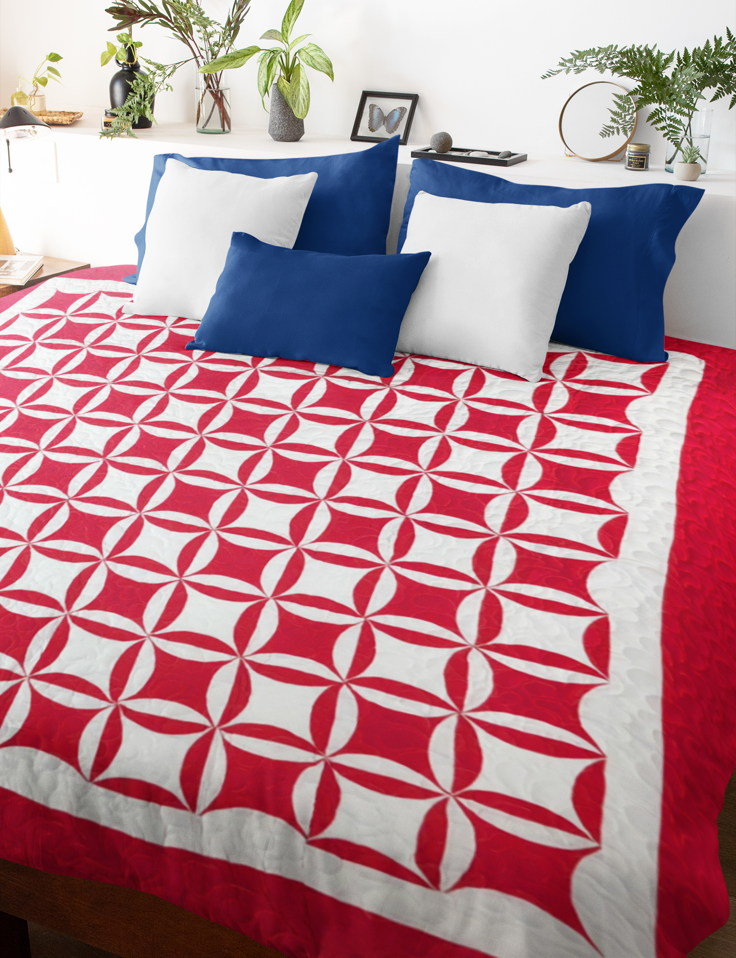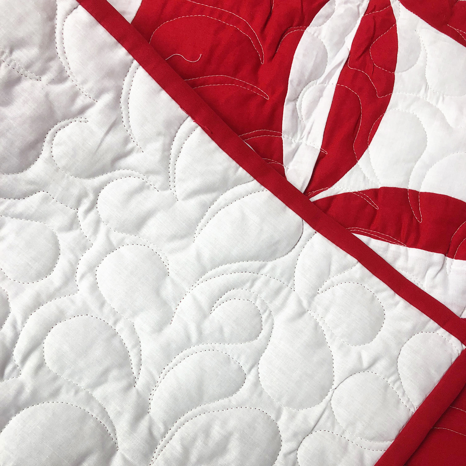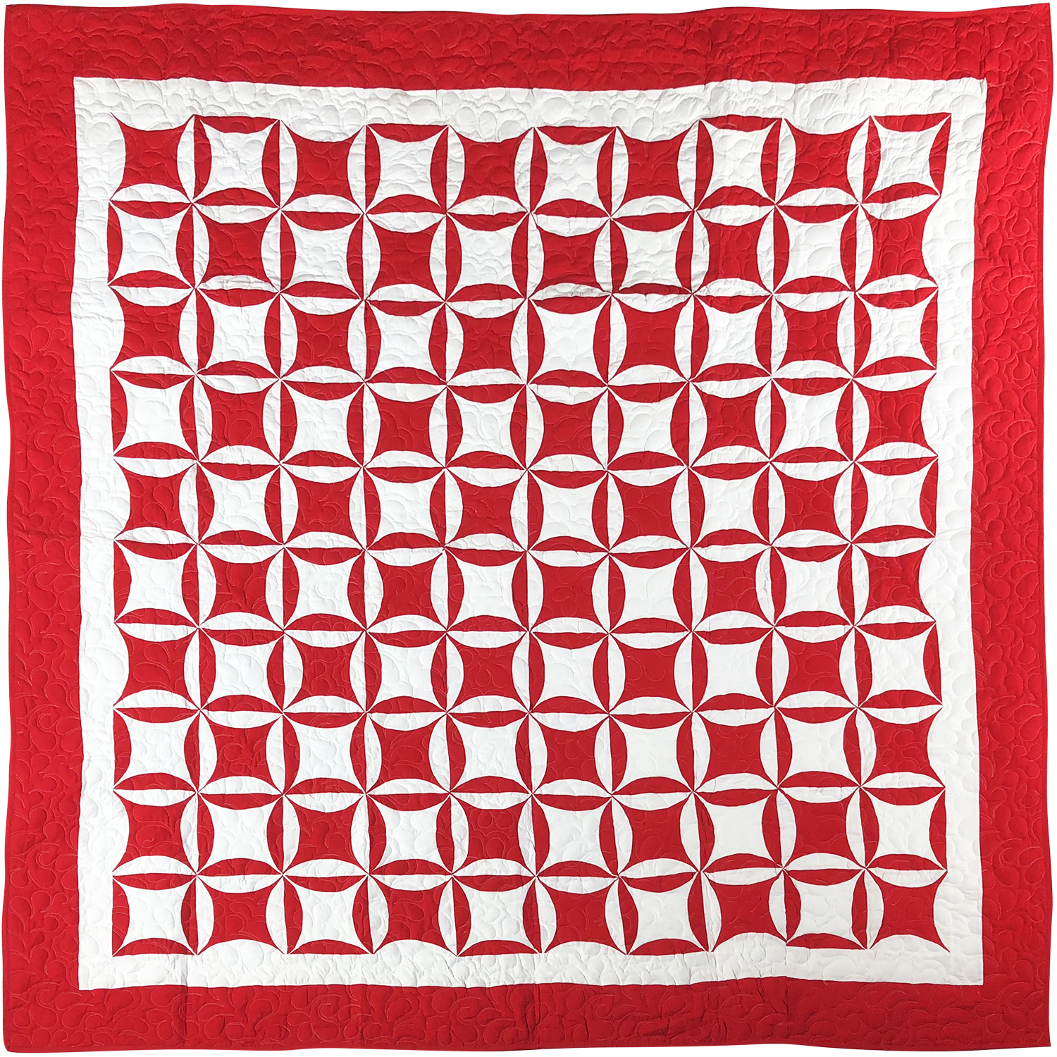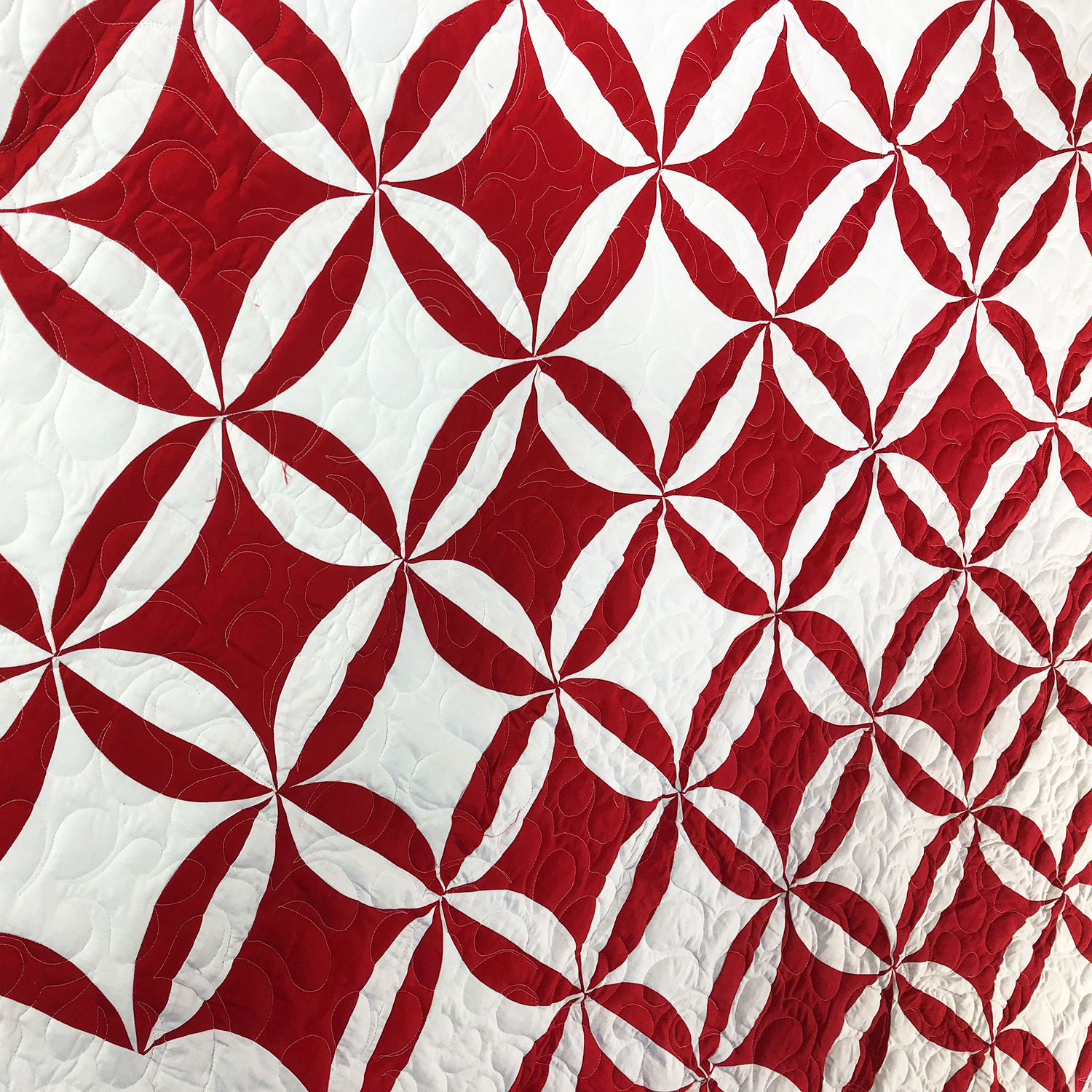 Red & White Patchwork Orange Peel FINISHED QUILT – Queen