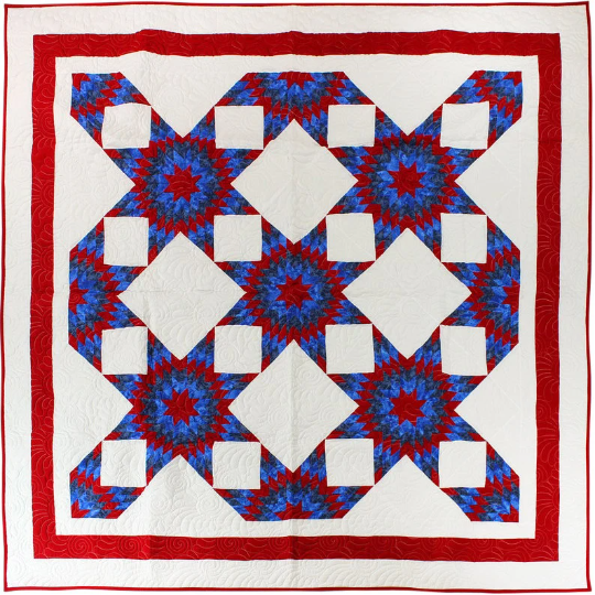 Star Patchwork Patriotic Colors FINISHED QUILT – Queen size – Feather quilting