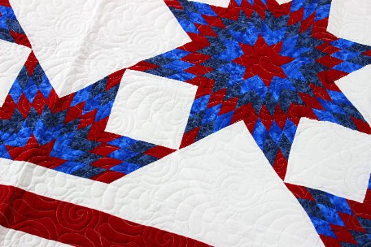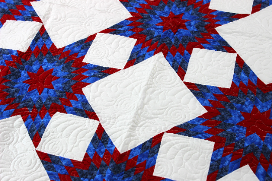 This is a large queen size Star quilt measuring about 90″ x 90″. – Very unique original design by Lancaster County Quilting Creations
