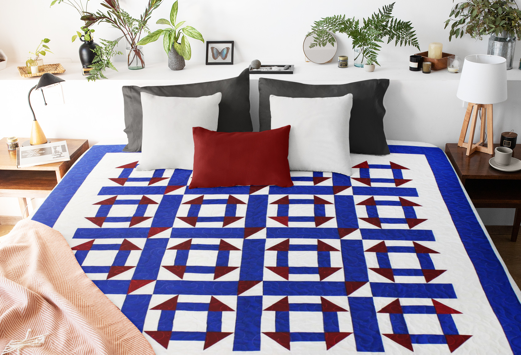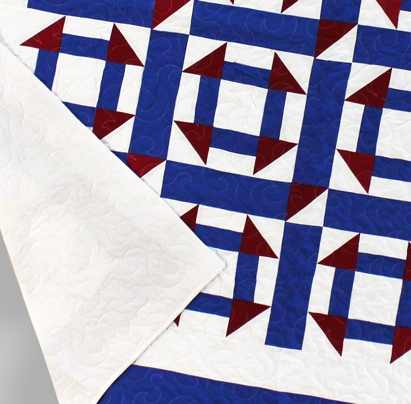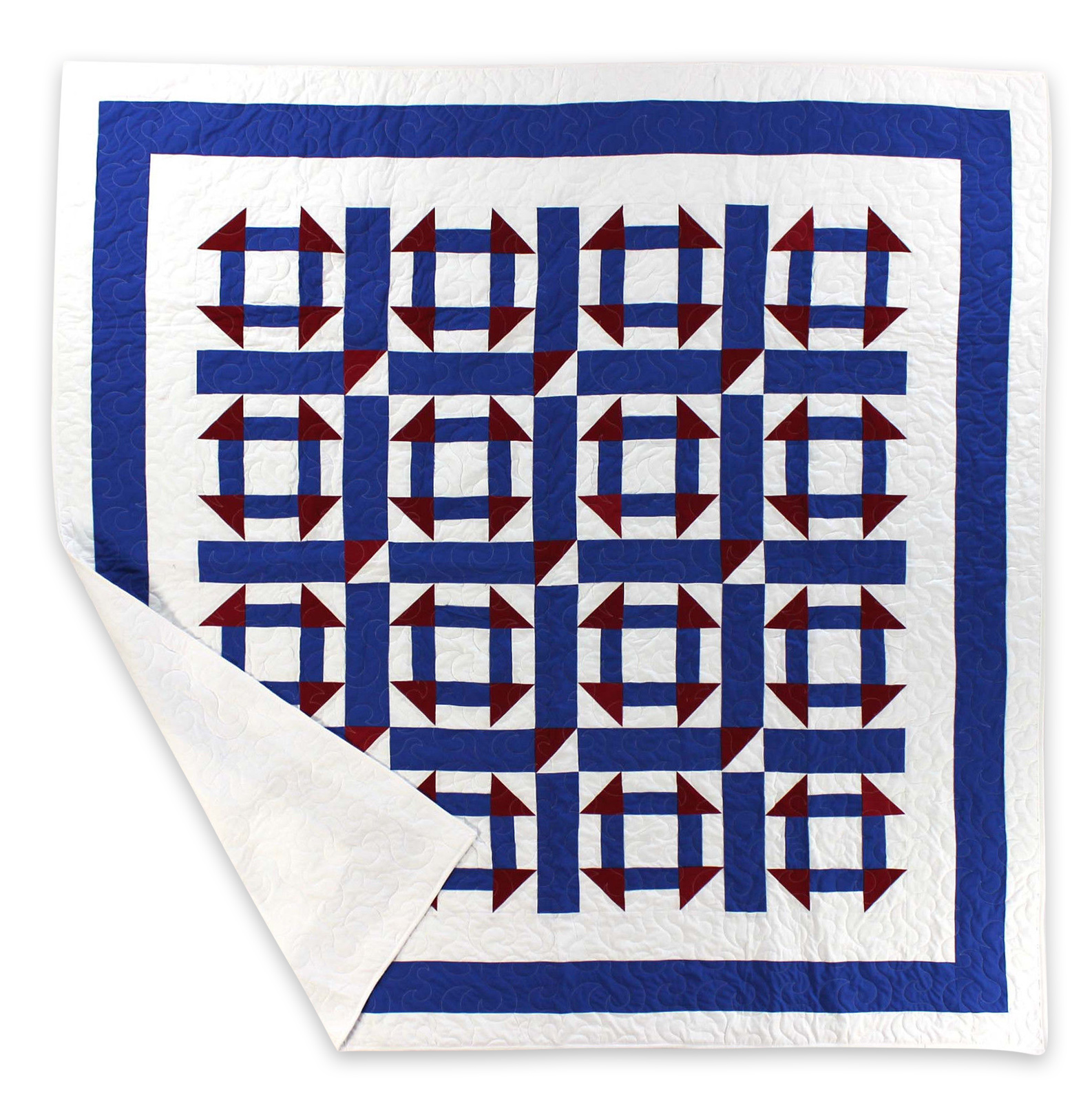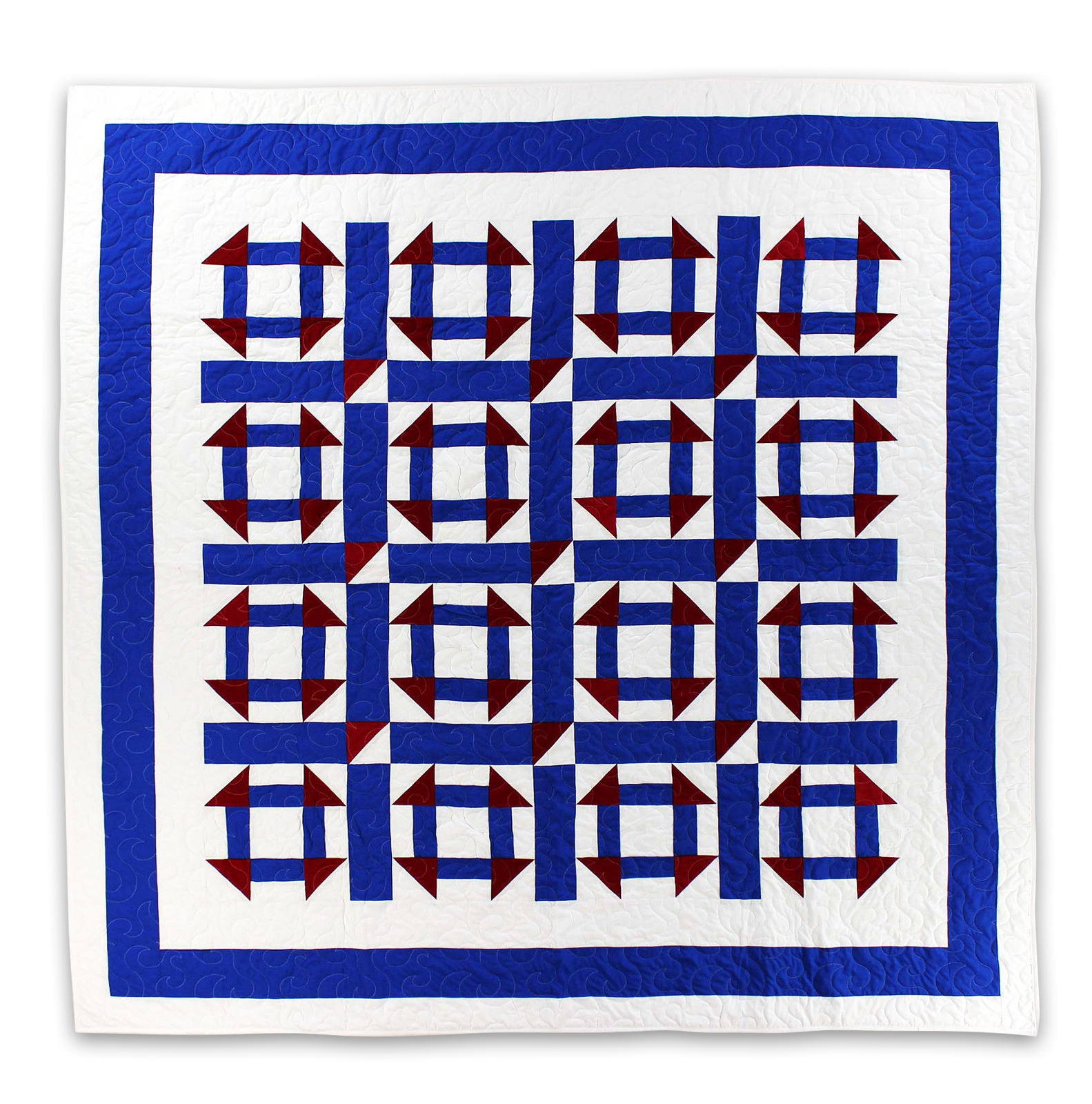 Traditional Red, Blue & White Patchwork Churn Dash FINISHED QUILT – Masculine