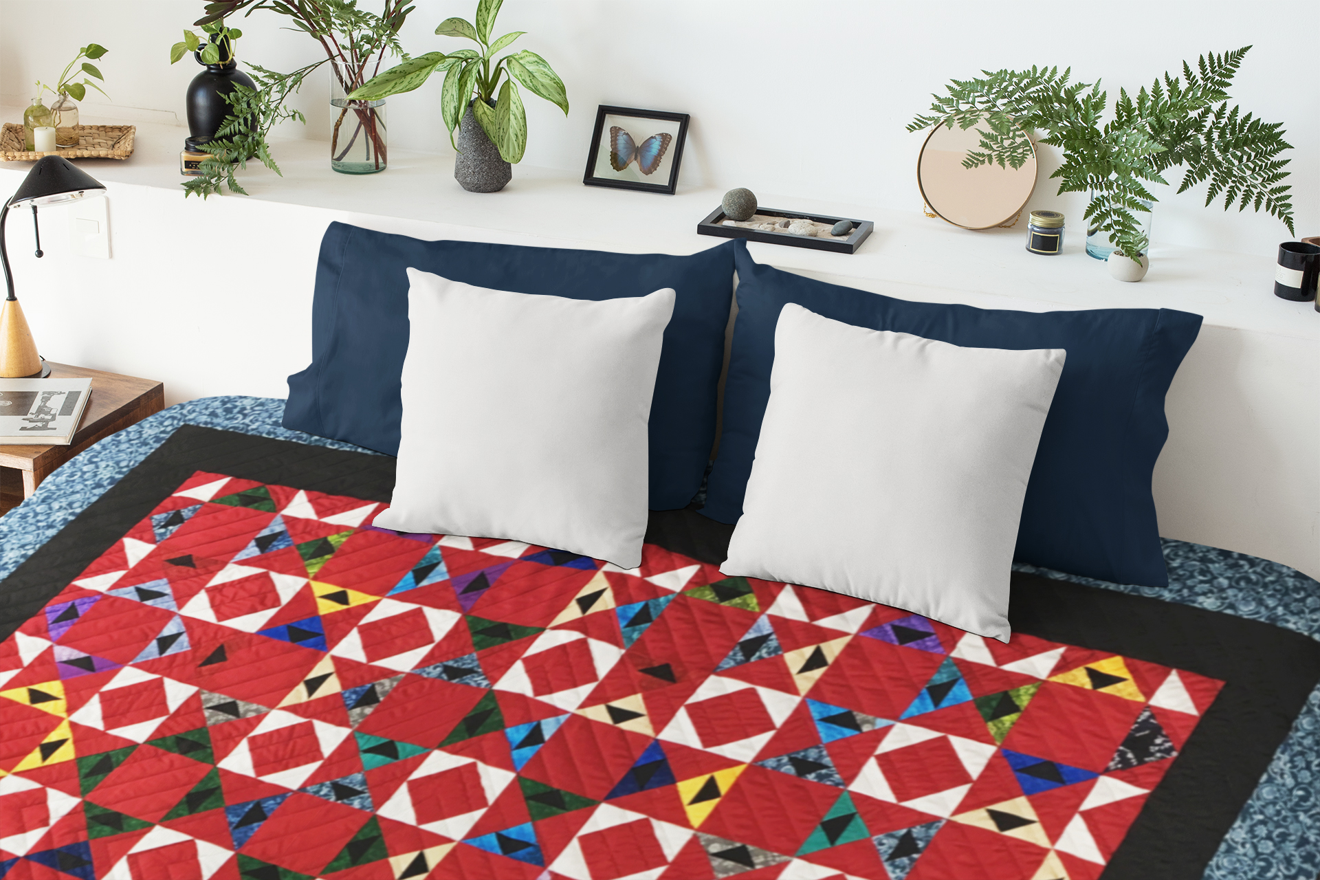Unique Graphic Scrap Triangles FINISHED QUILT – Must See, wonderful quilting !