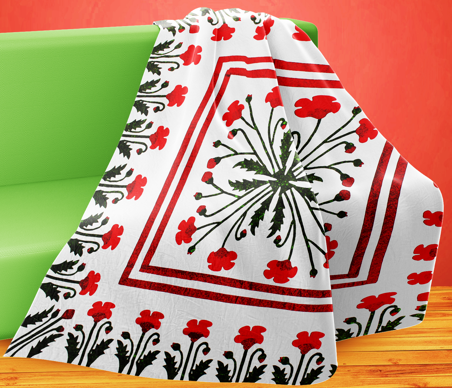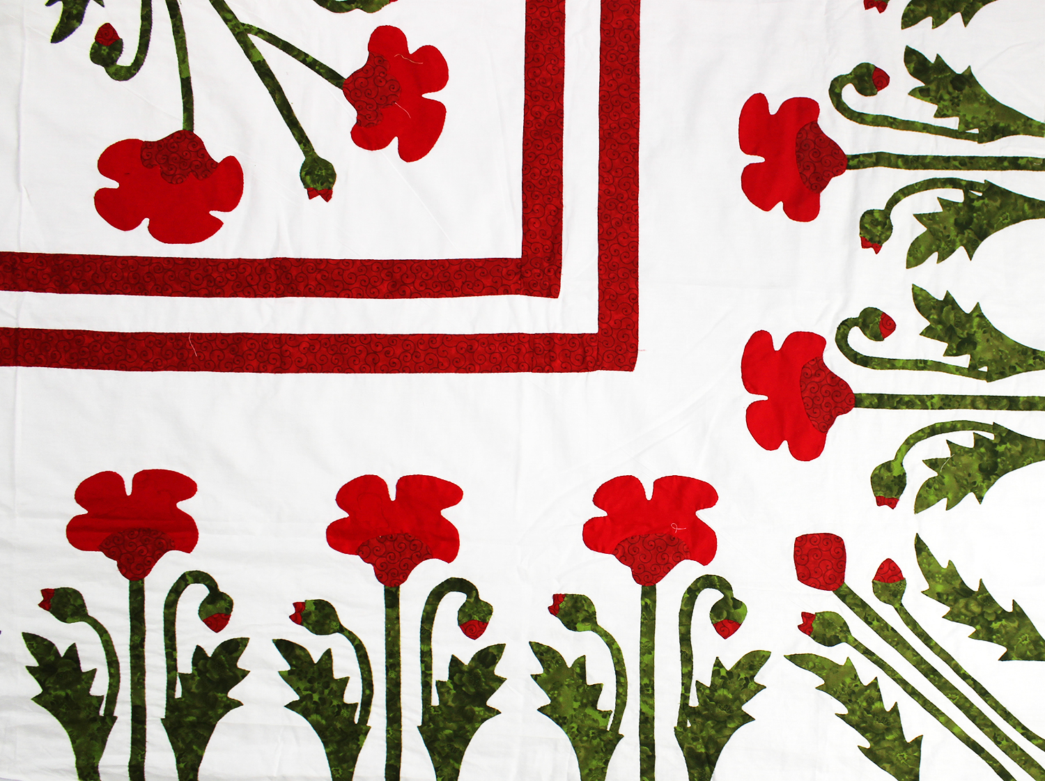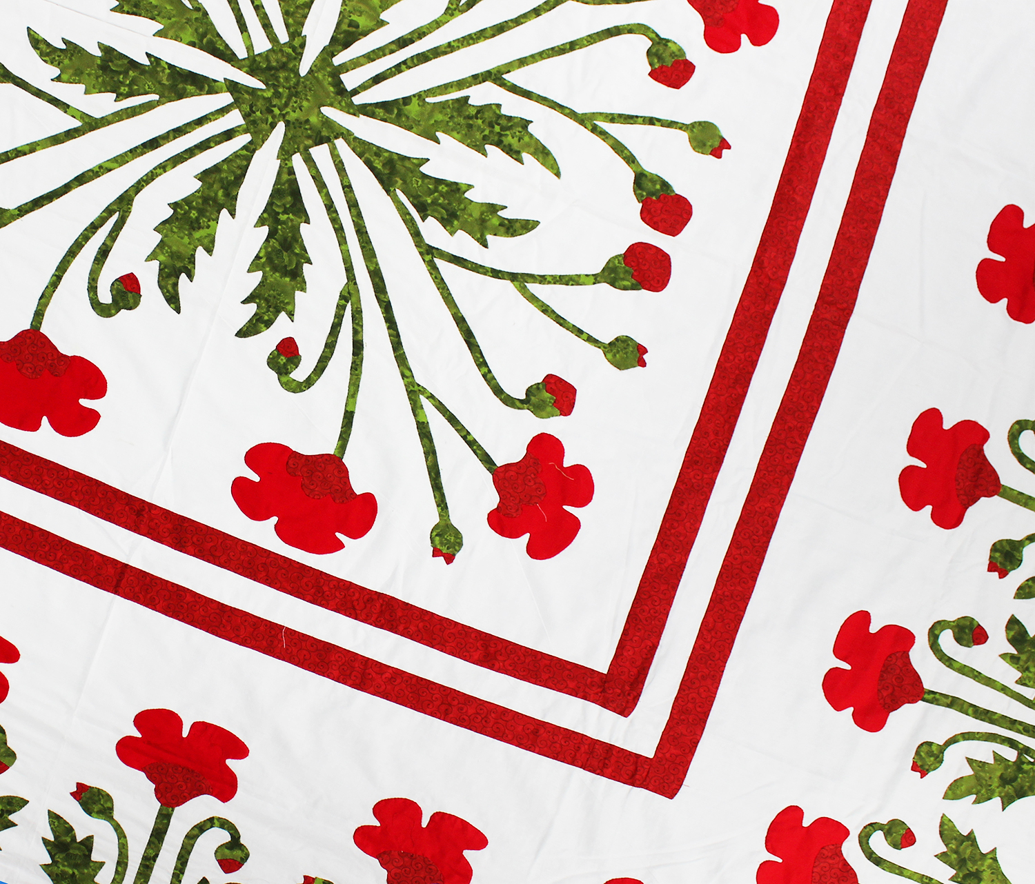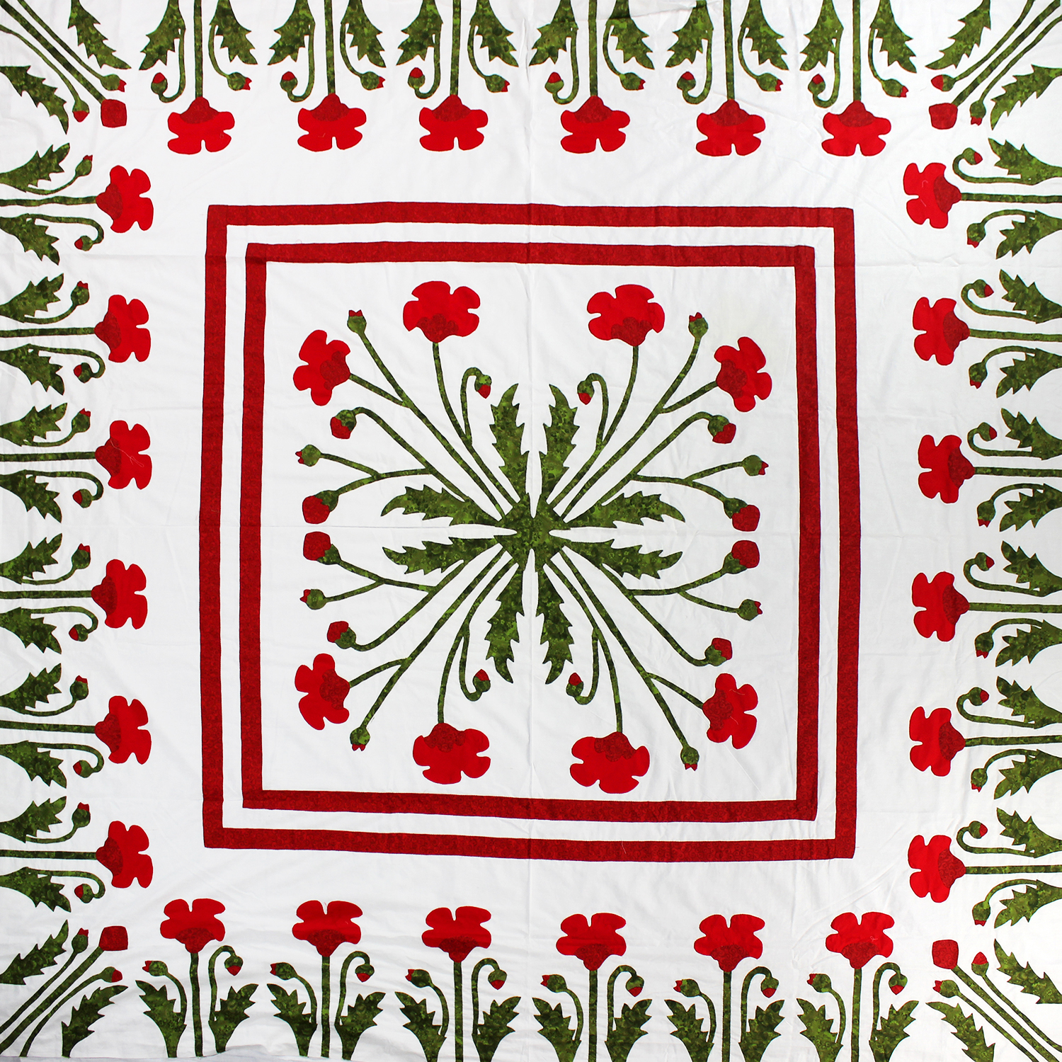 Unique Hand Applique Red Poppy Field Medallion QUILT TOP – Poppy Borders