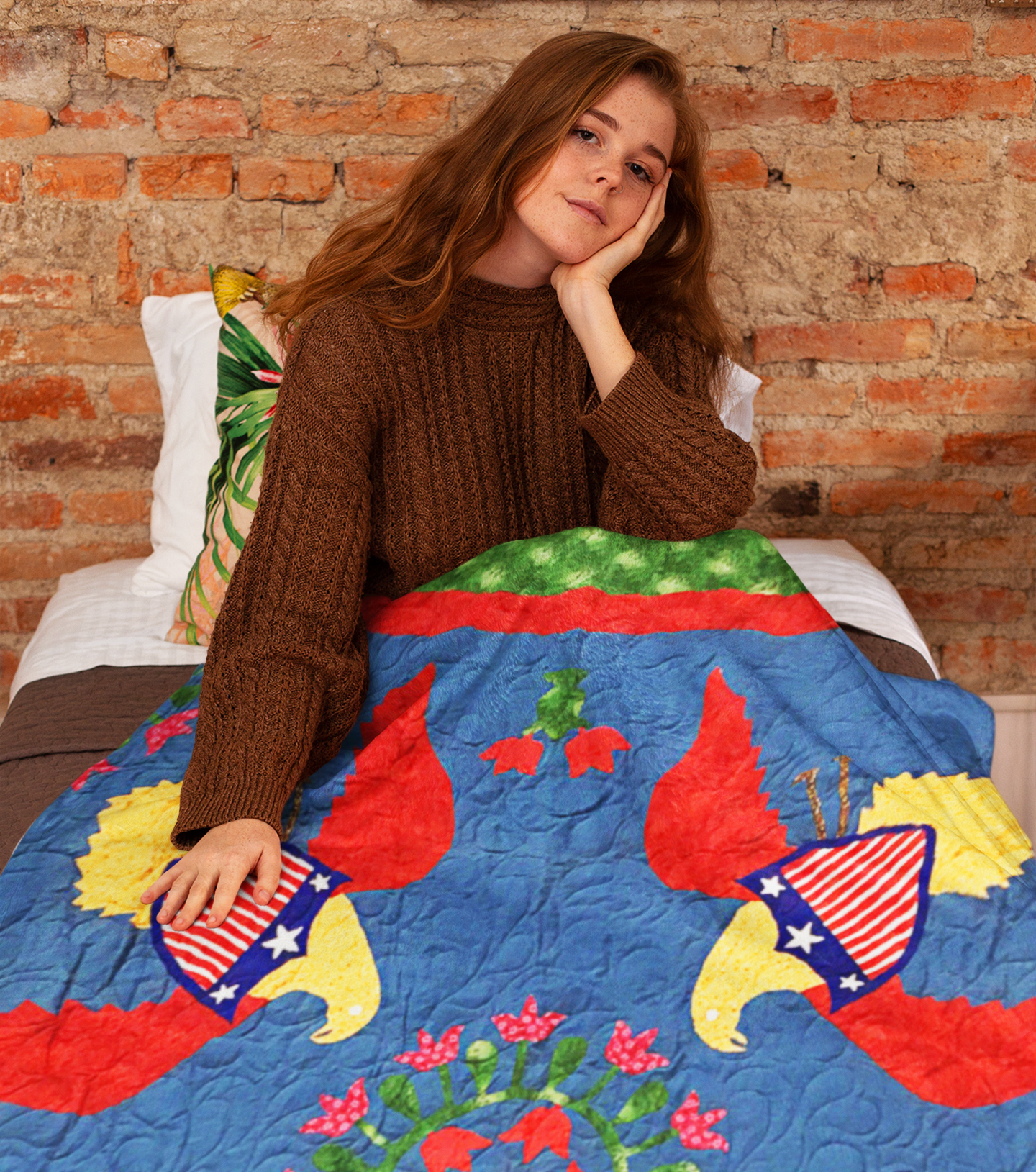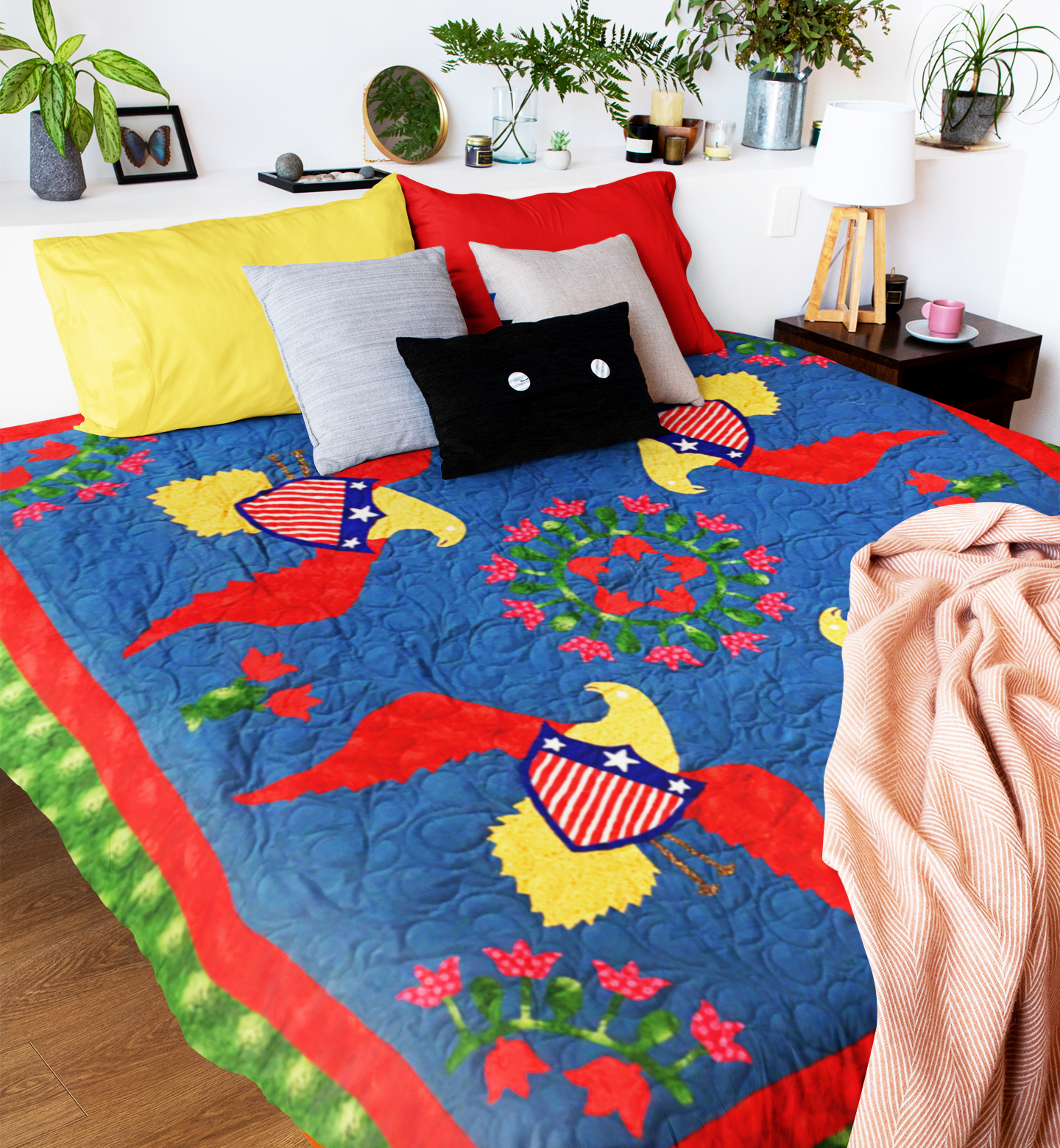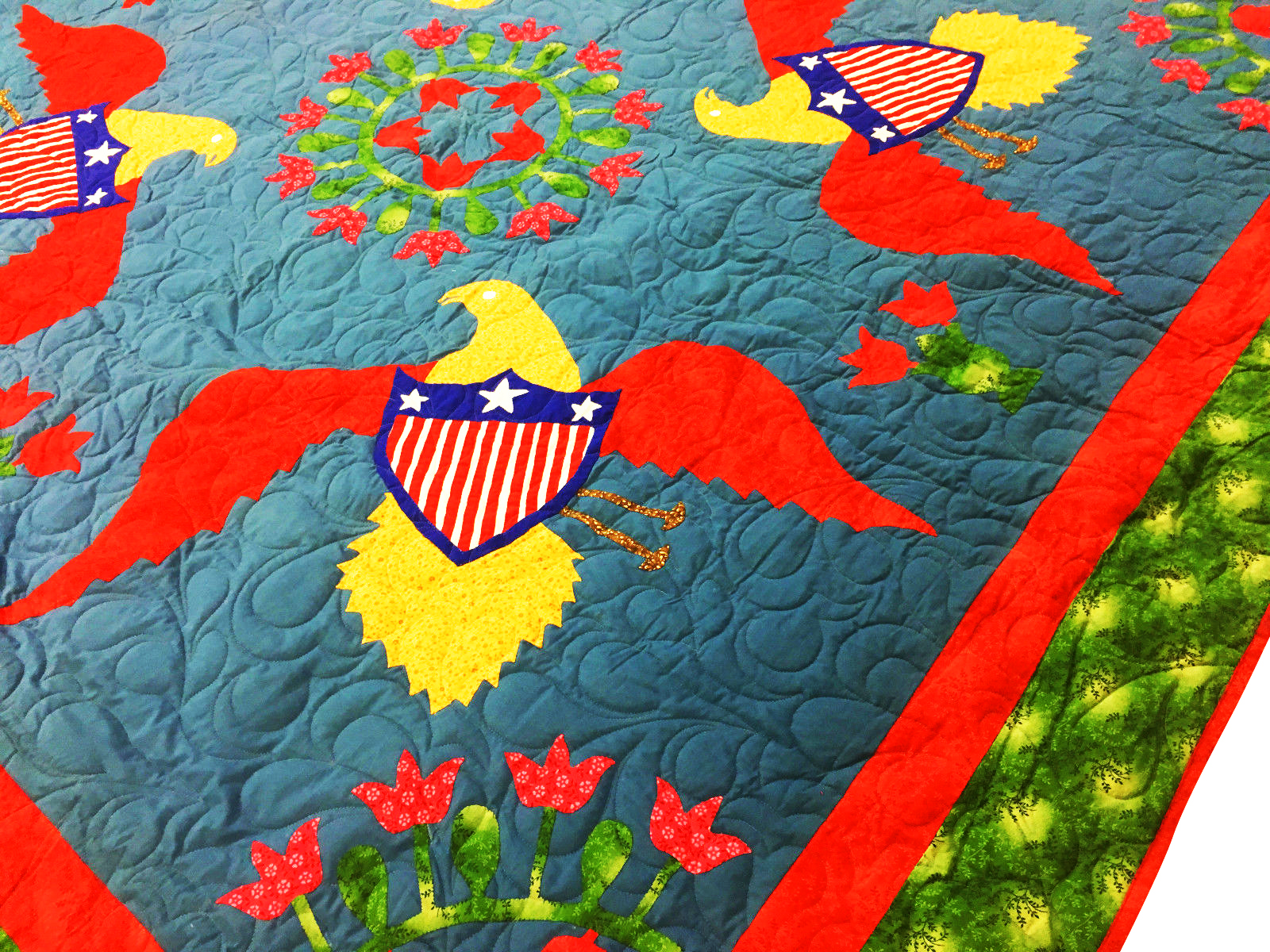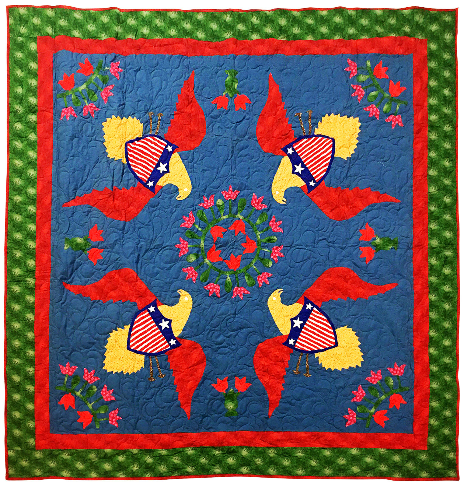 Very Unique Eagles & floral hand applique FINISHED QUILT – Joyful fun quilt