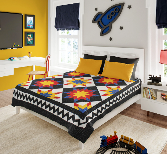 It is made with 100% cotton fabrics. It is a perfect balance of traditional patchwork and colors and it will be cherished for generations to come.