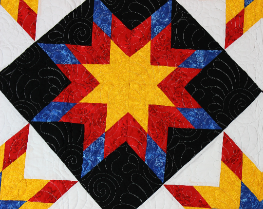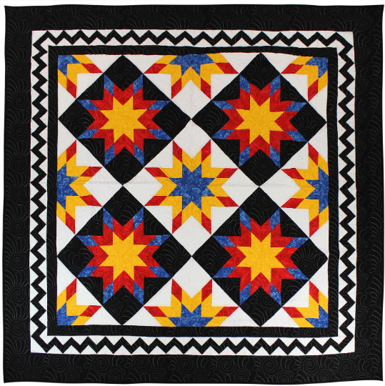 This is a large queen size Star quilt measuring about 90″ x 90″. – Very unique original design by Lancaster County Quilting Creations